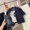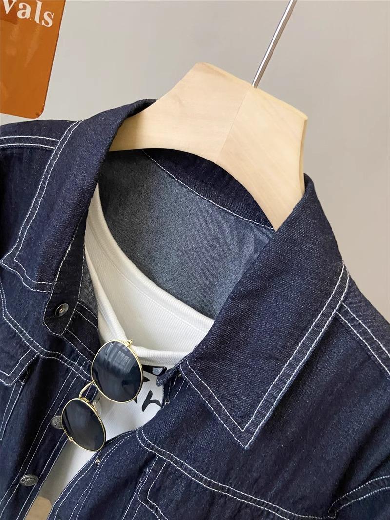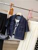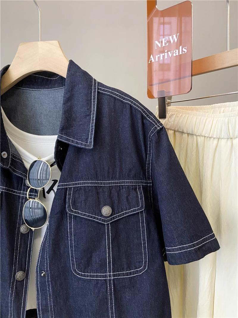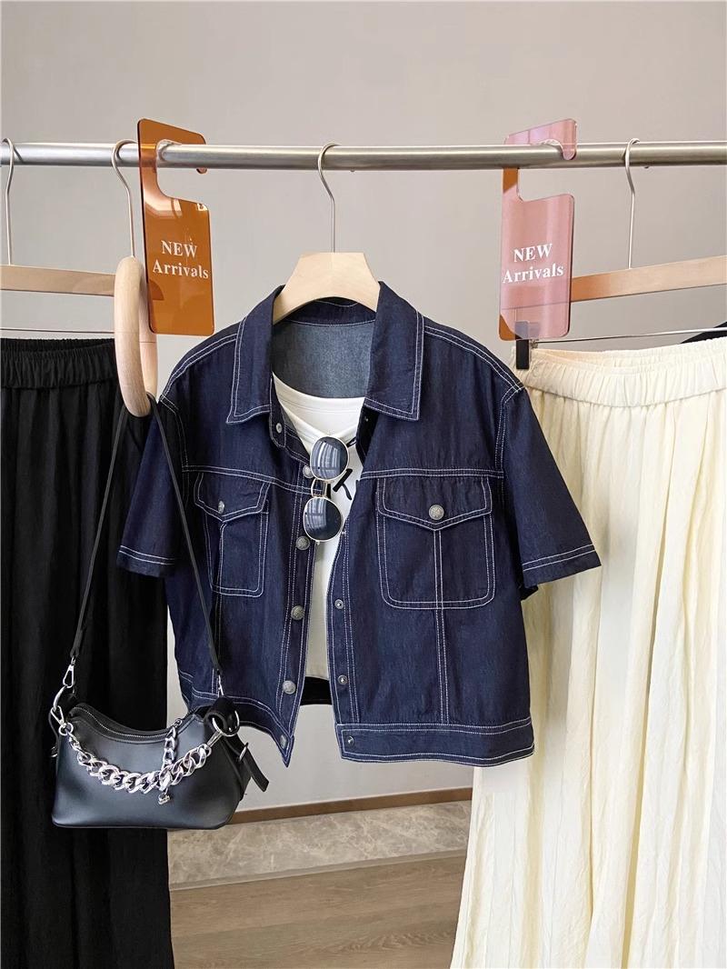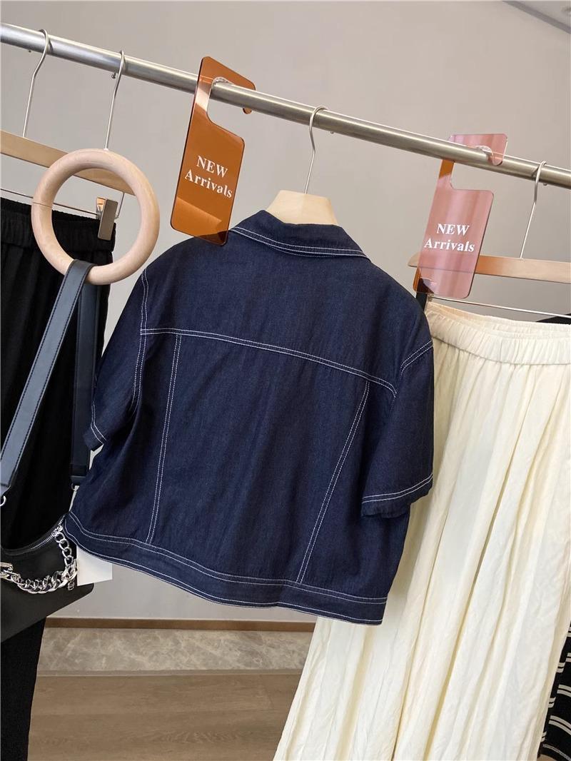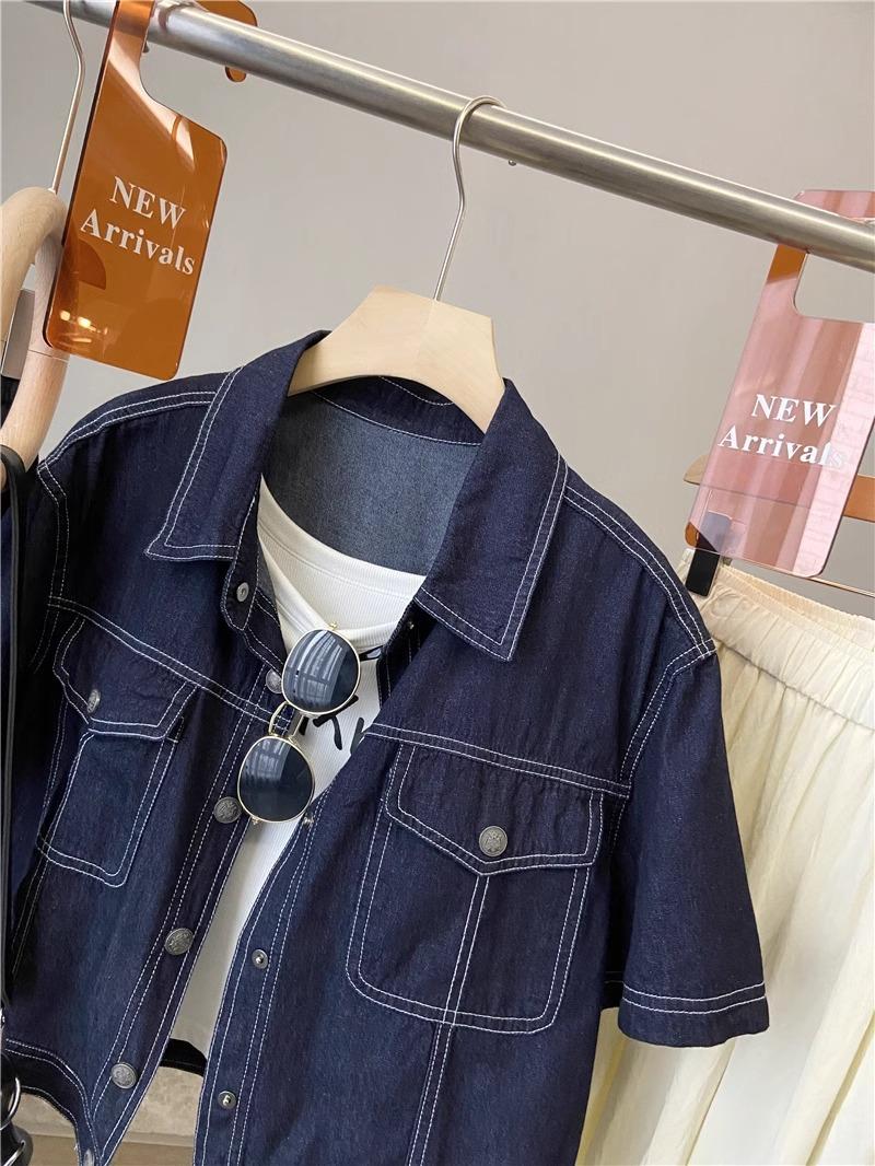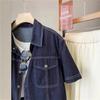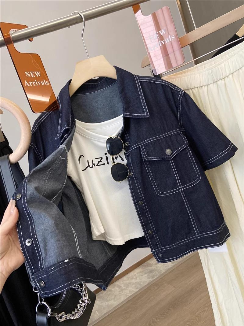 2025 primavera novo design de linha aberta solto slim lapela abotoamento simples manga curta Casaco Jeans top