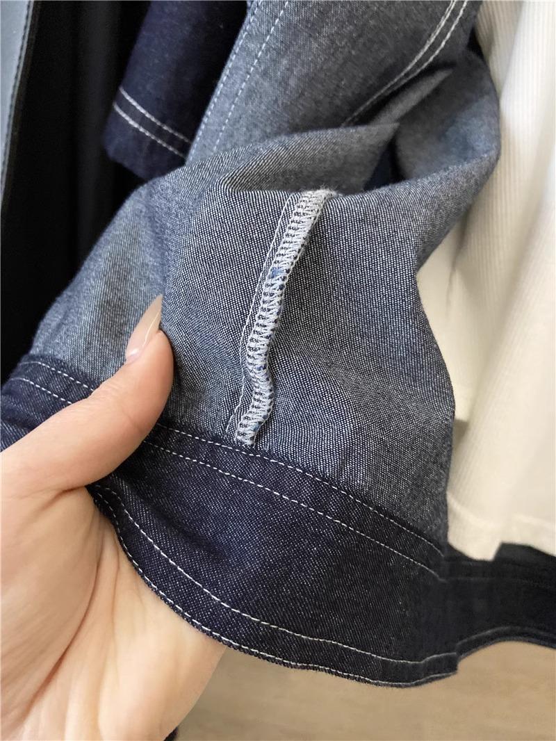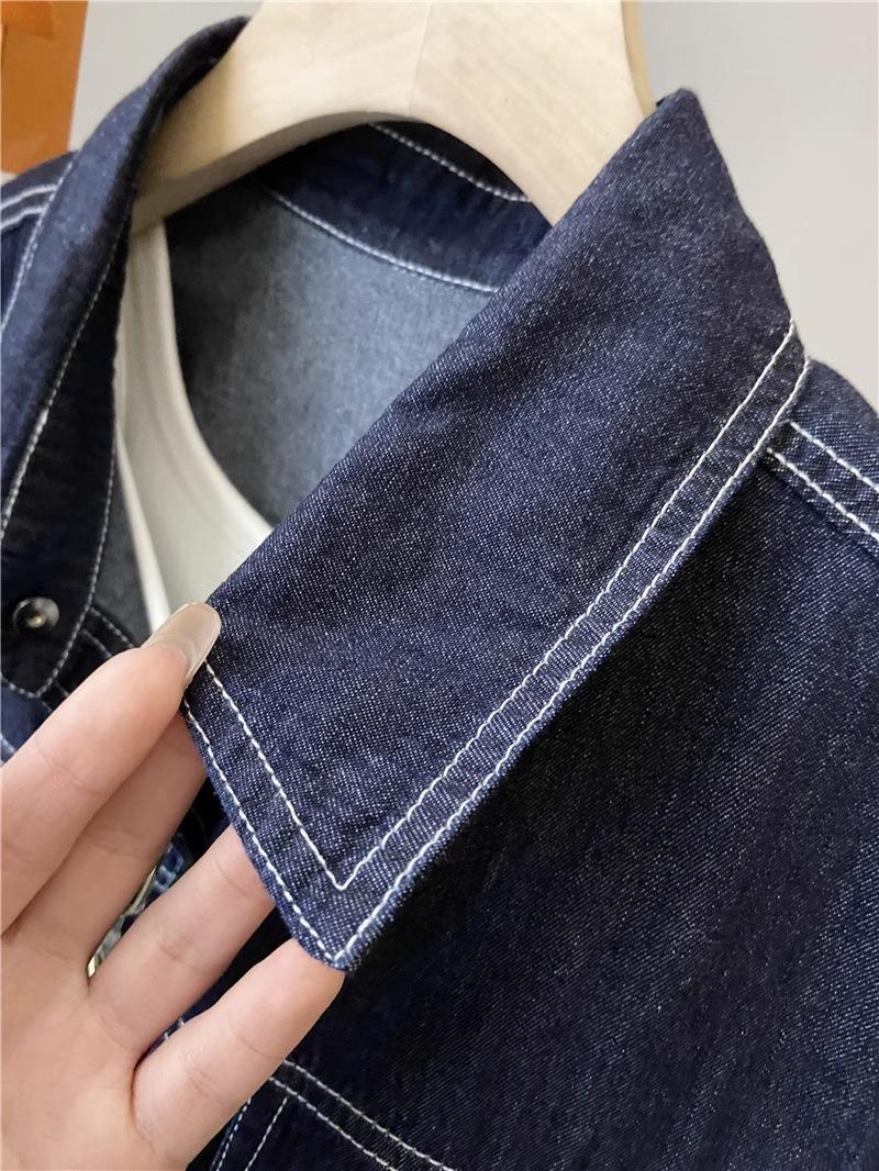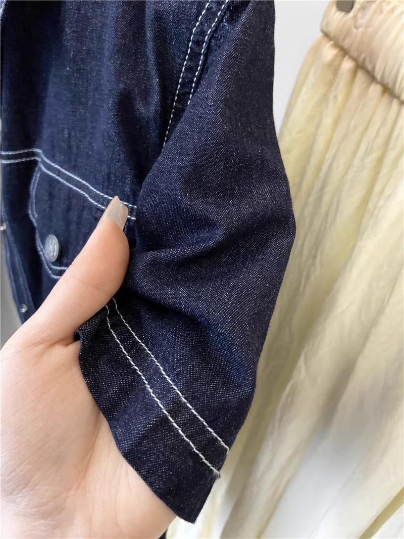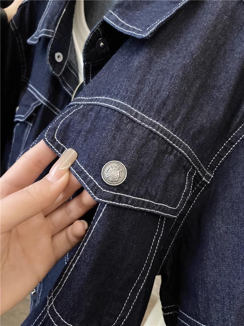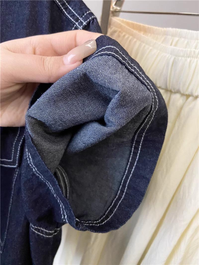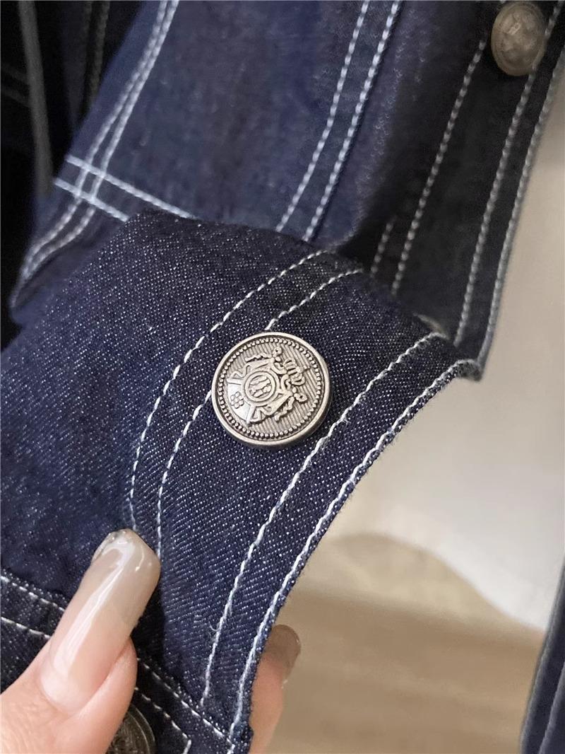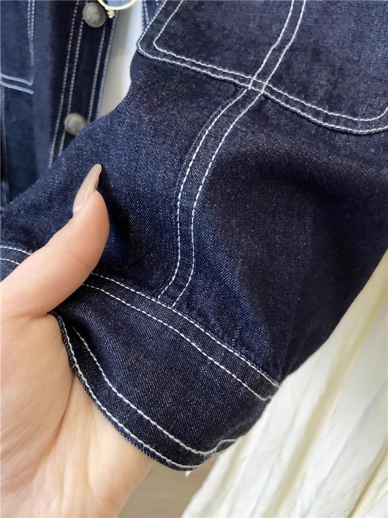 2025 primavera novo design de linha aberta solto slim lapela abotoamento simples manga curta Casaco Jeans top