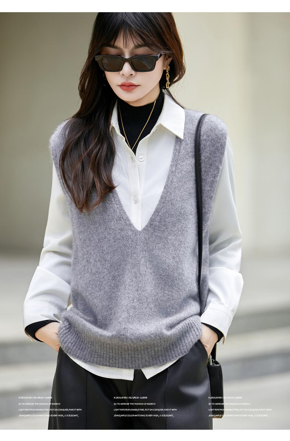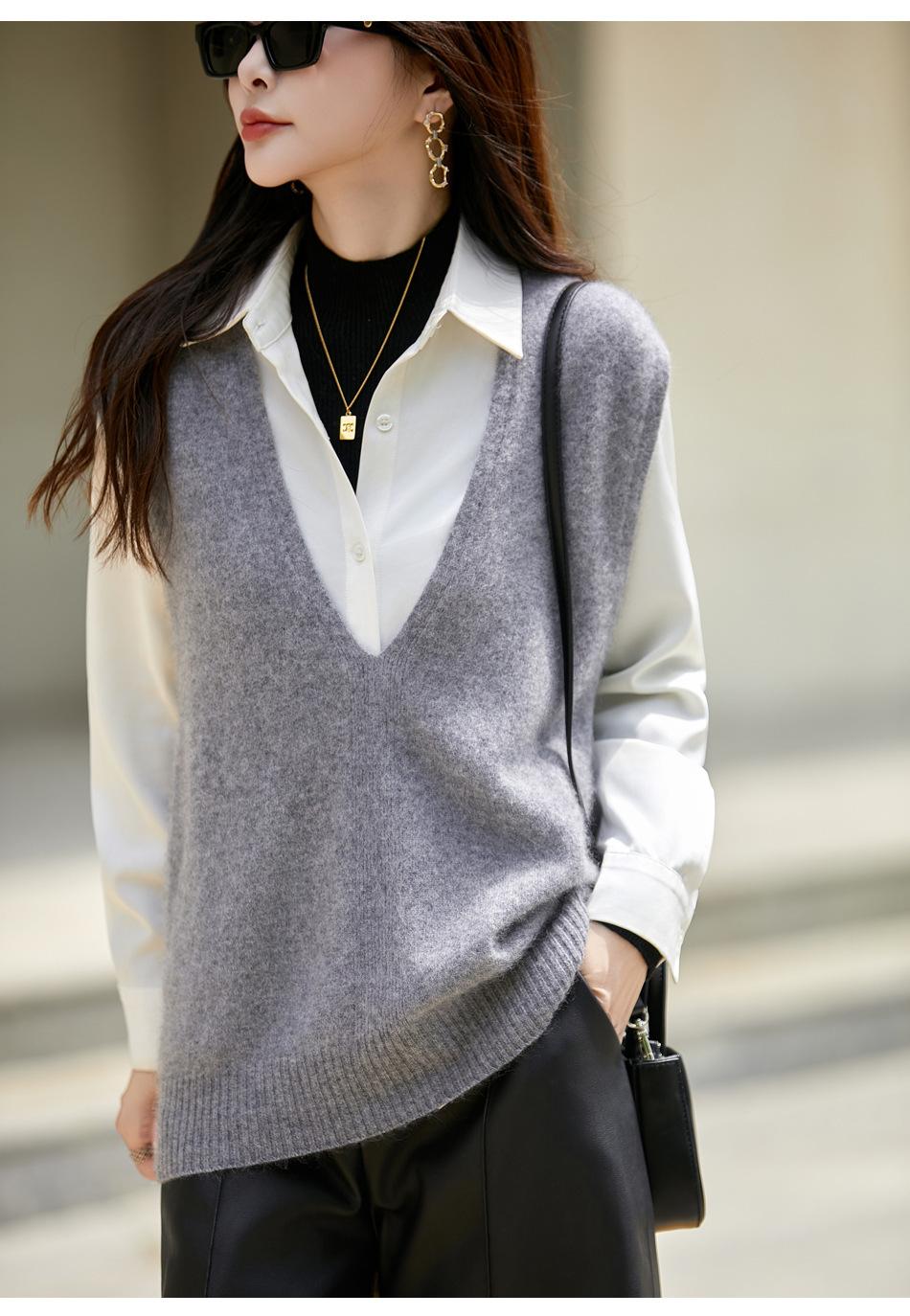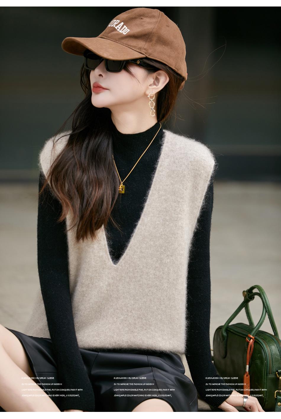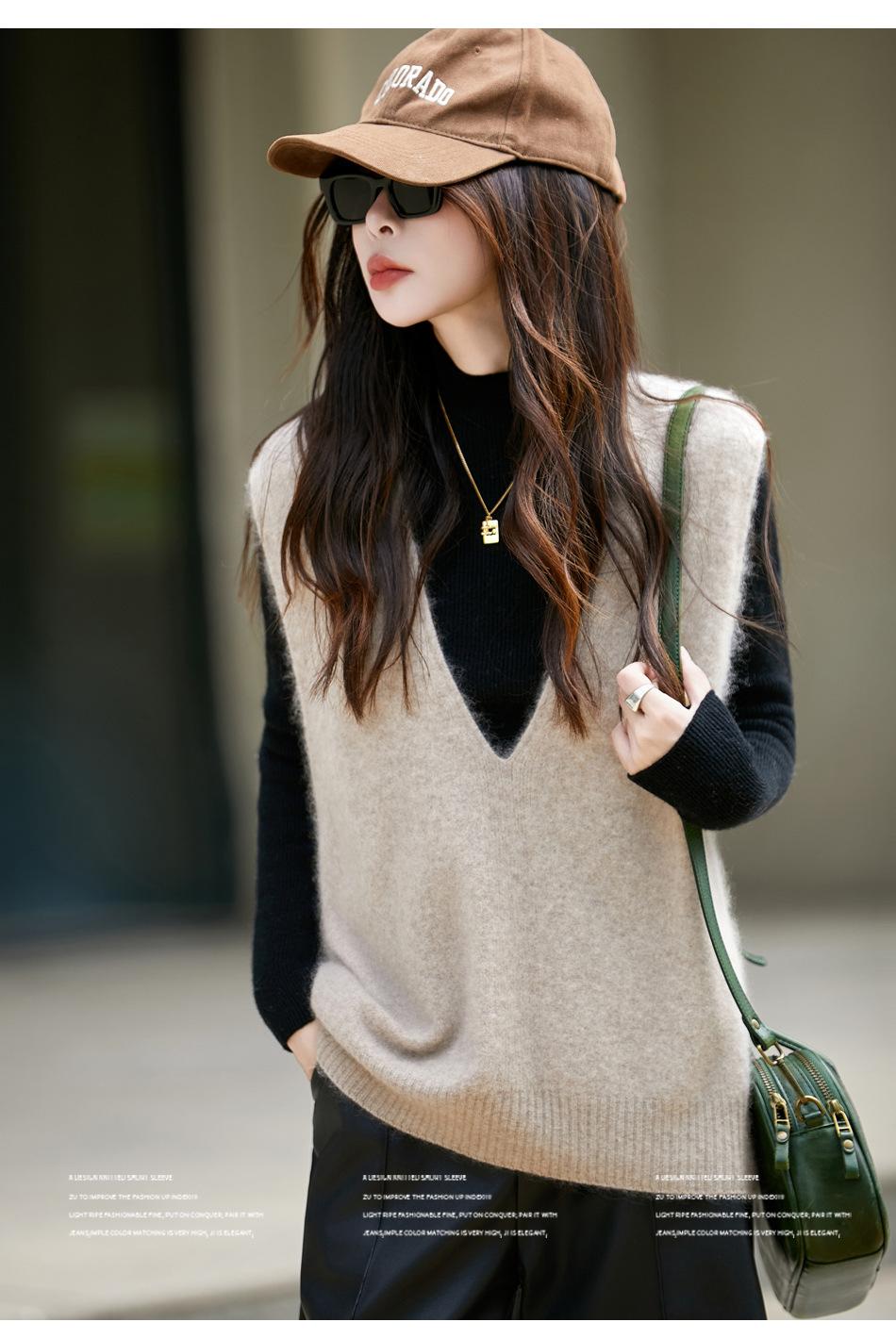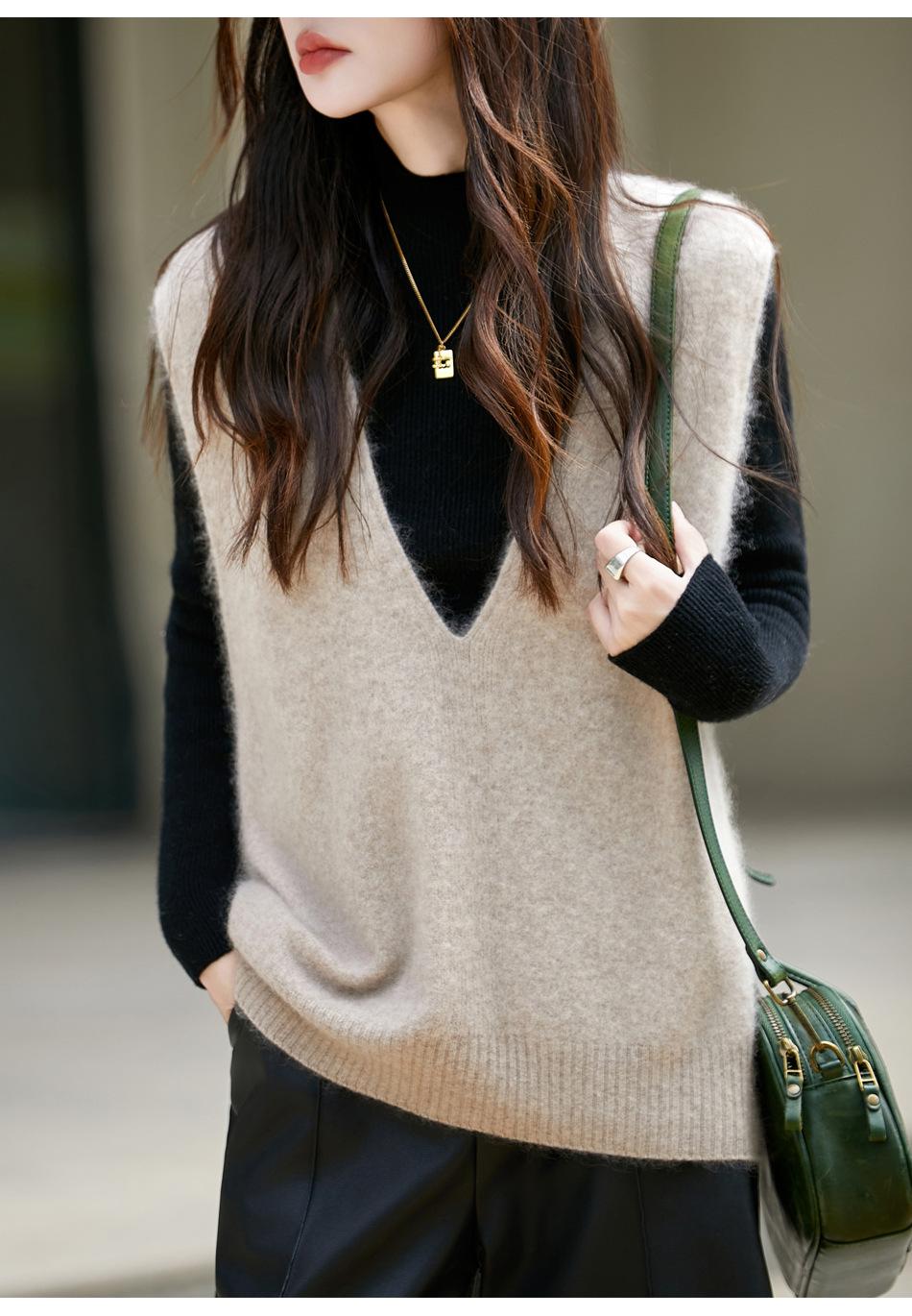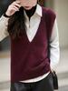 Versátil capa base tejido de punto cepillado ajuste holgado camiseta sin mangas superposición nuevo estilo sin costuras cuello en V otoño e invierno transfronterizo chaleco de lana