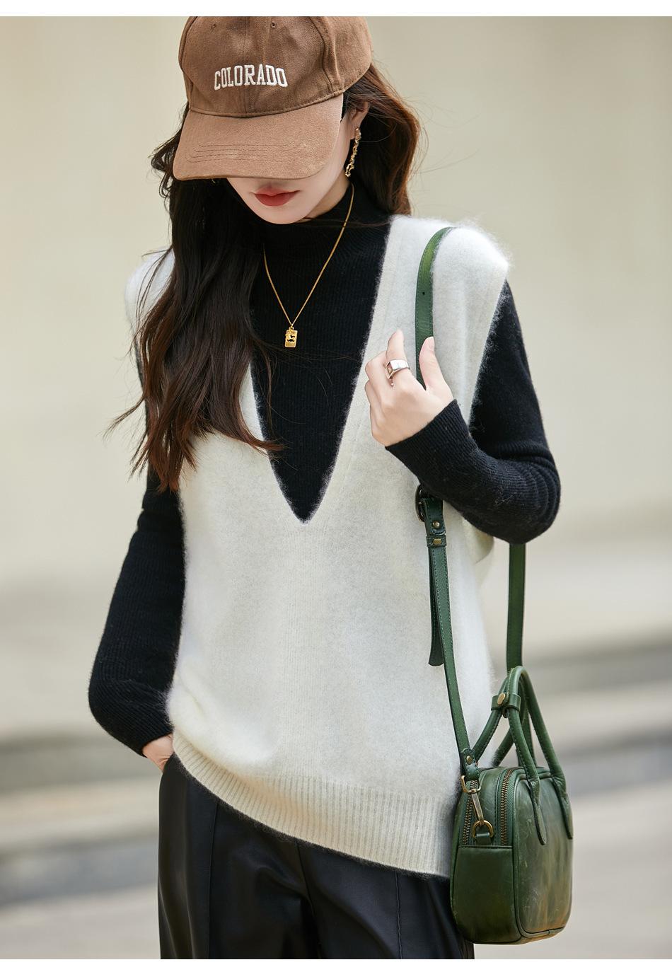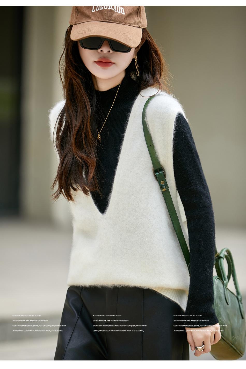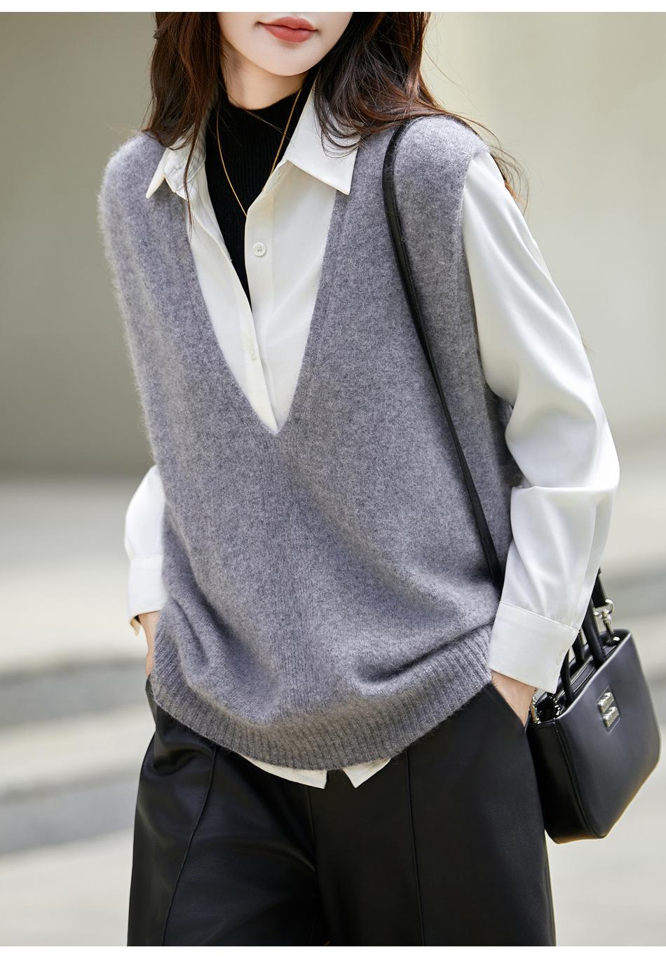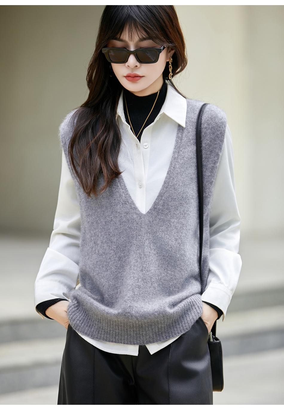 Versátil capa base tejido de punto cepillado ajuste holgado camiseta sin mangas superposición nuevo estilo sin costuras cuello en V otoño e invierno transfronterizo chaleco de lana