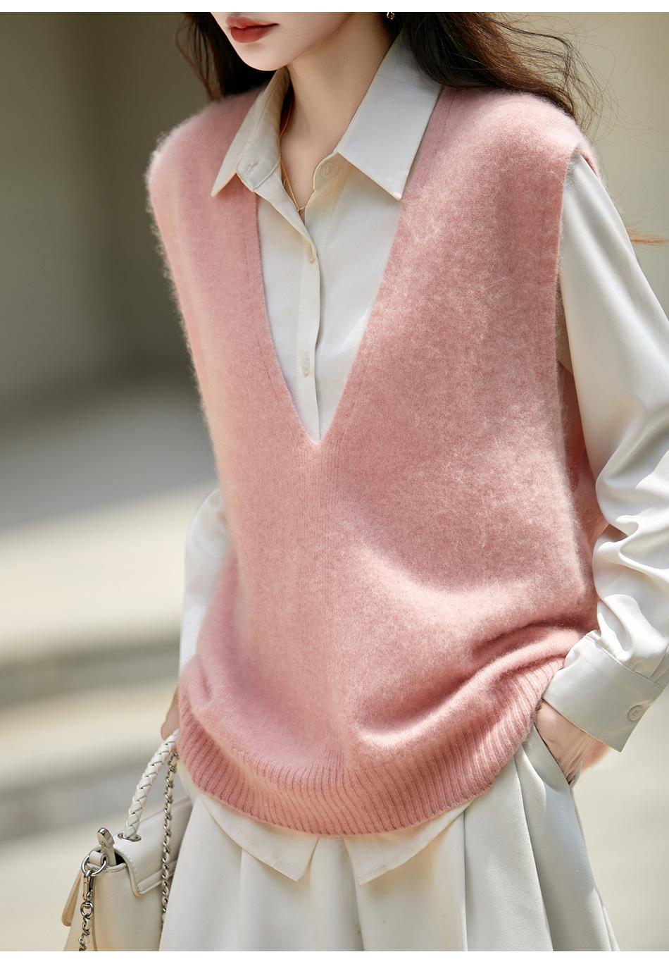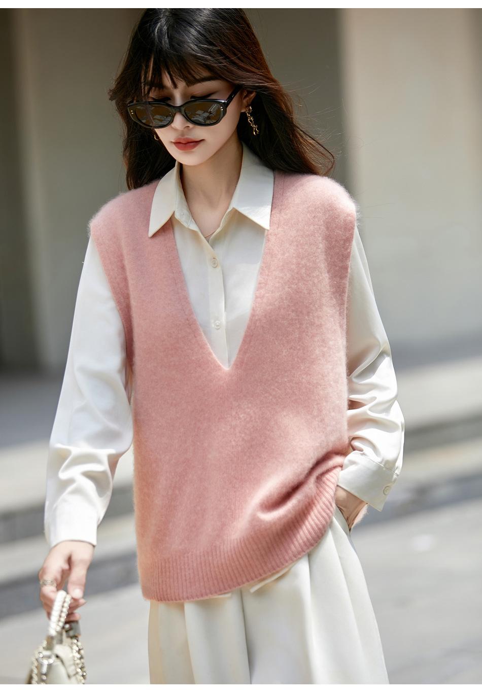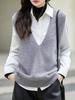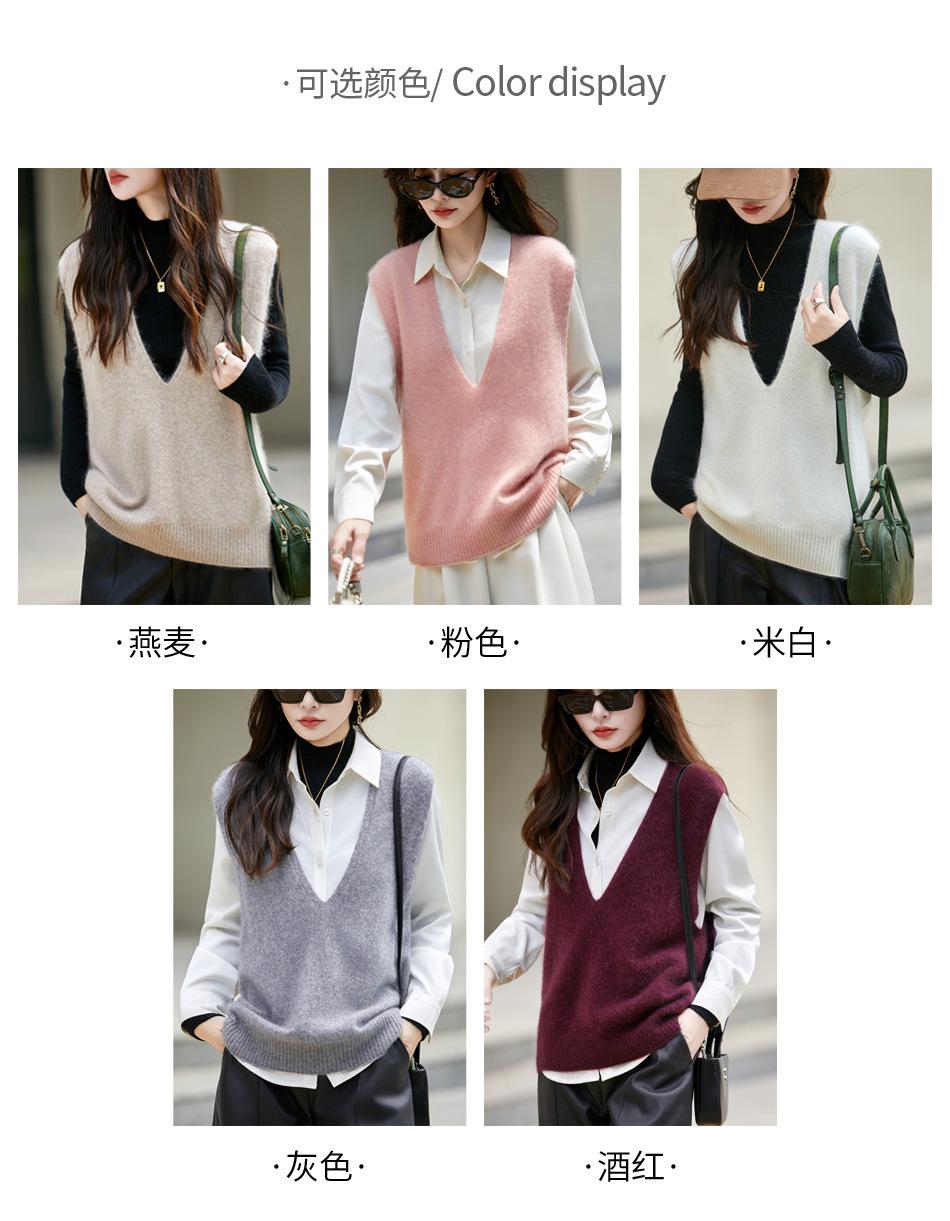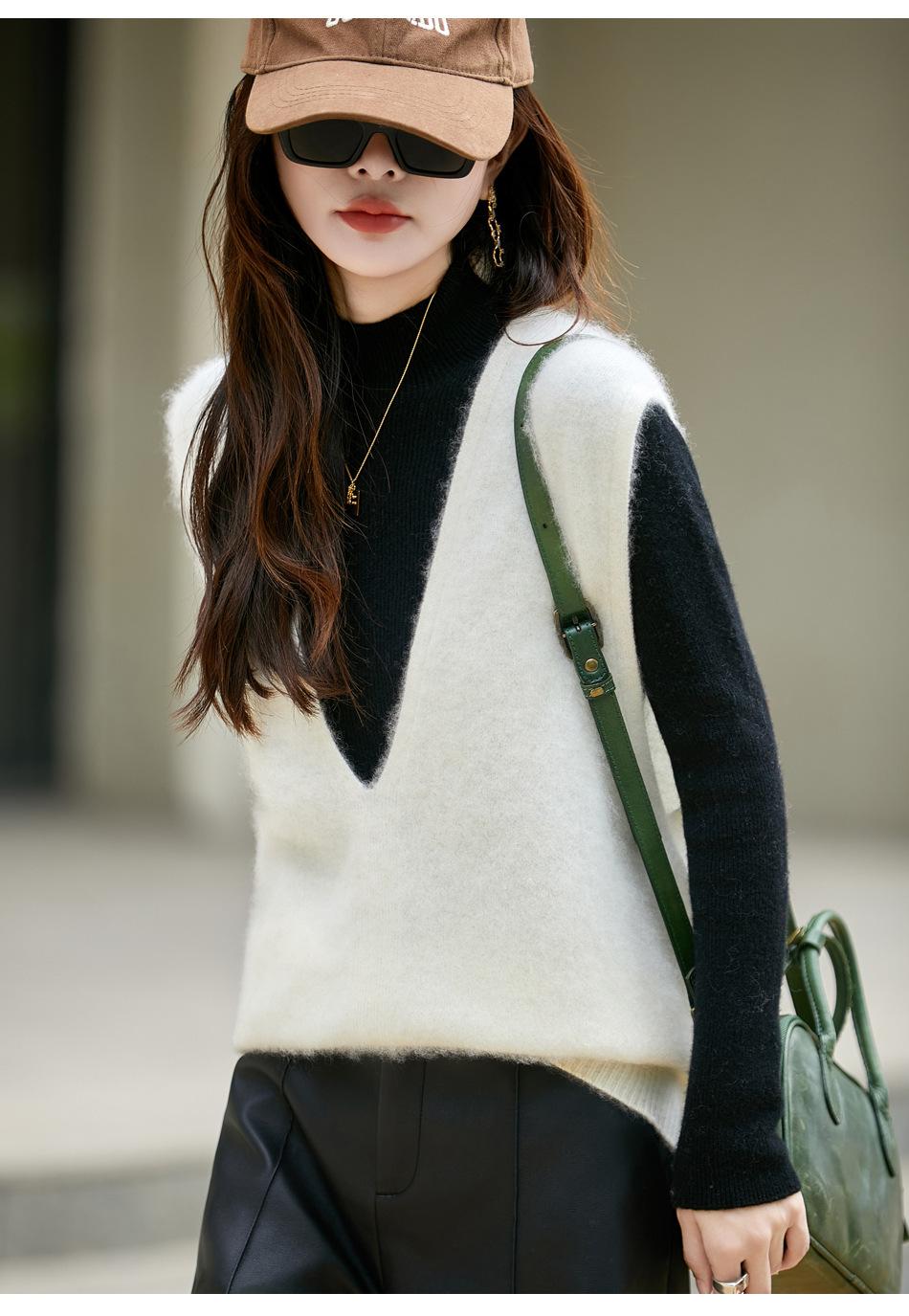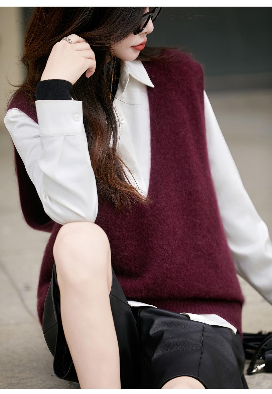 Versátil capa base tejido de punto cepillado ajuste holgado camiseta sin mangas superposición nuevo estilo sin costuras cuello en V otoño e invierno transfronterizo chaleco de lana