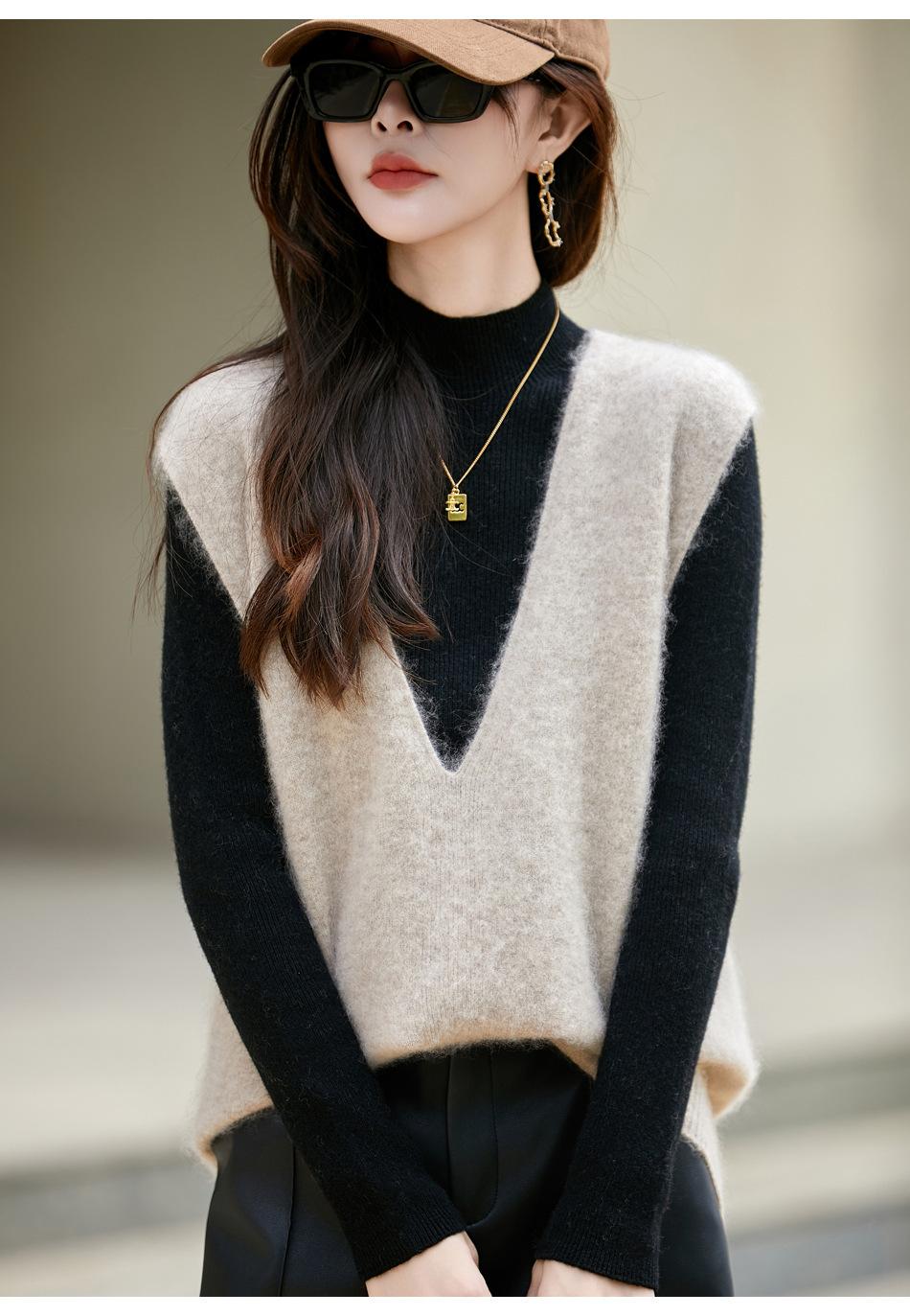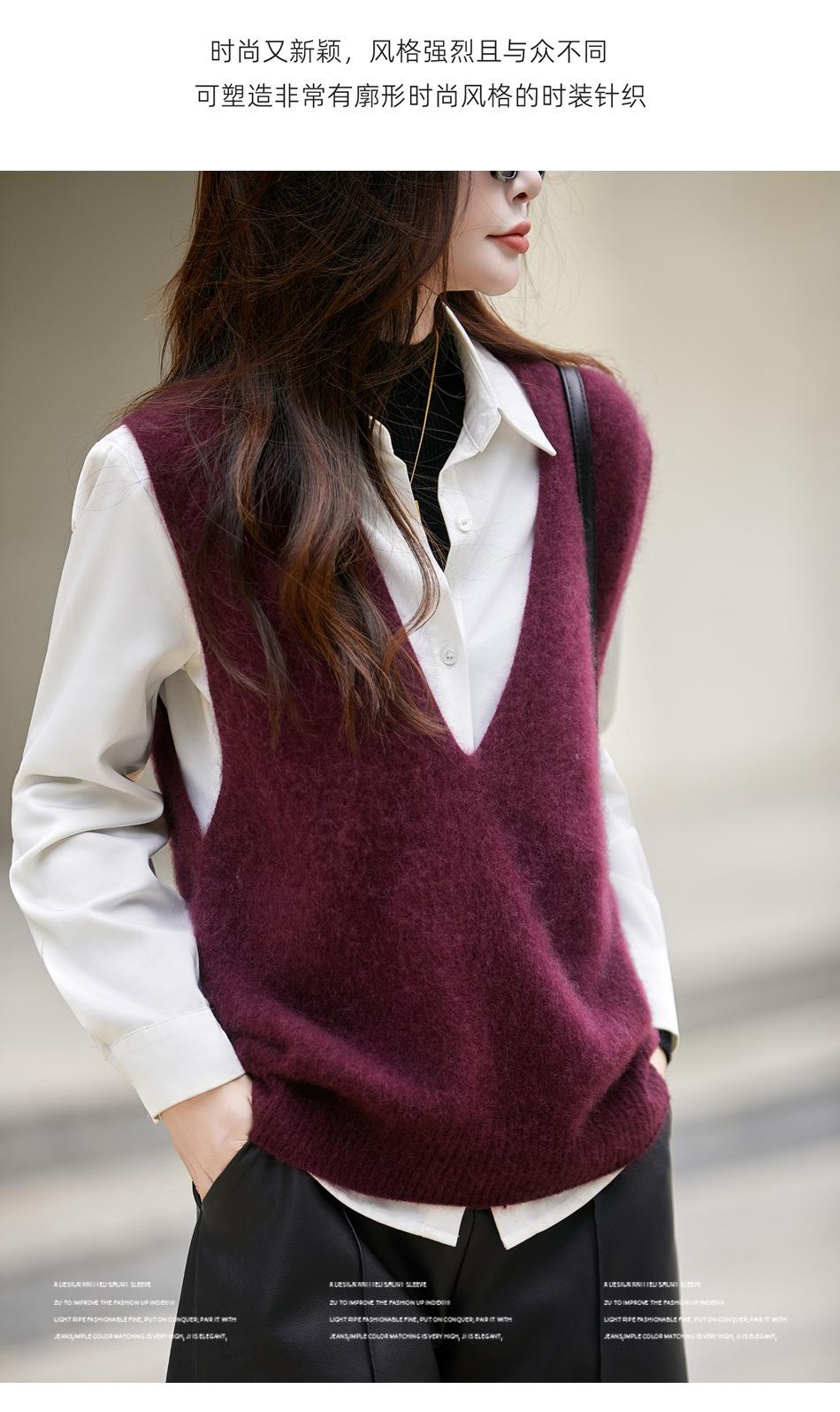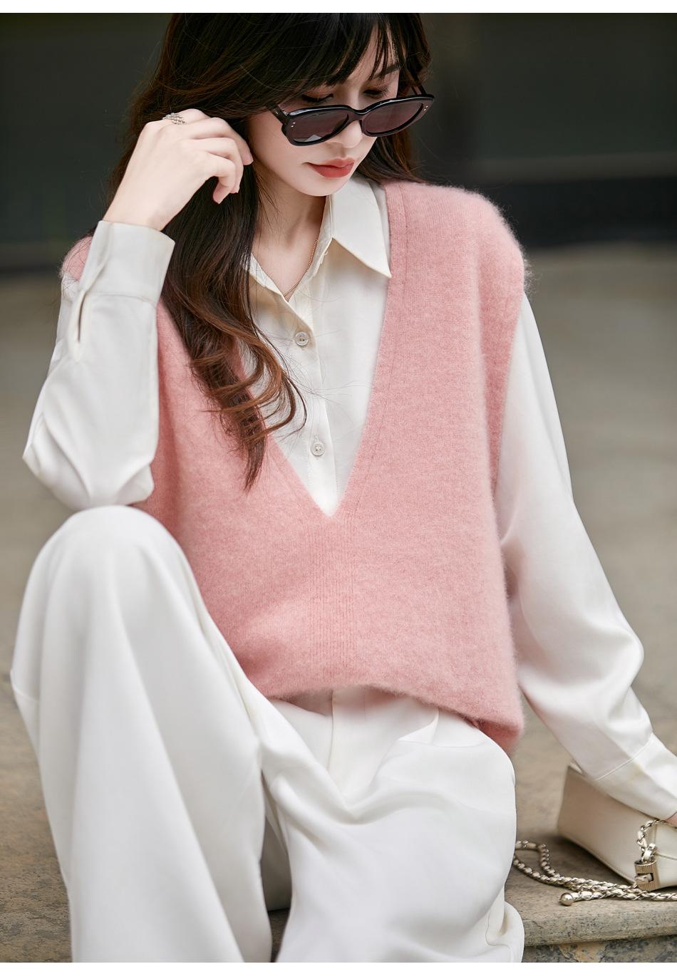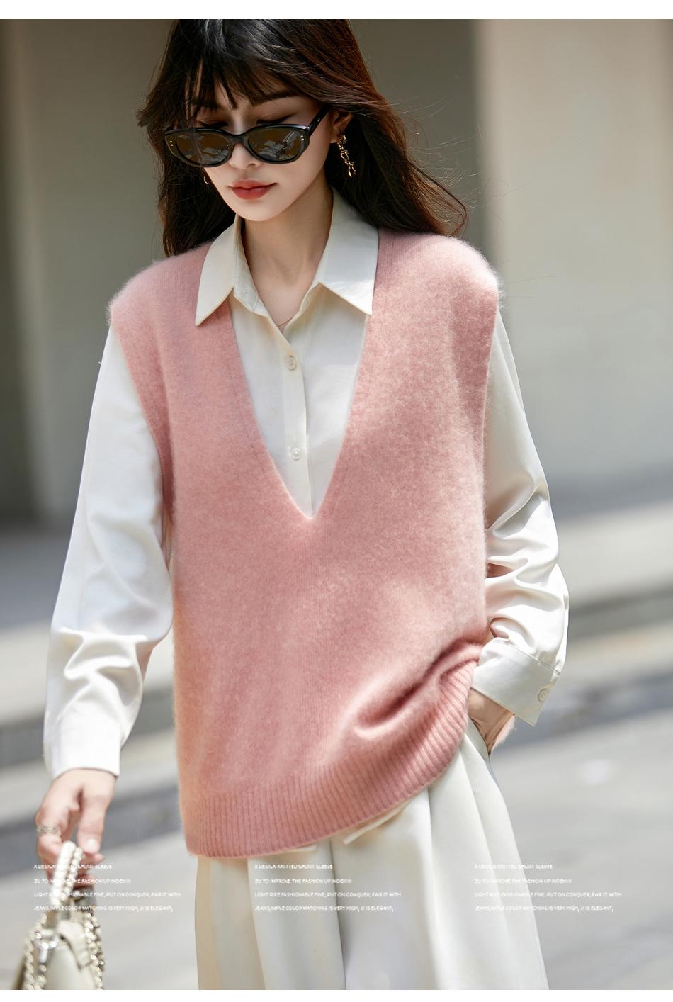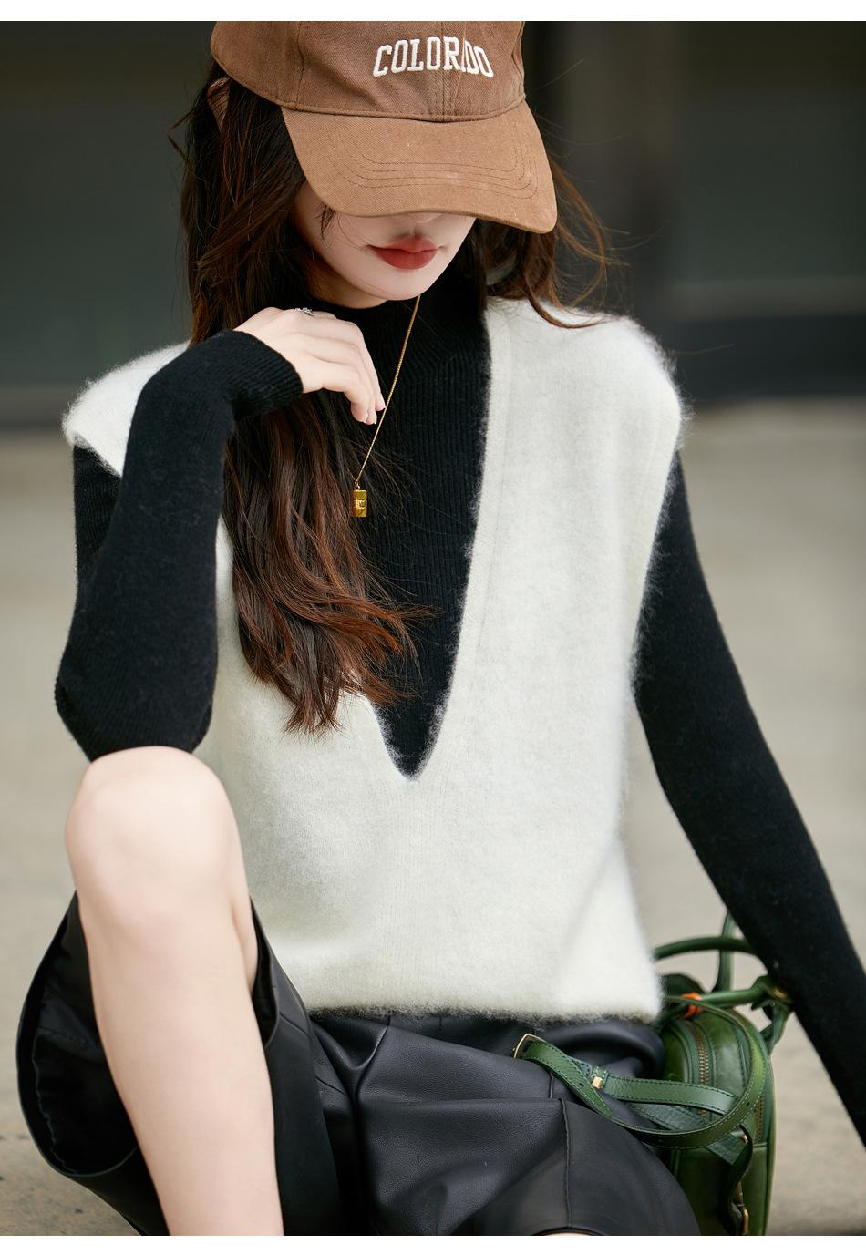 Versátil capa base tejido de punto cepillado ajuste holgado camiseta sin mangas superposición nuevo estilo sin costuras cuello en V otoño e invierno transfronterizo chaleco de lana