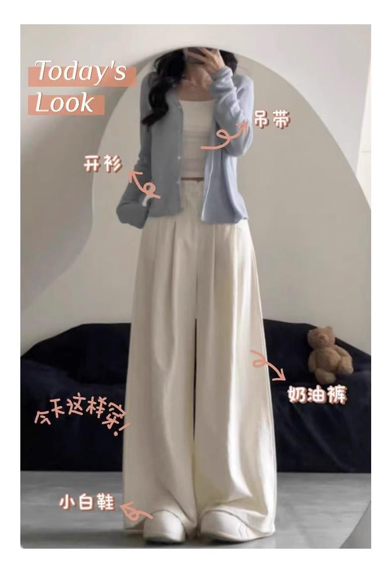 Pantalones Blancos de Verano 2025 para Mujer, Pantalones Rectos Holgados de Cintura Alta Delgados, Pantalones de Pierna Ancha Perezosos y Relajados