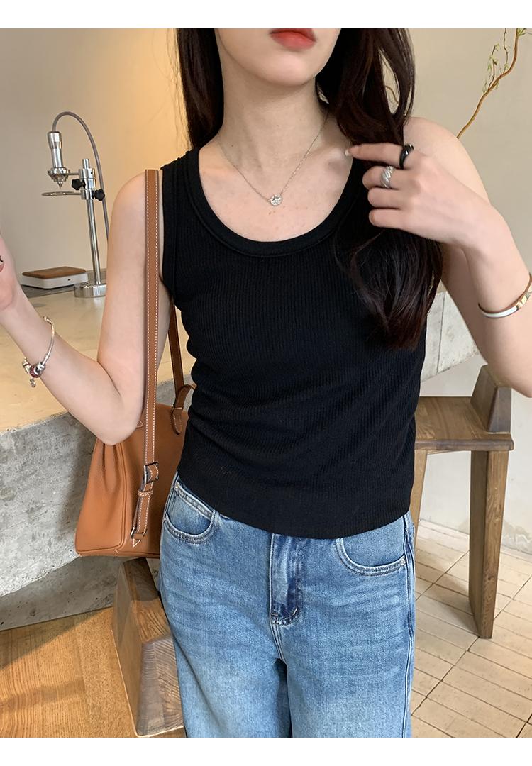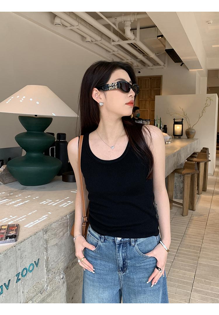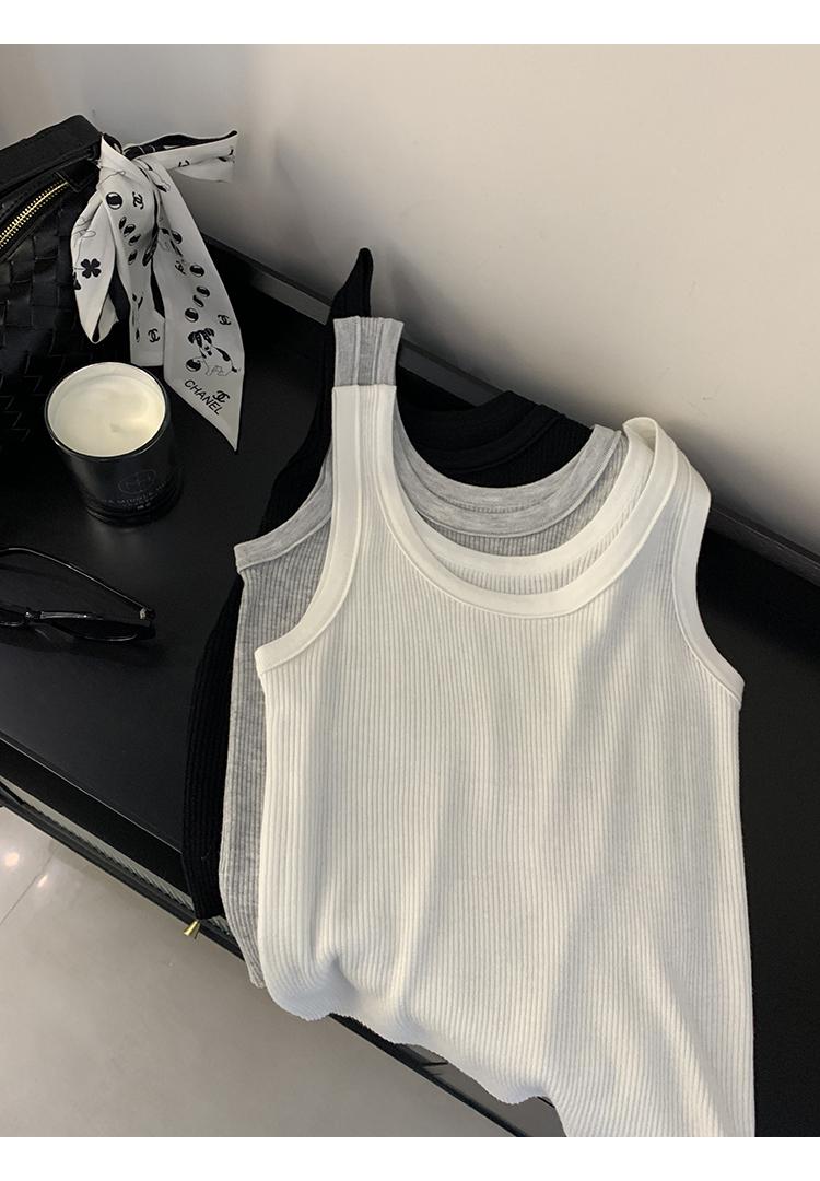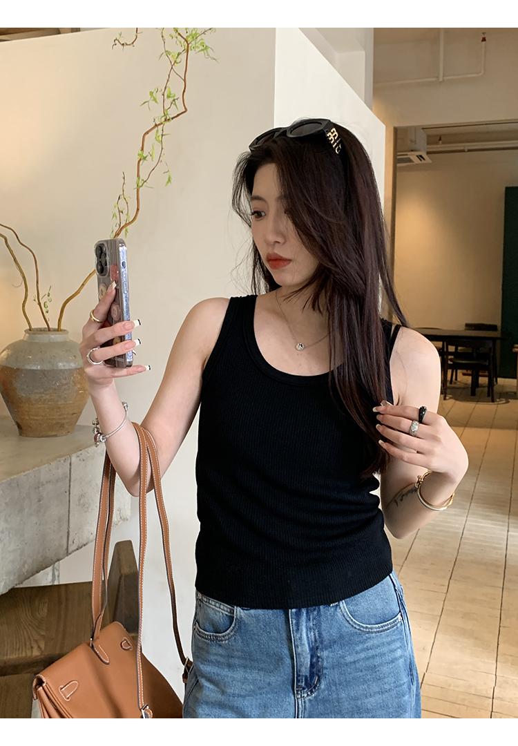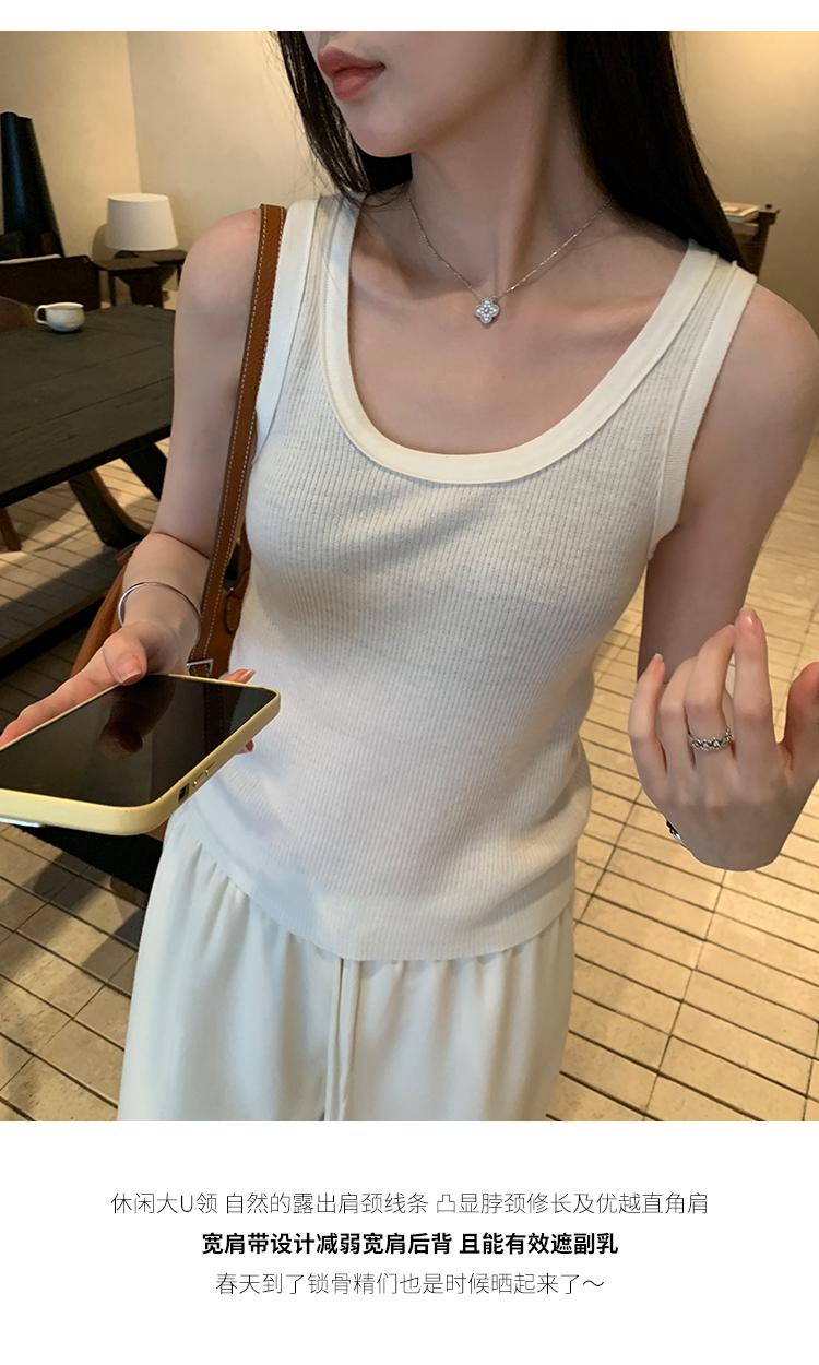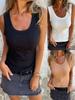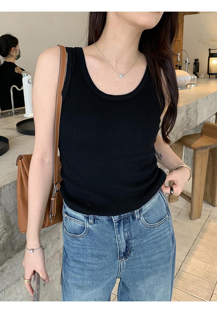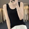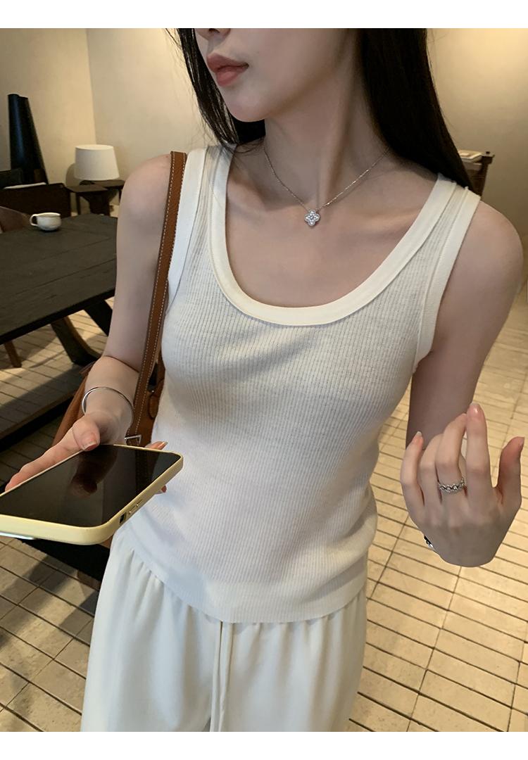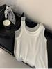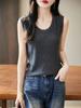 Chaleco Básico de Punto sin Mangas con Cuello U para Mujer Primavera Verano 2025 Hilo Elástico Ajustado Blanco