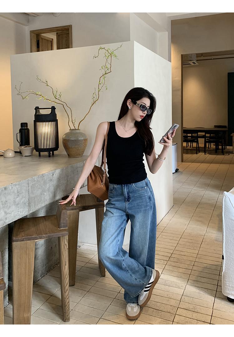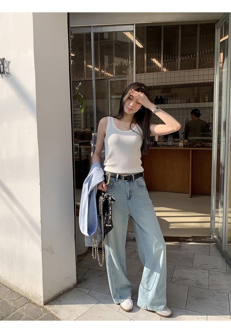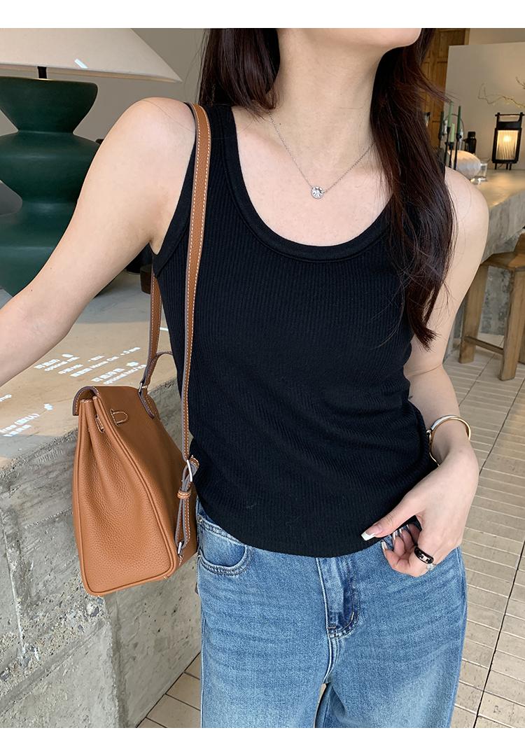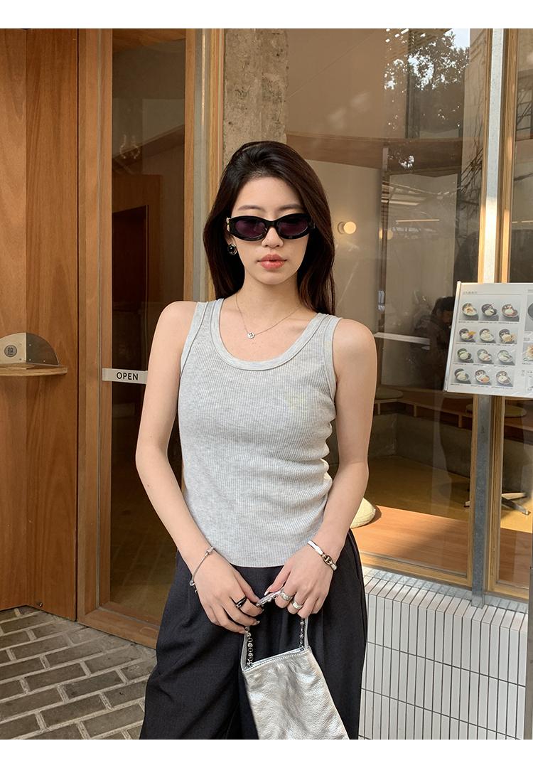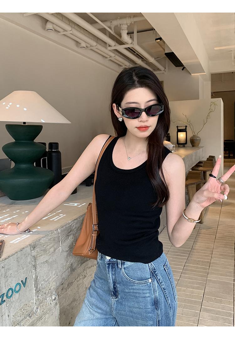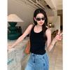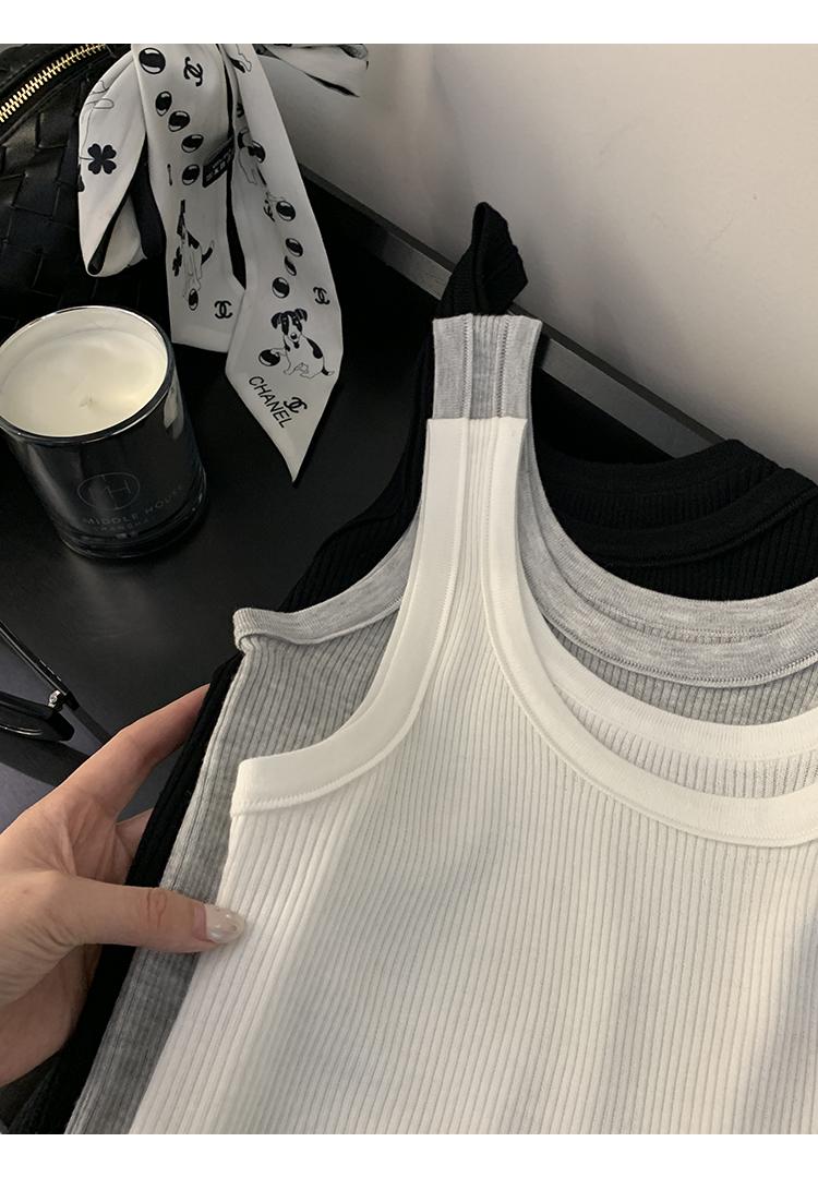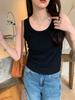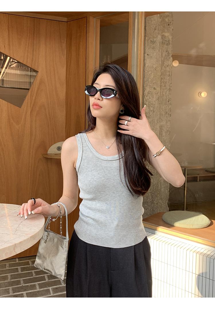 Chaleco Básico de Punto sin Mangas con Cuello U para Mujer Primavera Verano 2025 Hilo Elástico Ajustado Blanco