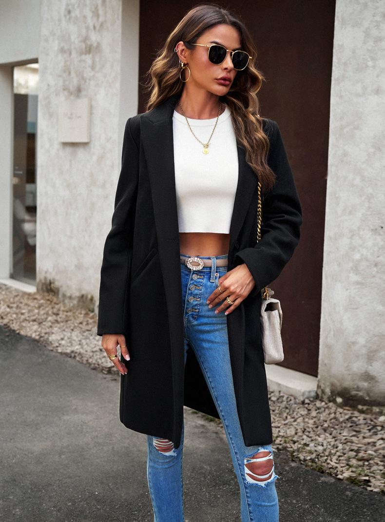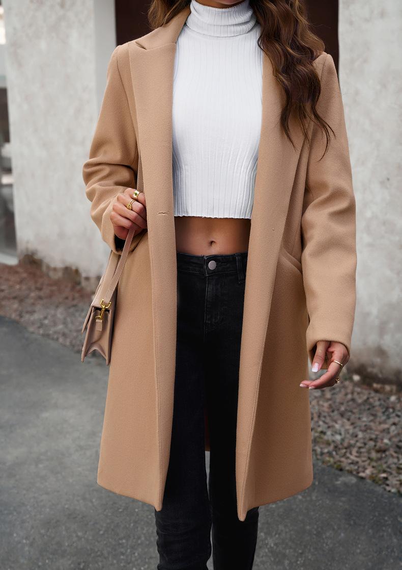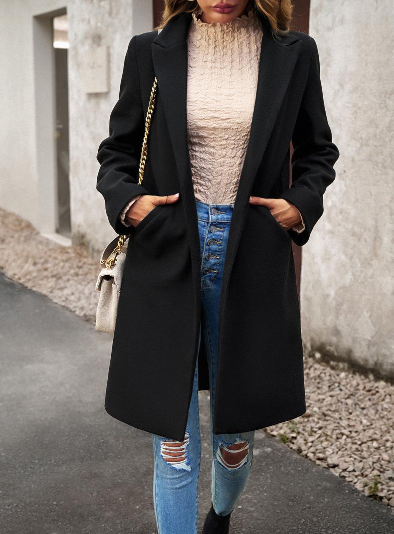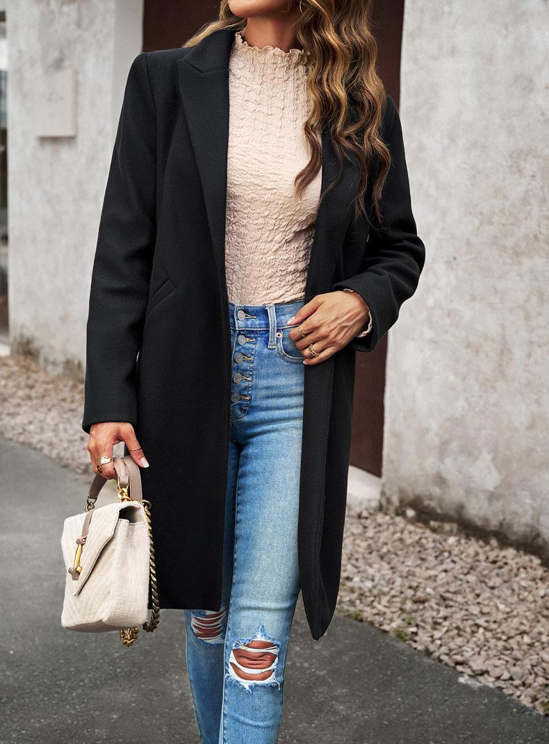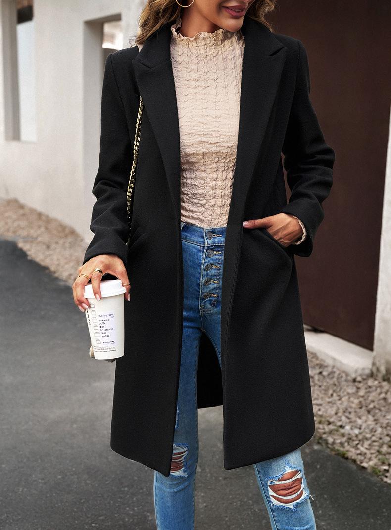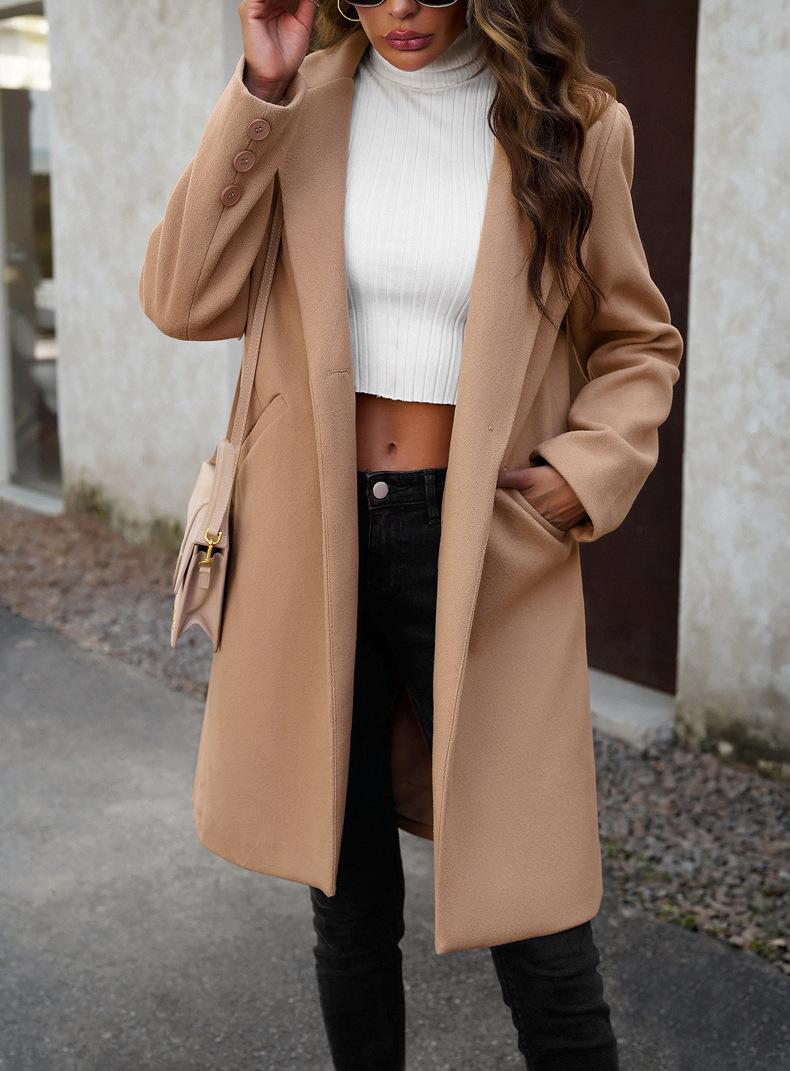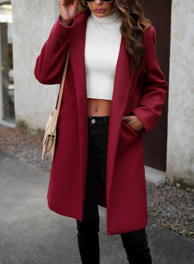 Abrigo de Lana Nuevo Europeo y Americano Transfronterizo 2025 Otoño/Invierno Comercio Exterior Color Sólido Temperamento Para Ir al Trabajo Cárdigan Abrigo