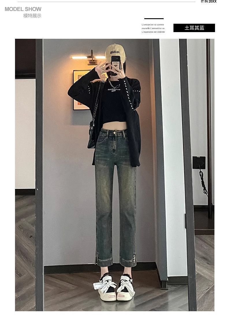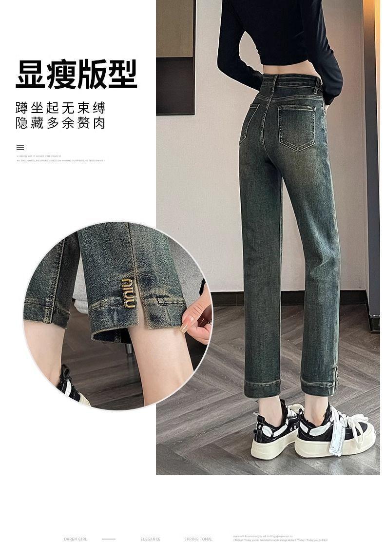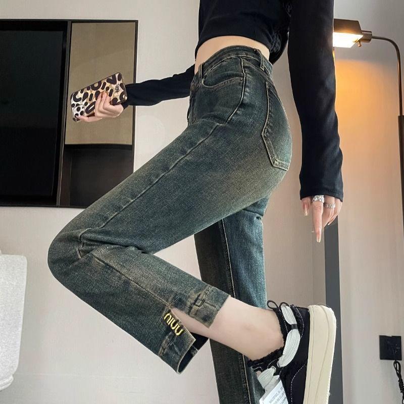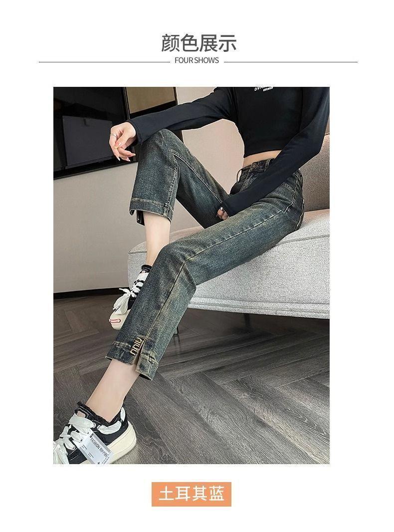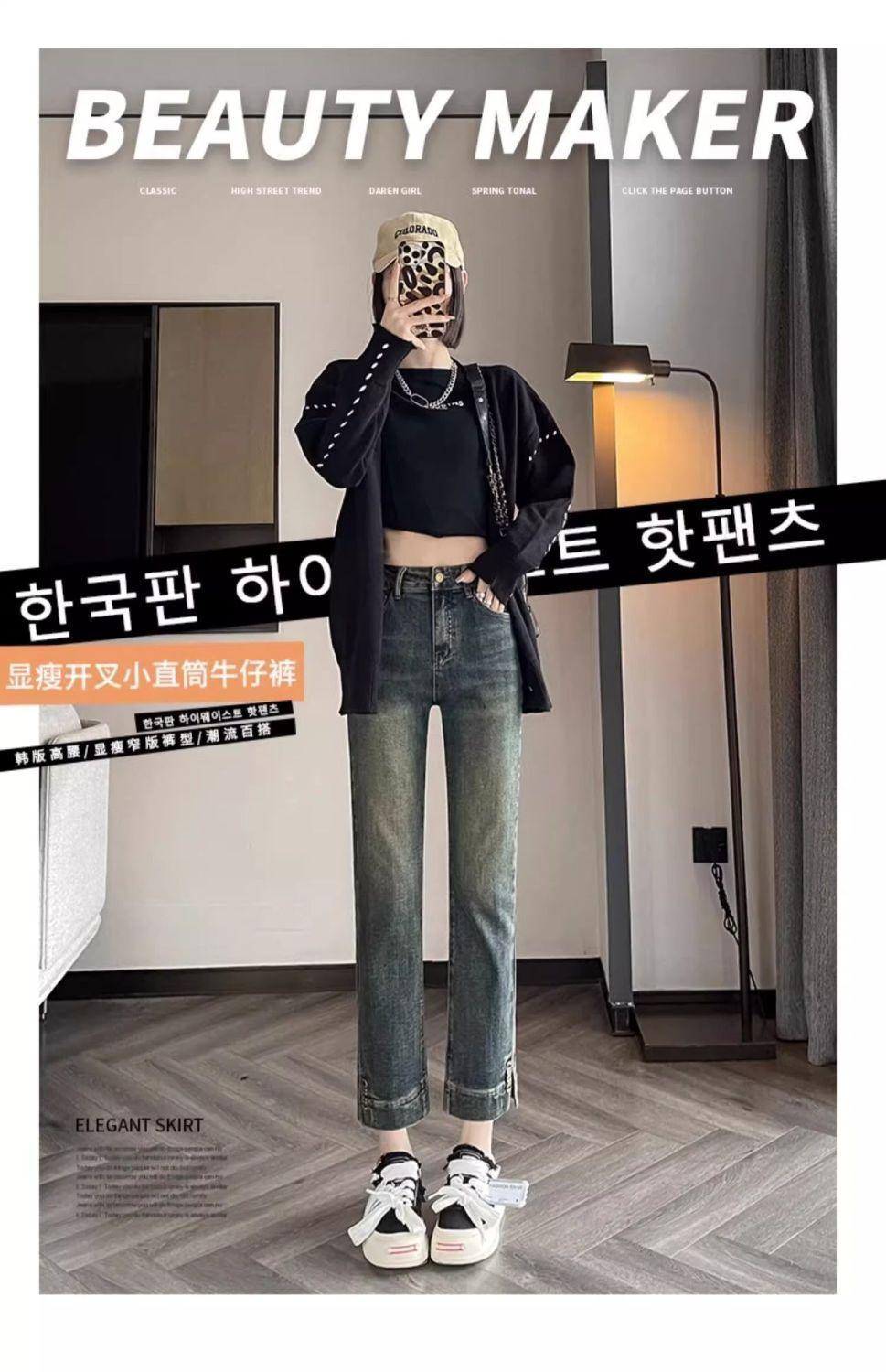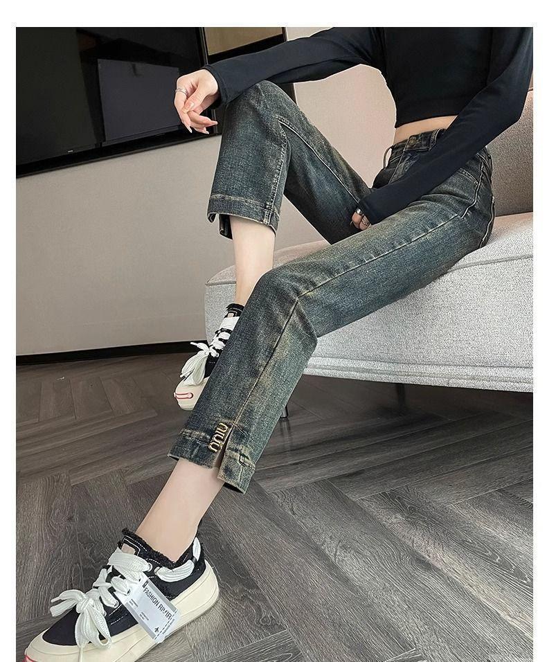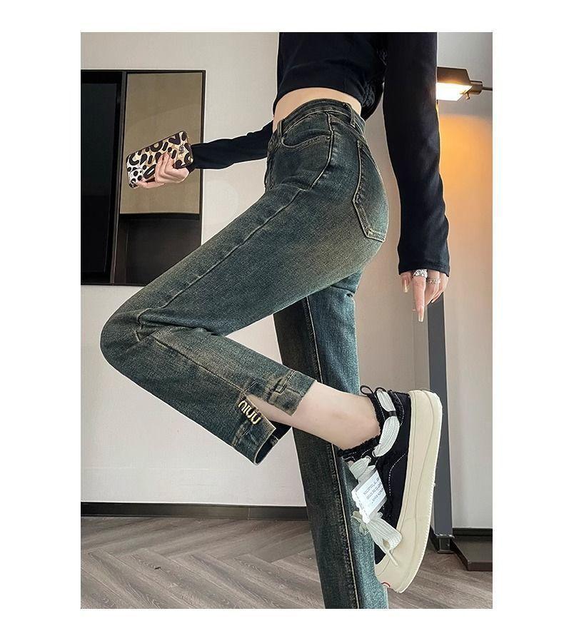 Jeans Retro Slit Cigarette Mujer 2025 Primavera/Verano Nuevo Cintura Alta Petite Nueve Puntos Pierna Recta Estrecha