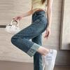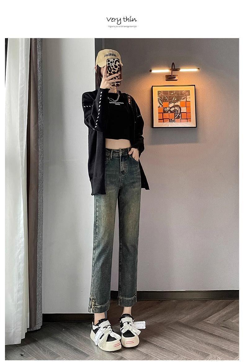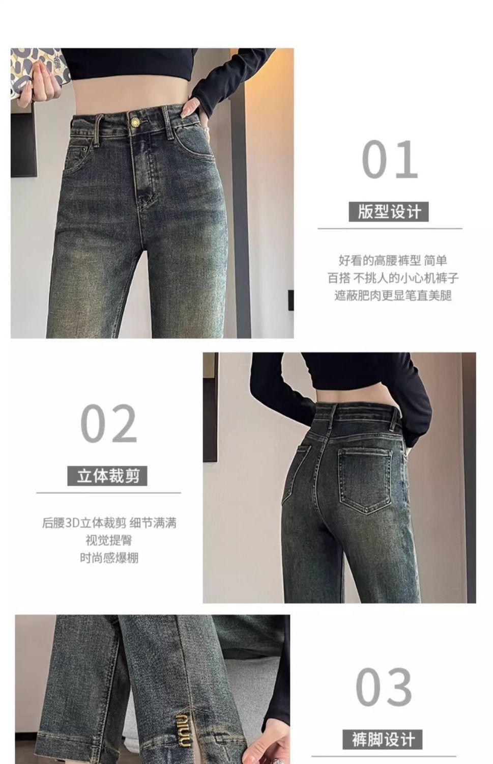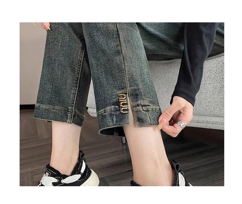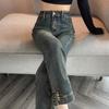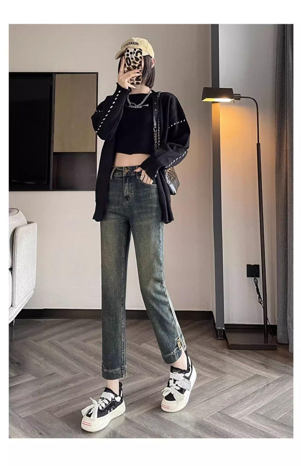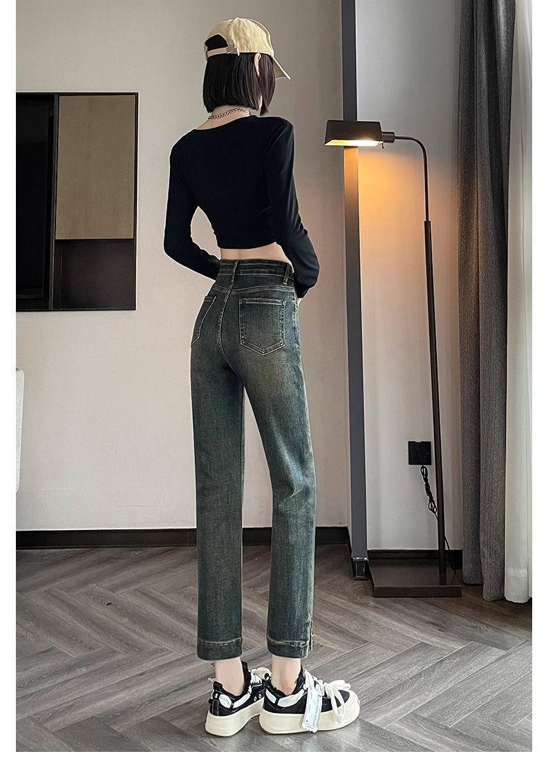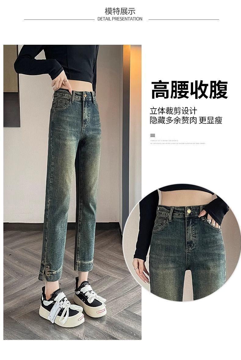 Jeans Retro Slit Cigarette Mujer 2025 Primavera/Verano Nuevo Cintura Alta Petite Nueve Puntos Pierna Recta Estrecha