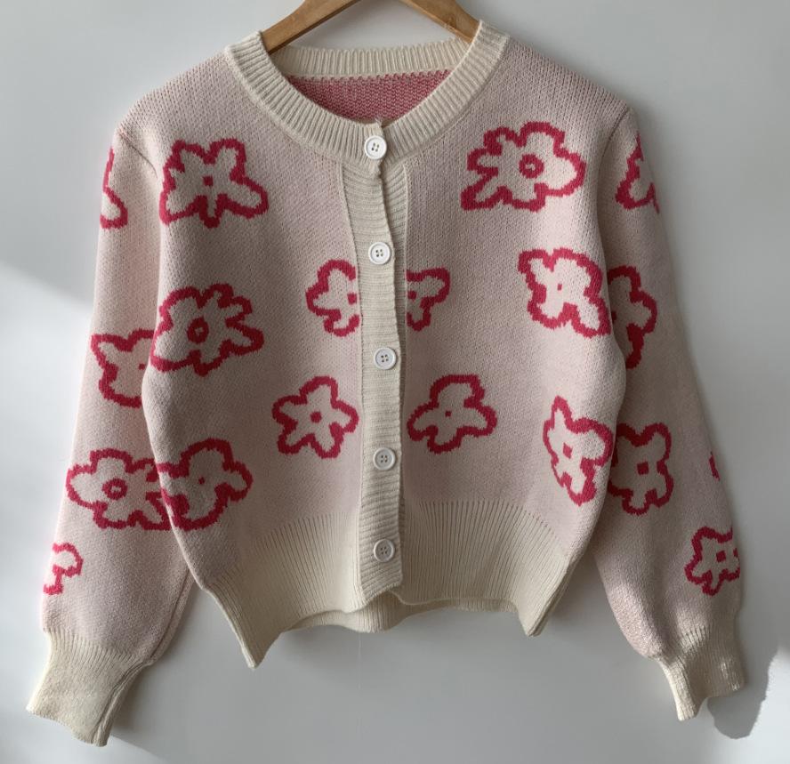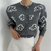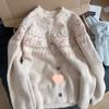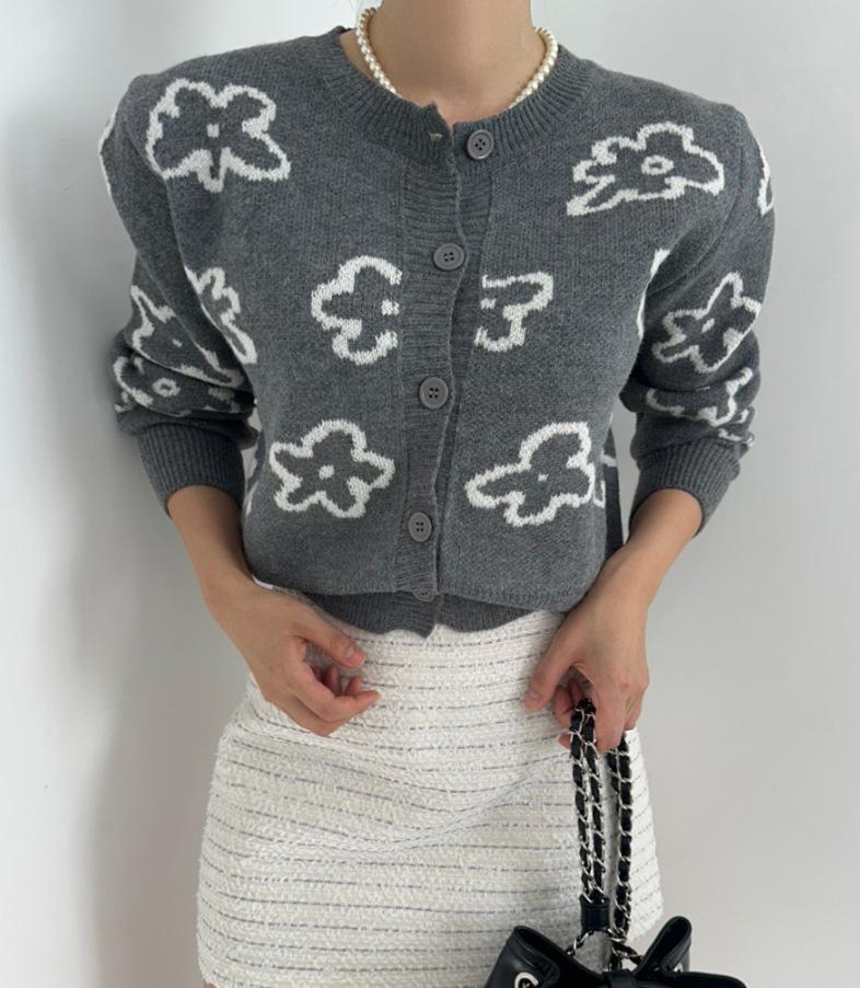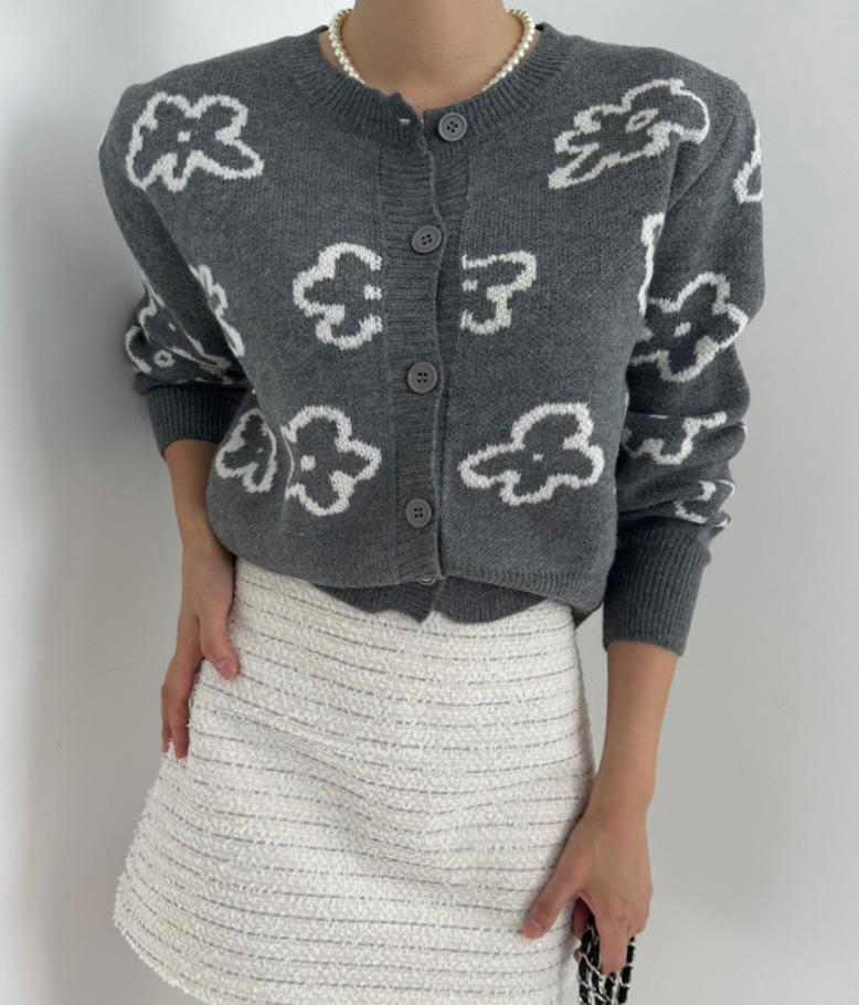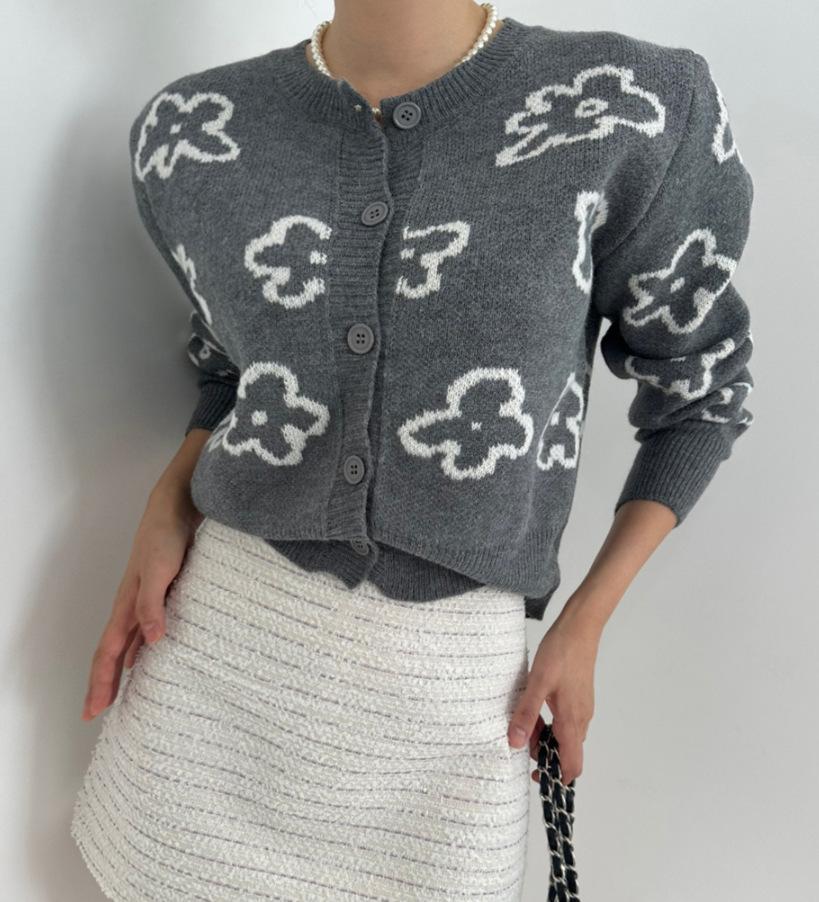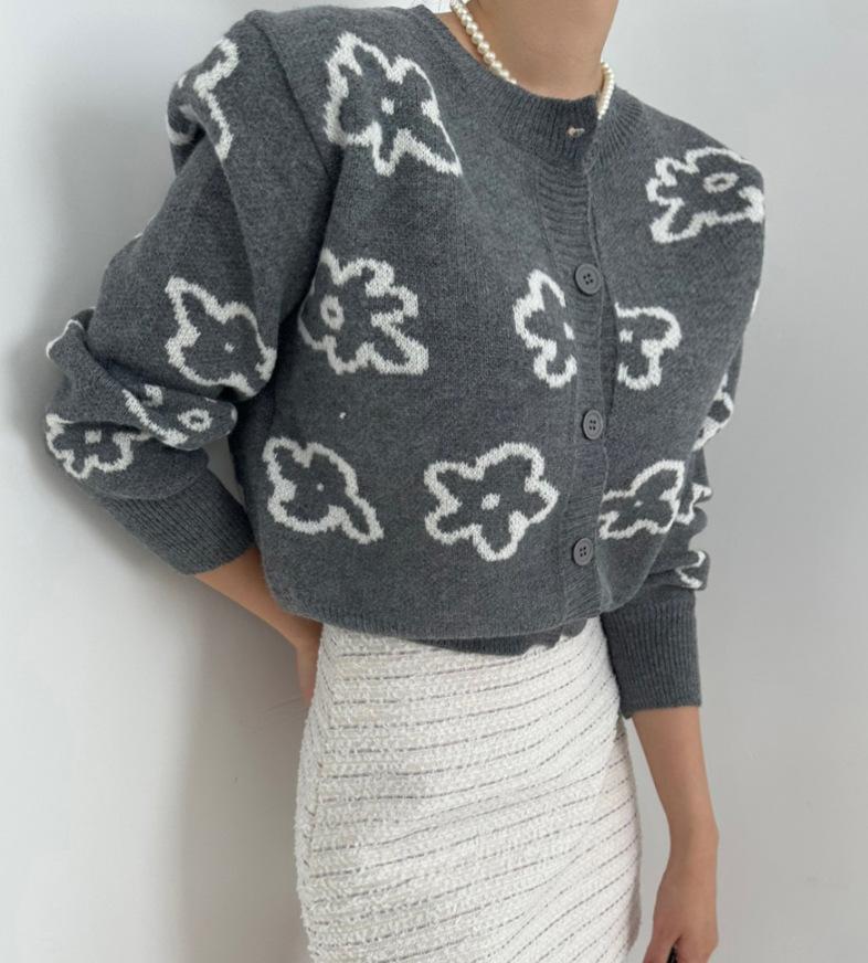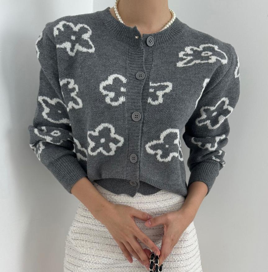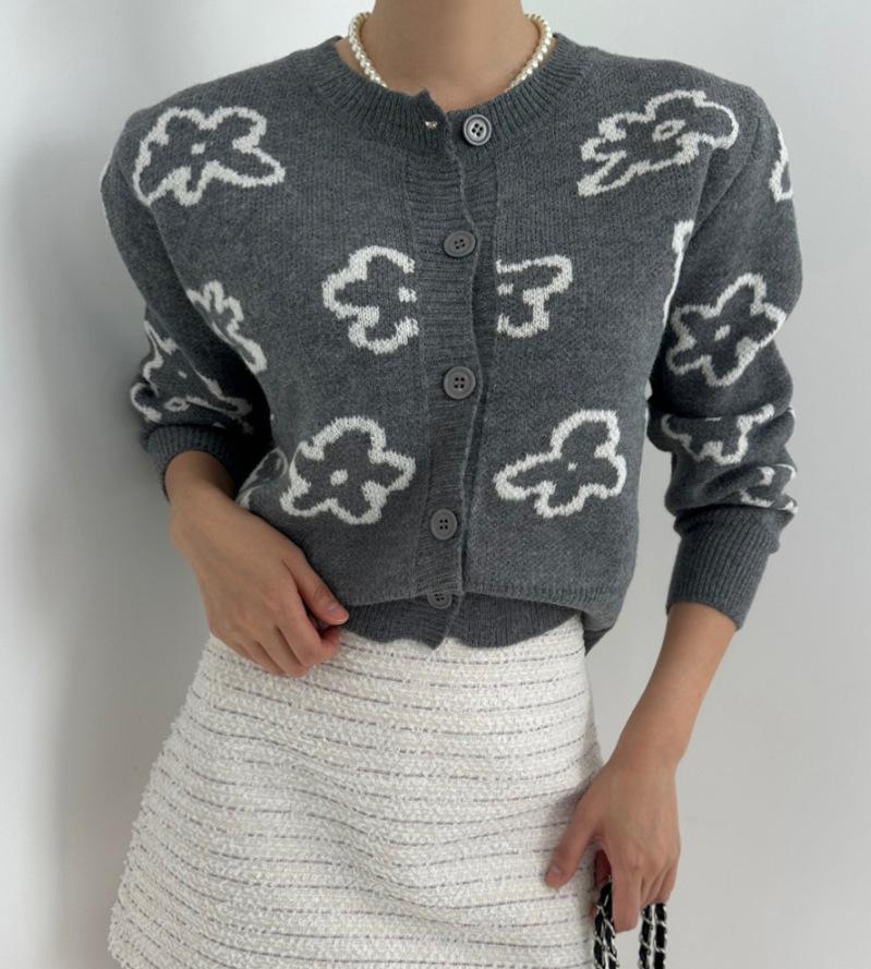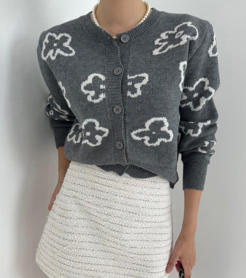 Cárdigan de Punto Jacquard Nuevo Otoño/Invierno para Mujer Suéter Holgado Corto Estilo Perezoso Coreano Versátil Manga Larga para Mujer