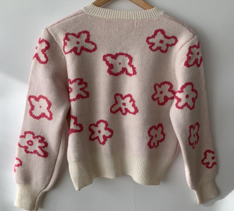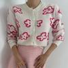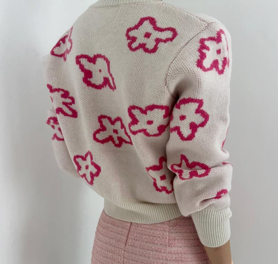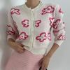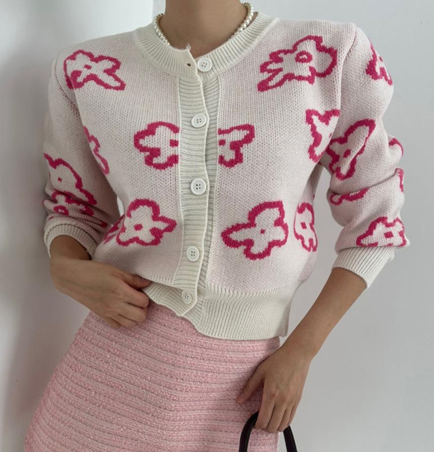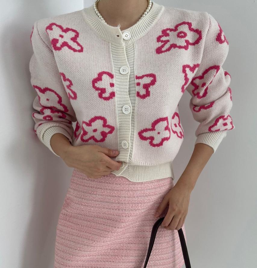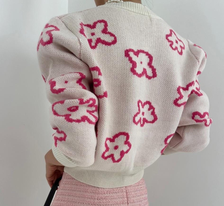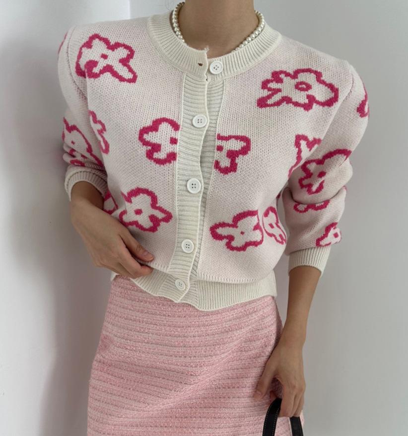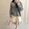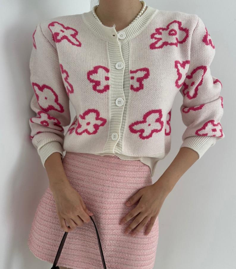 Cárdigan de Punto Jacquard Nuevo Otoño/Invierno para Mujer Suéter Holgado Corto Estilo Perezoso Coreano Versátil Manga Larga para Mujer