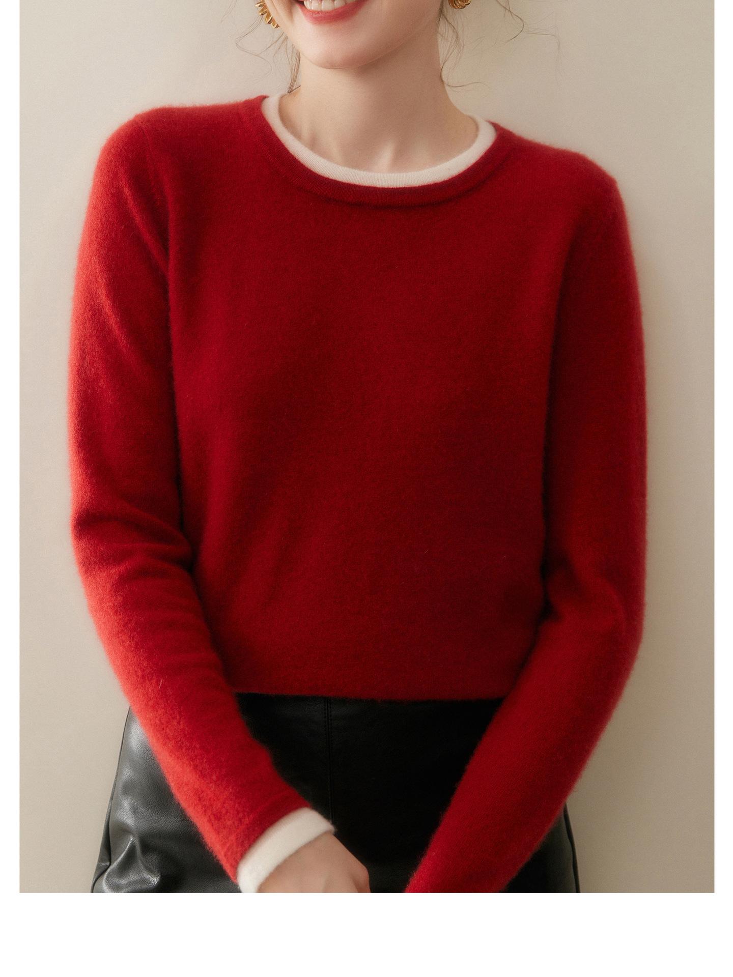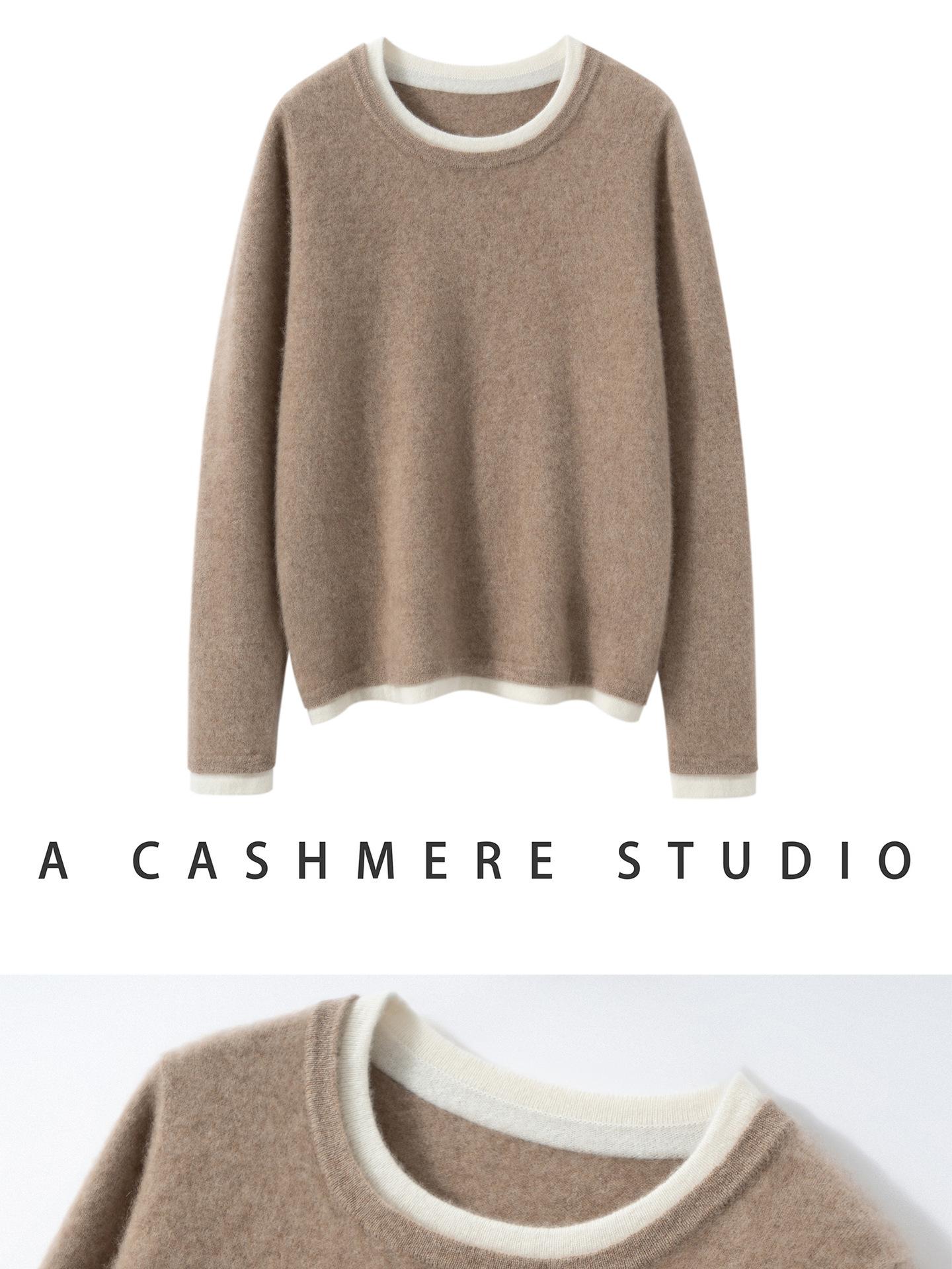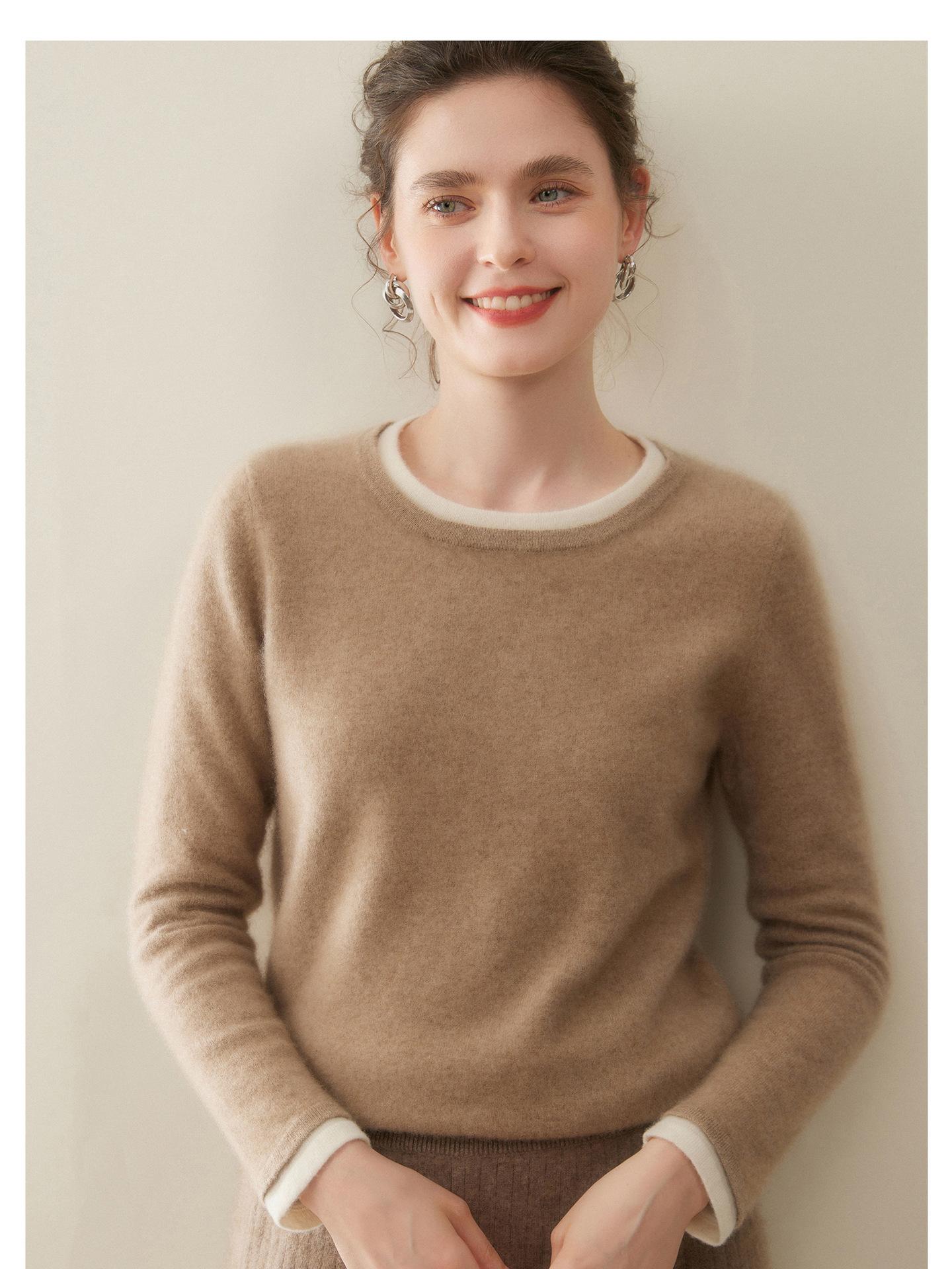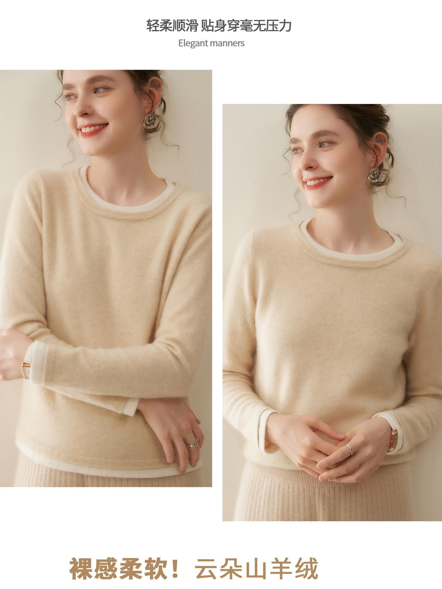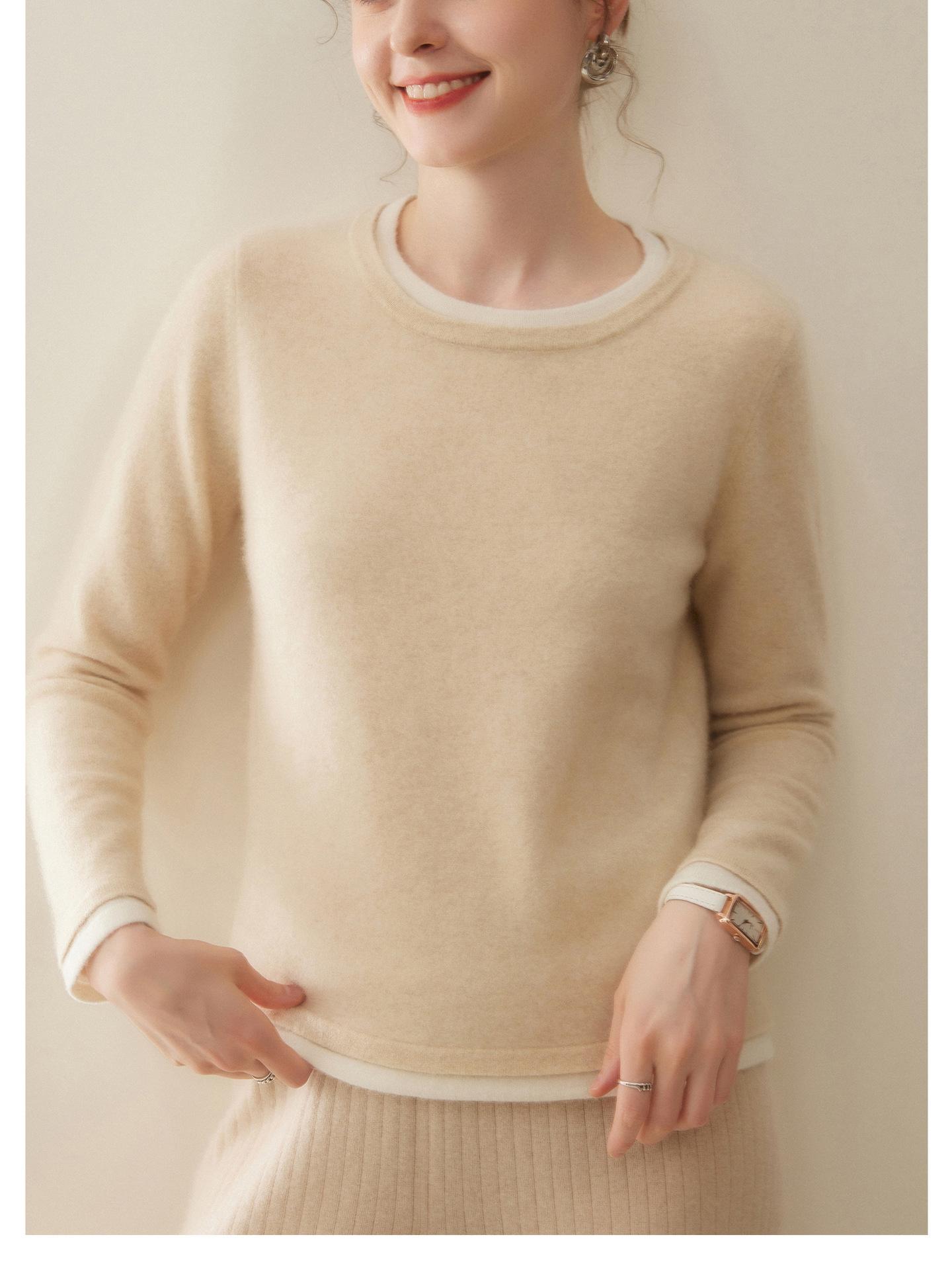 Suéter base de punto de cachemira de dos piezas falsas con cuello redondo para mujer 2025 otoño e invierno nuevo holgado versátil para llevar debajo suéter de moda