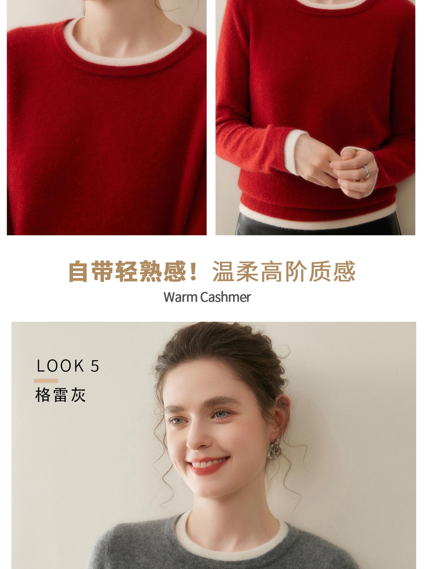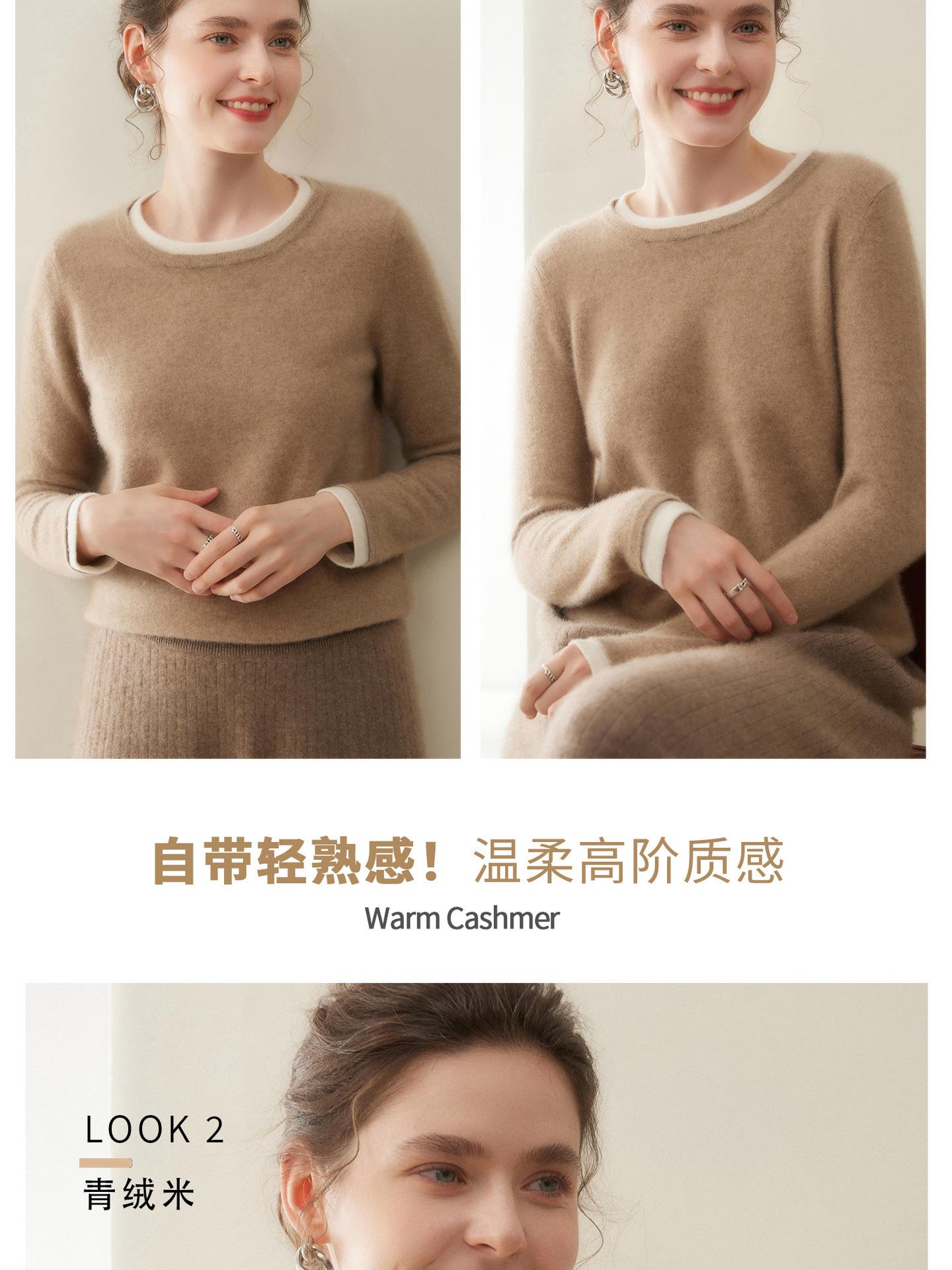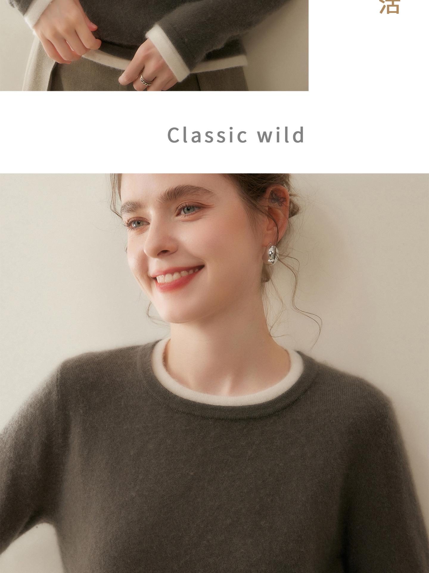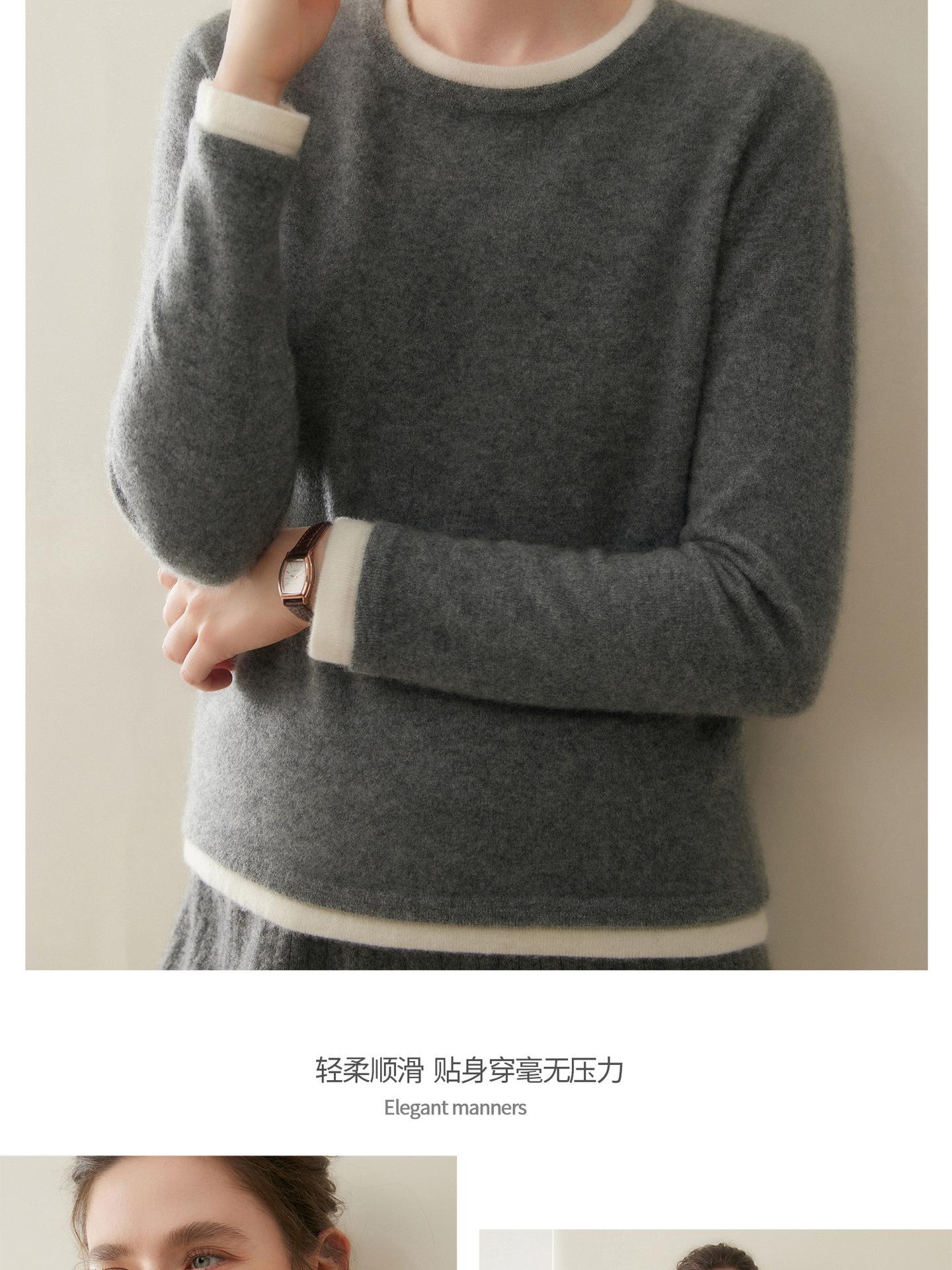 Suéter base de punto de cachemira de dos piezas falsas con cuello redondo para mujer 2025 otoño e invierno nuevo holgado versátil para llevar debajo suéter de moda