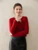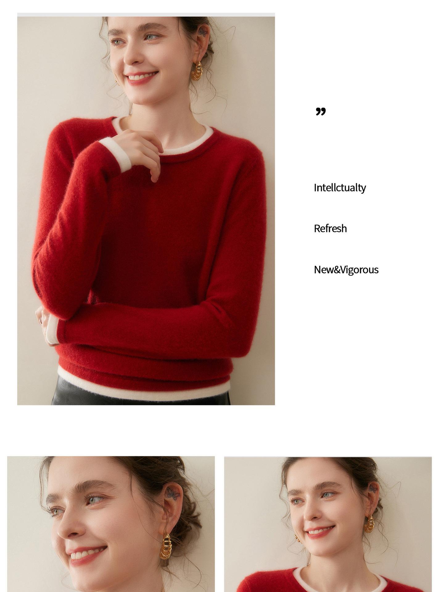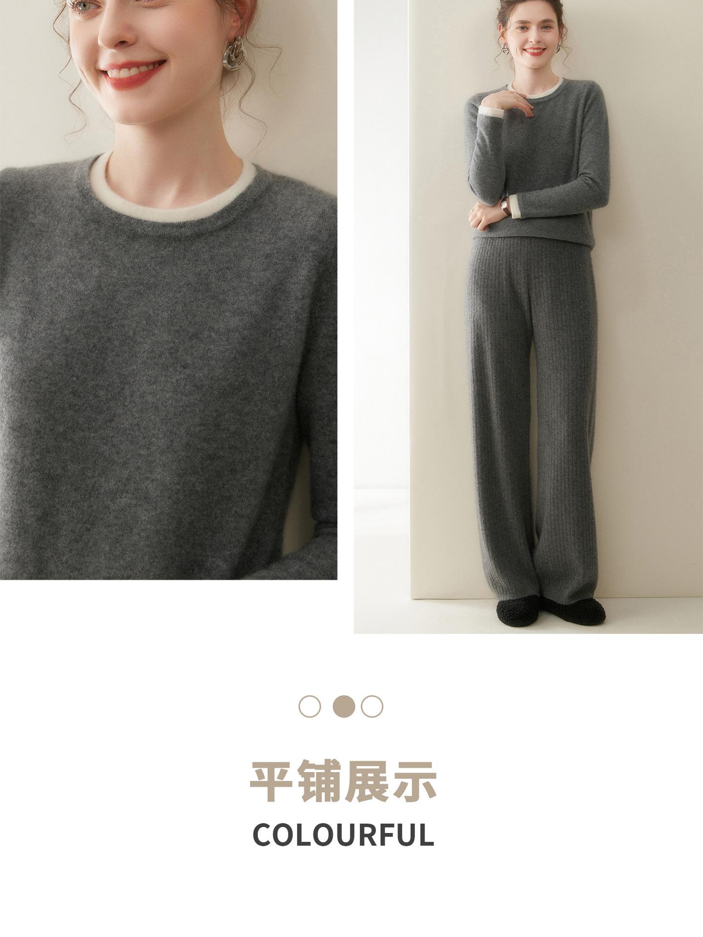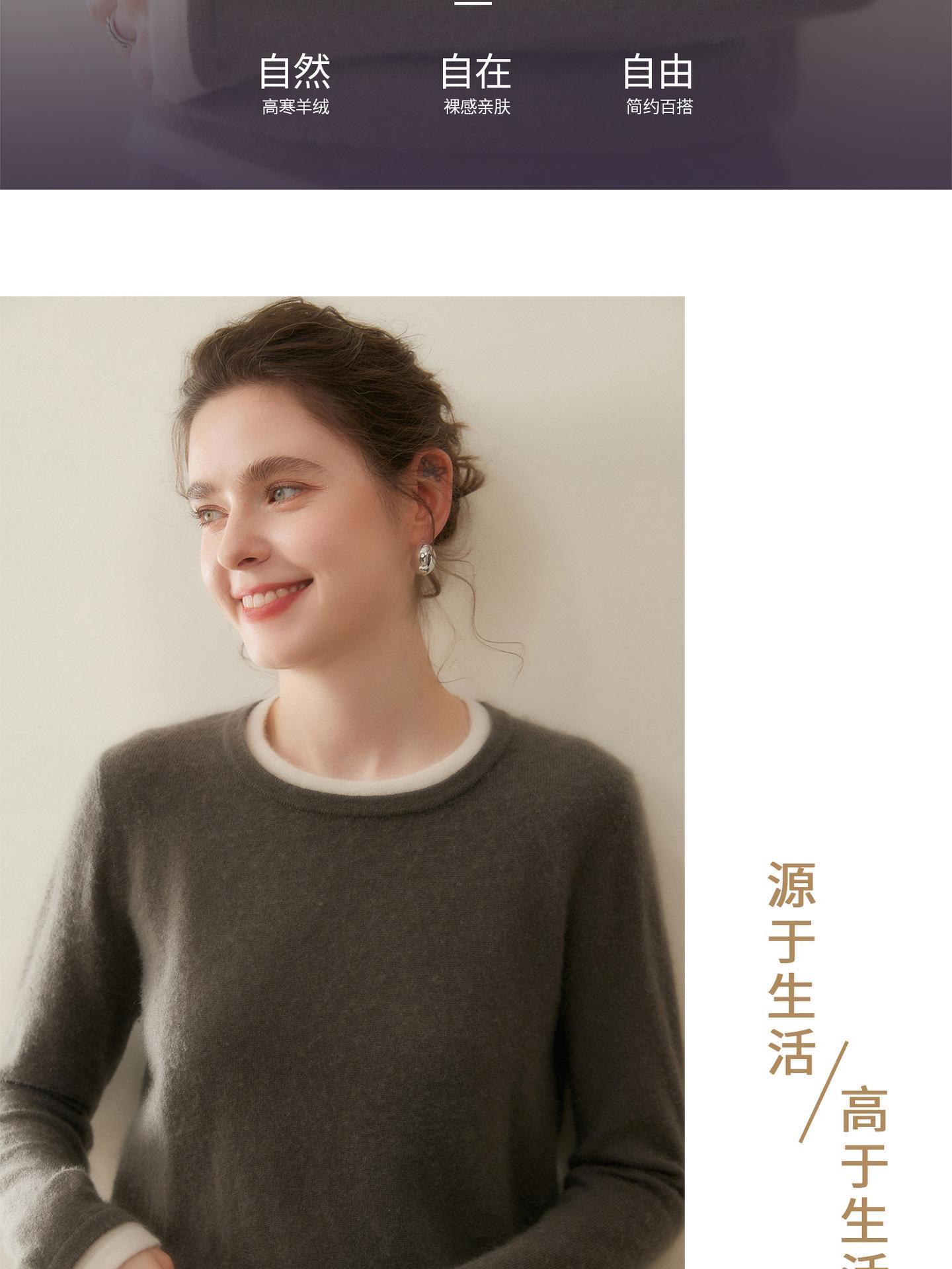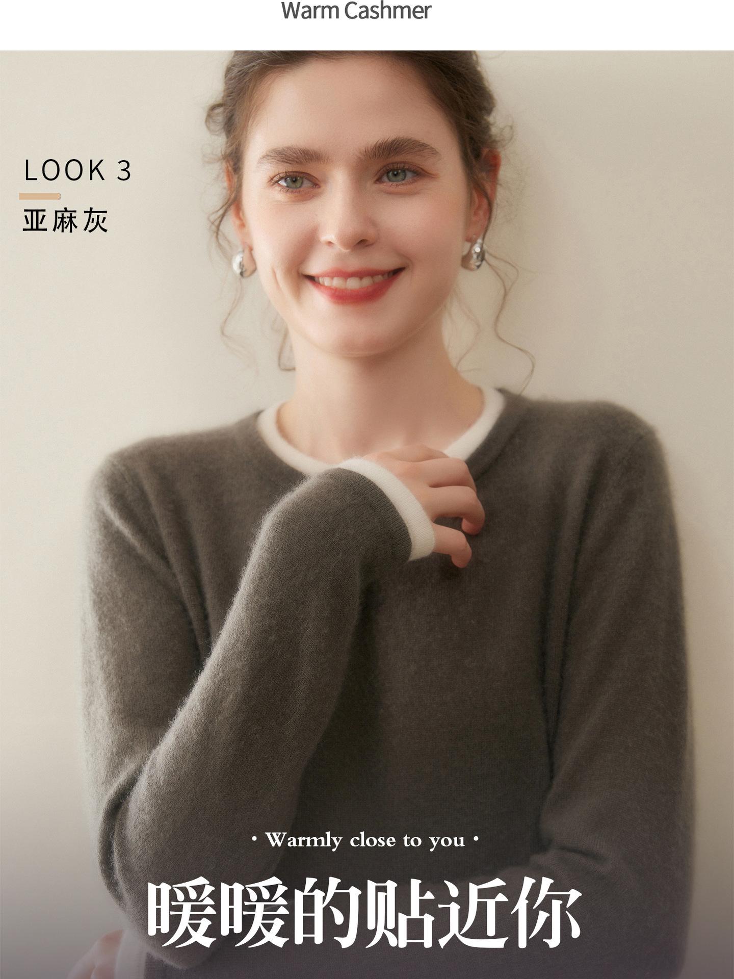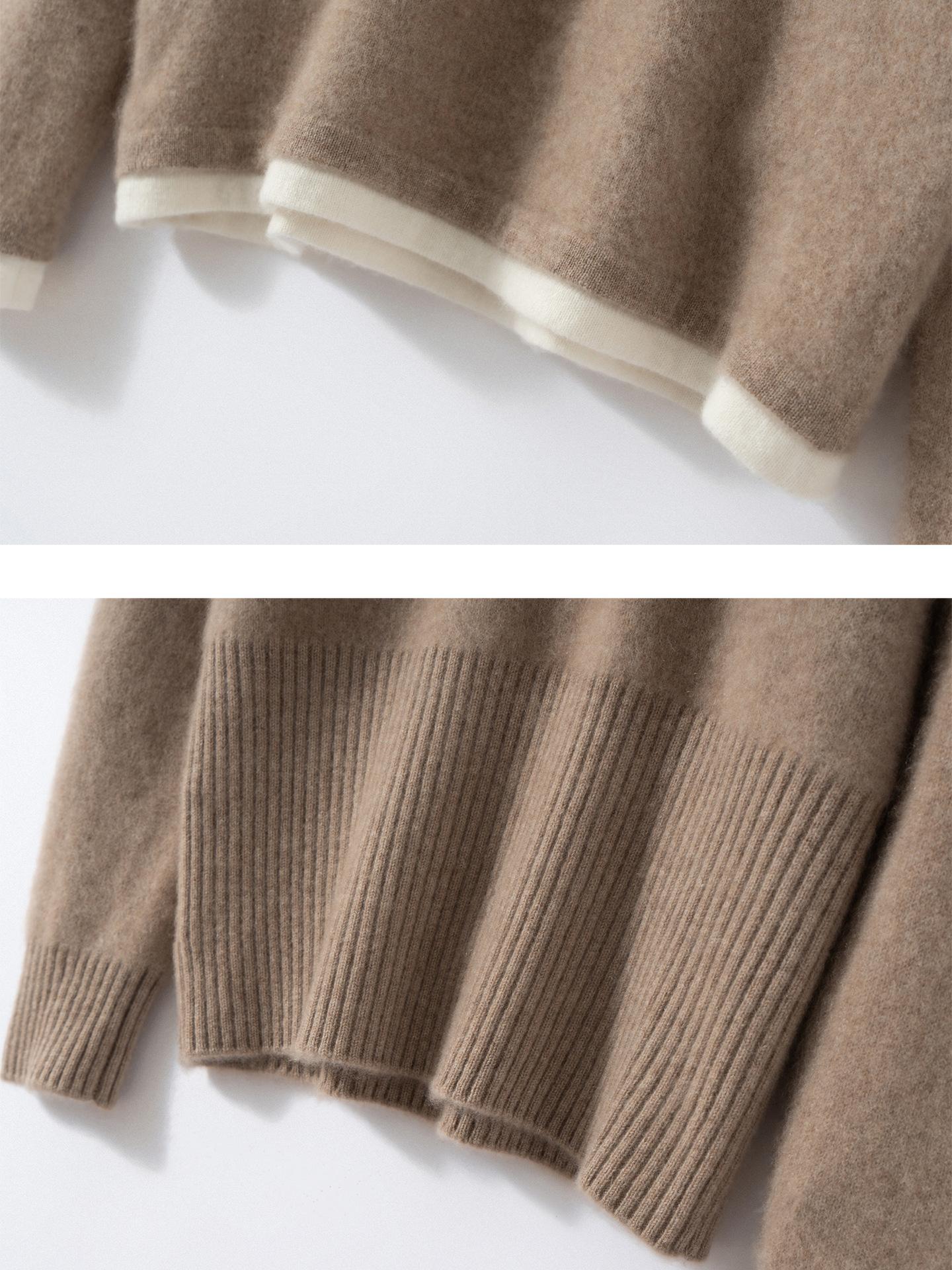 Suéter base de punto de cachemira de dos piezas falsas con cuello redondo para mujer 2025 otoño e invierno nuevo holgado versátil para llevar debajo suéter de moda
