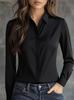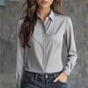 2025 Amazon Europeo y Americano Transfronterizo Nuevo Otoño Color Sólido Manga Larga Camisa Versátil Cuello Vuelto Camisa de Satén Mujer
