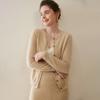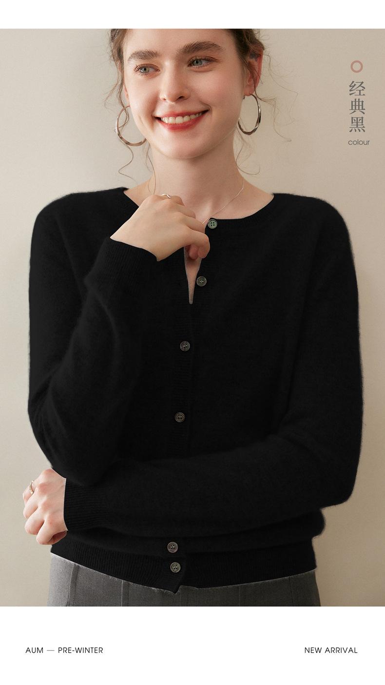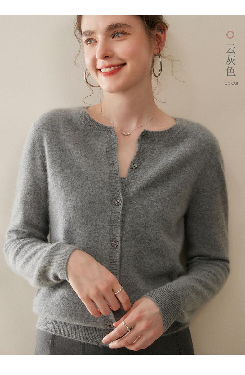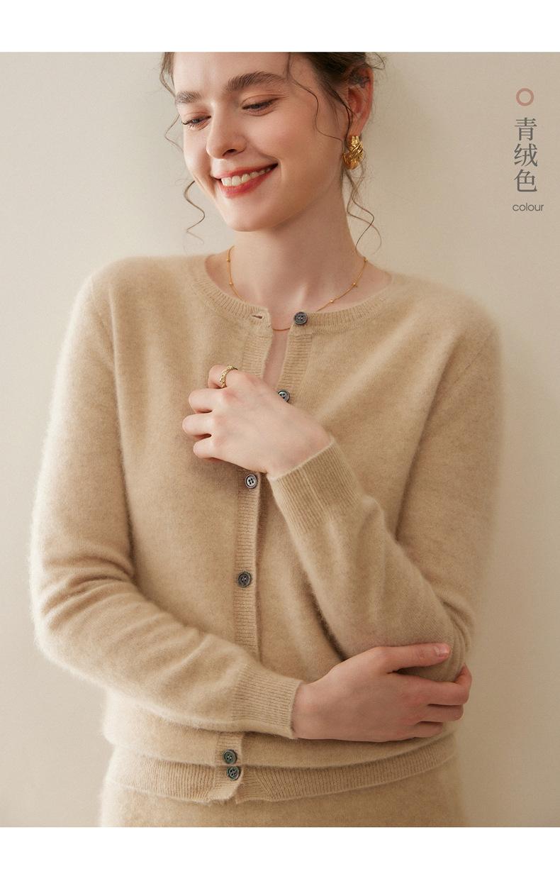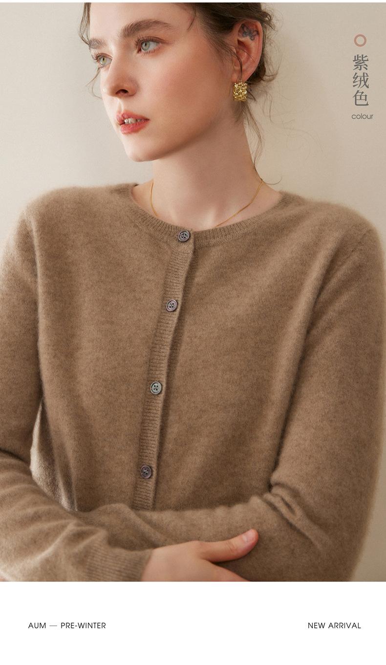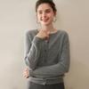 Cárdigan de Cachemira 100% Nuevo Otoño/Invierno 2025 para Mujer, Suéter de Cuello Redondo, Prenda Exterior Versátil, Top Tejido de Capa Base