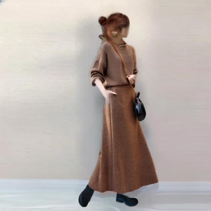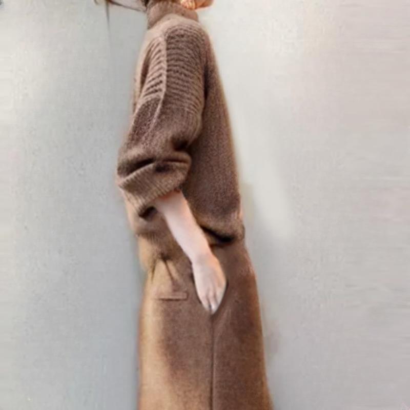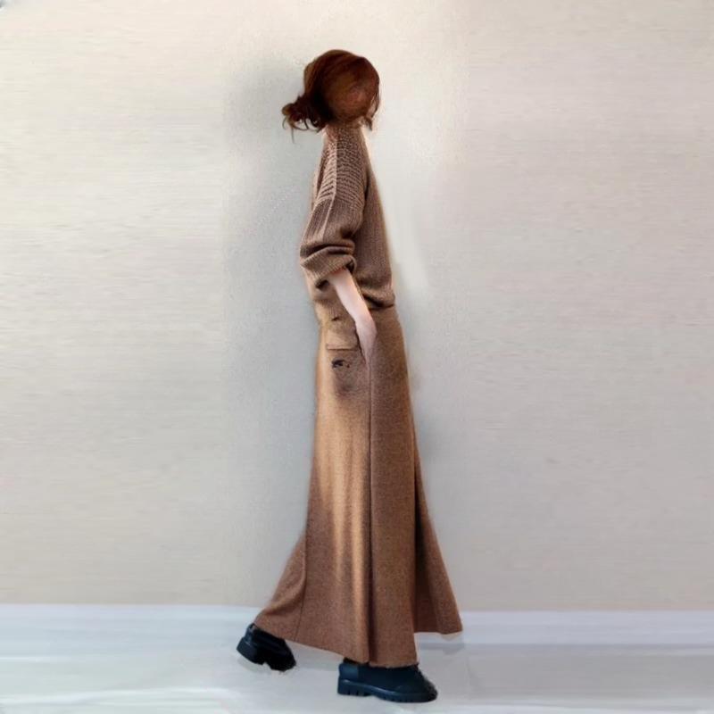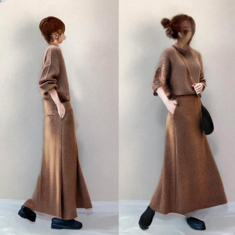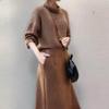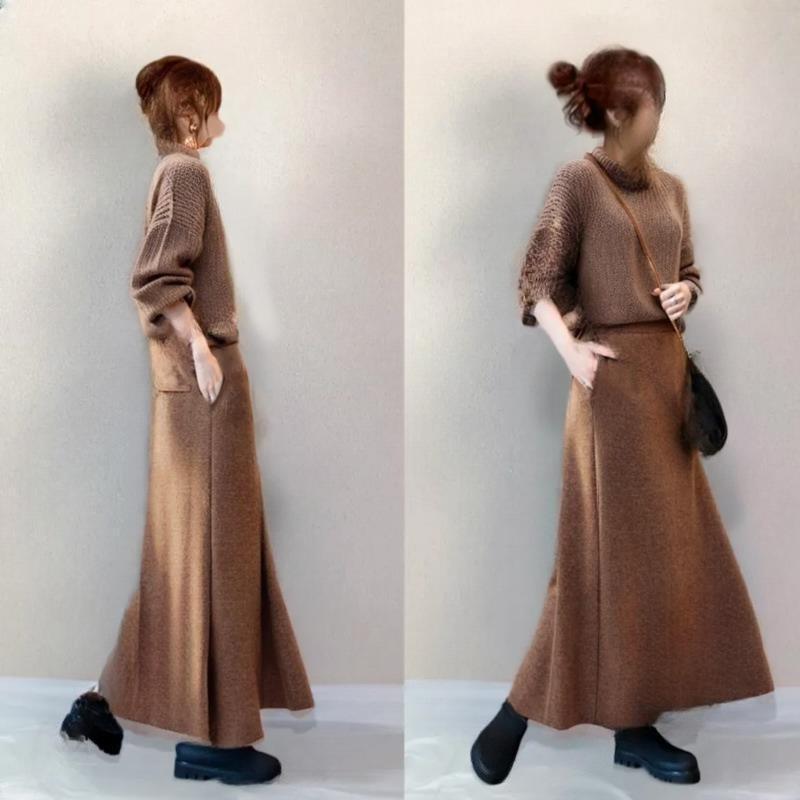 Conjunto de dos piezas de top de lana de solapa alta y falda estilo japonés de moda, nuevo para otoño e invierno 2024
