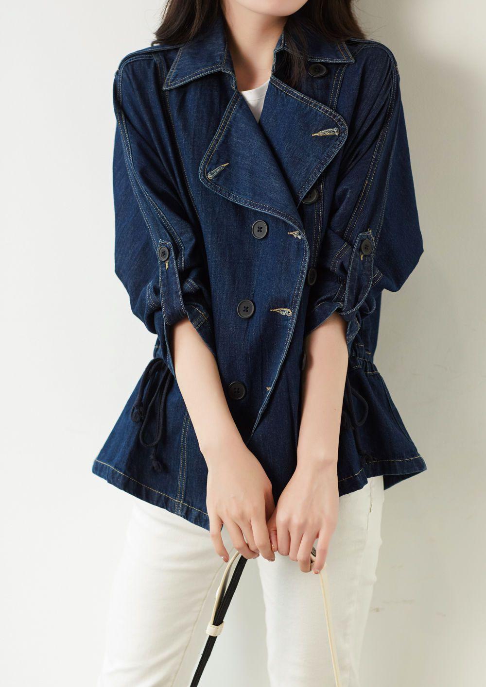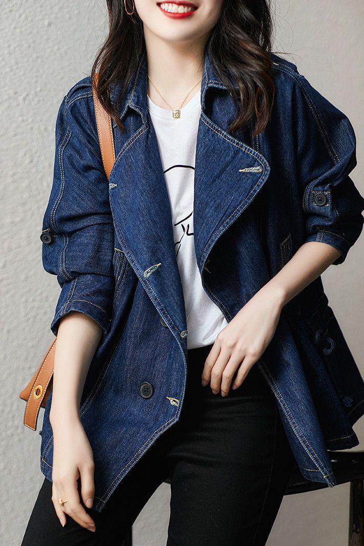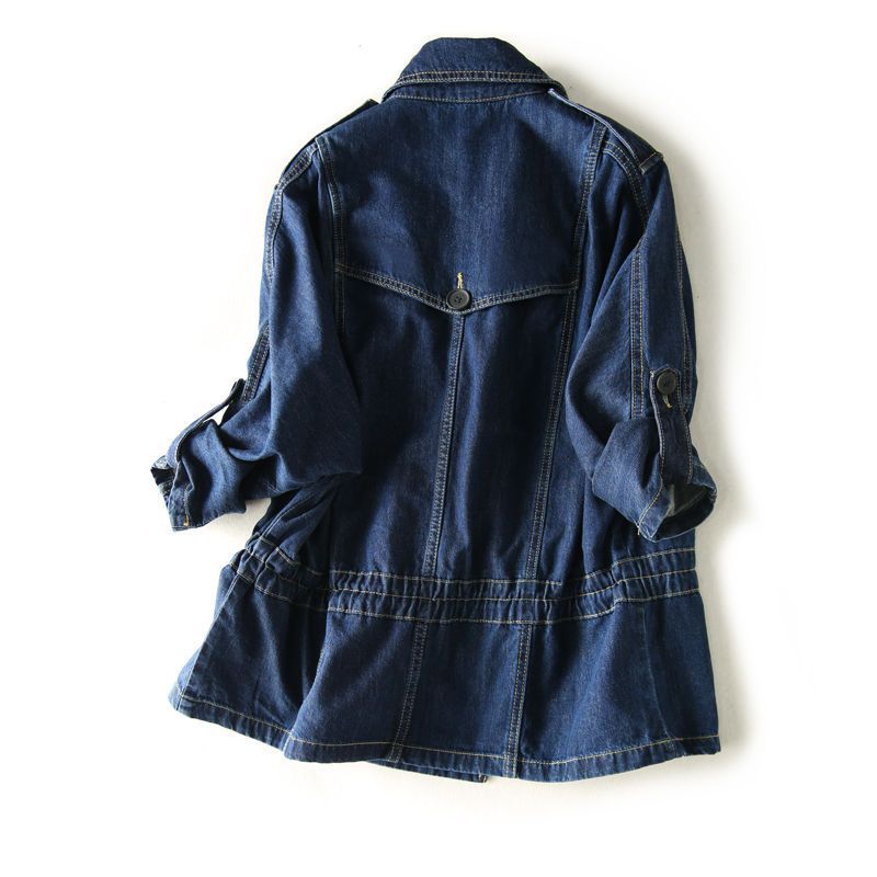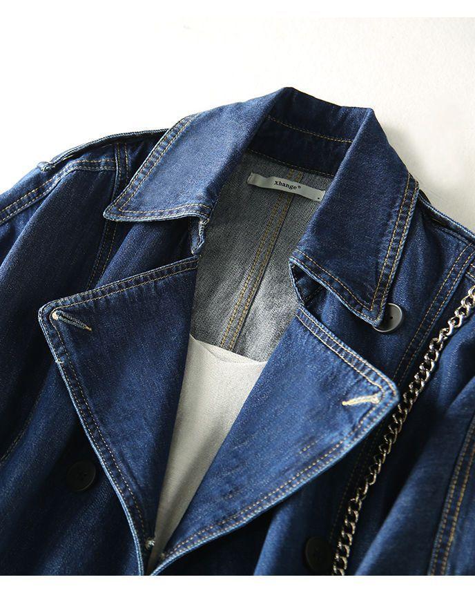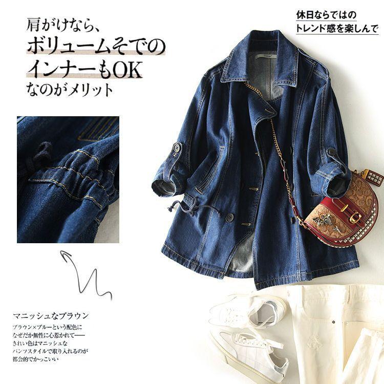 Chaqueta vaquera de nicho para mujer de otoño, gabardina vaquera de largo medio, holgada estilo capa de manga doble y que ciñe la cintura para estilizar.