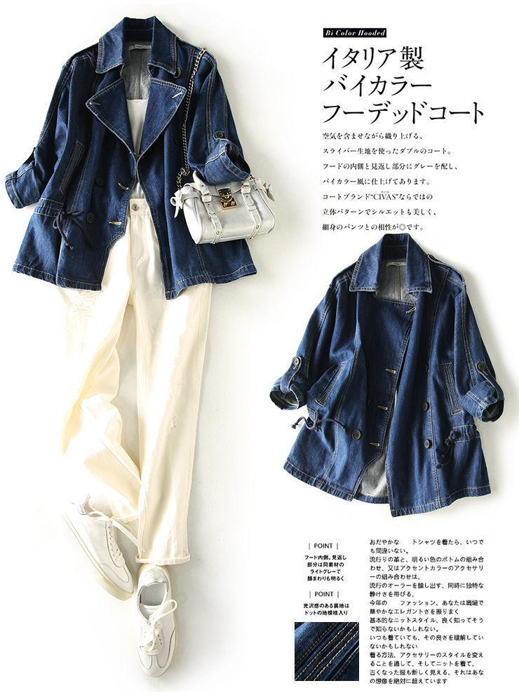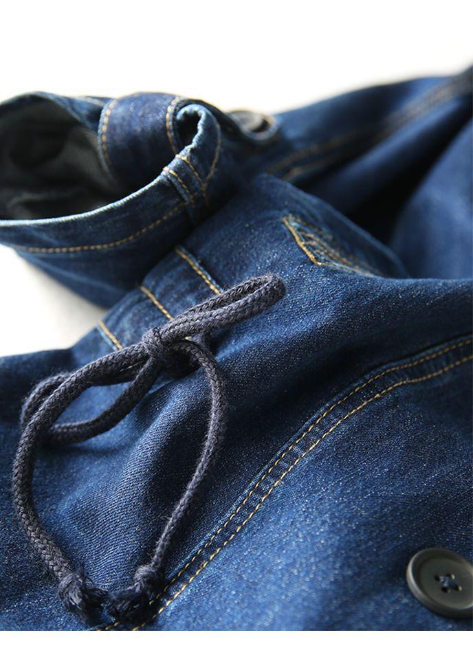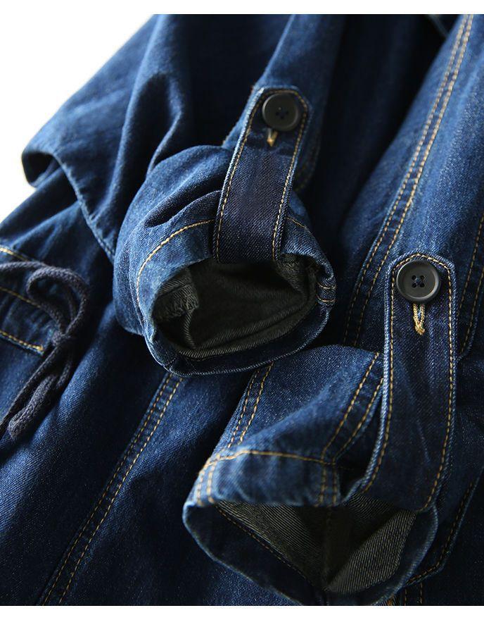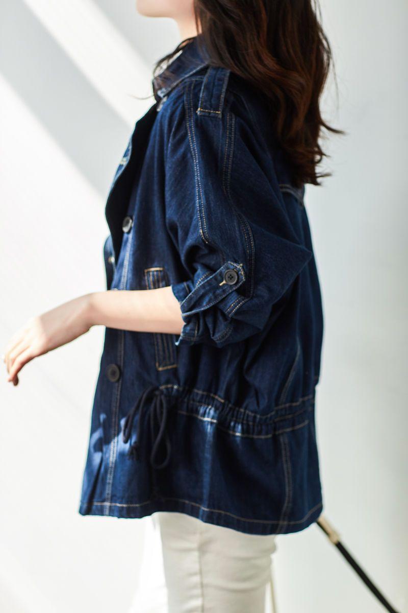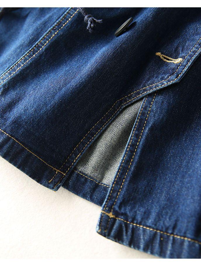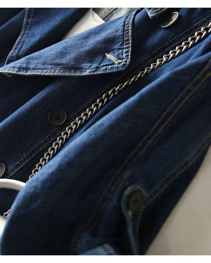 Chaqueta vaquera de nicho para mujer de otoño, gabardina vaquera de largo medio, holgada estilo capa de manga doble y que ciñe la cintura para estilizar.