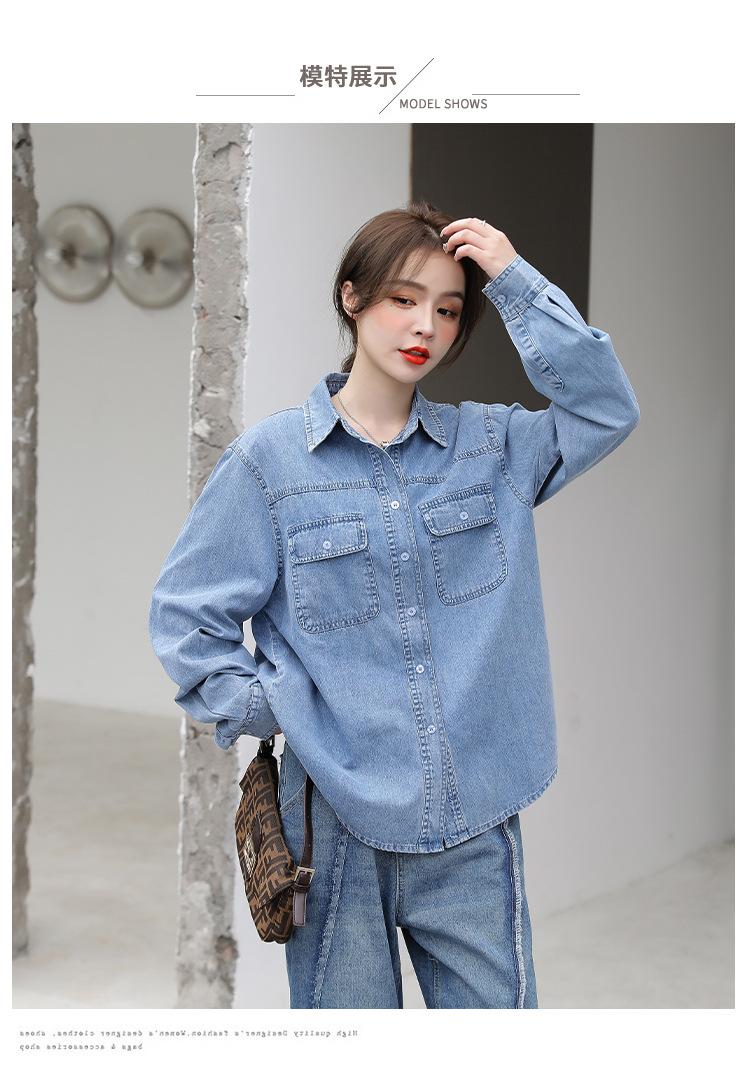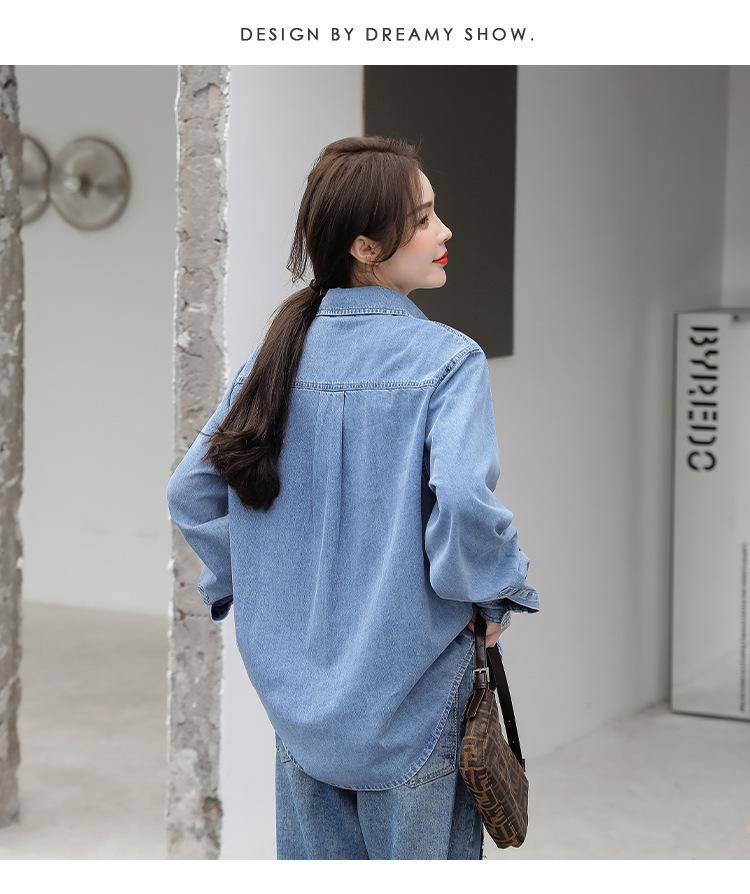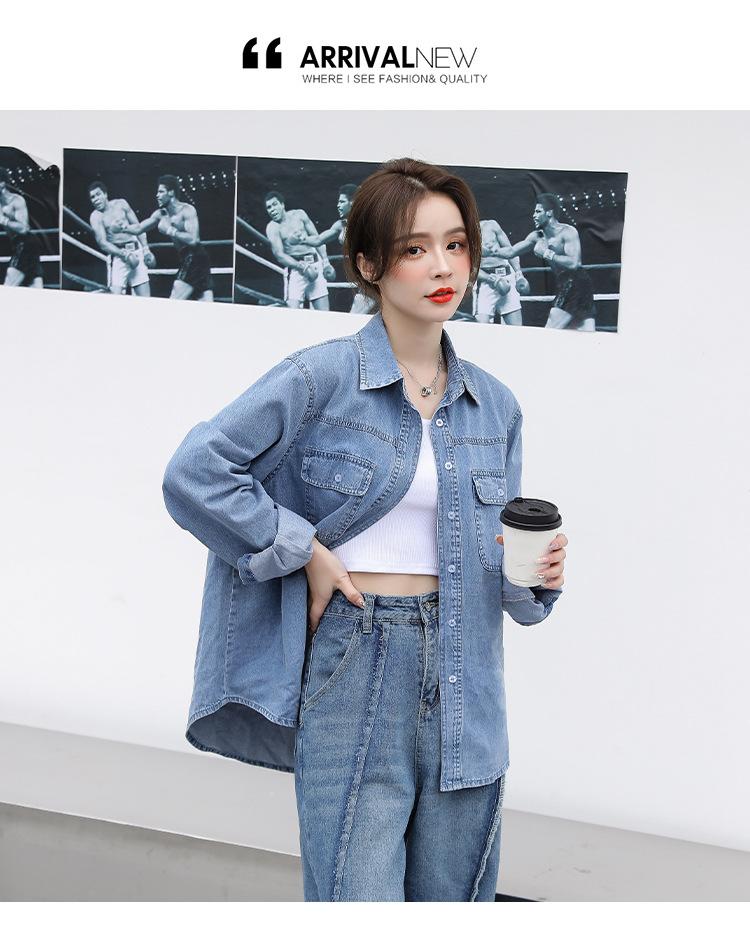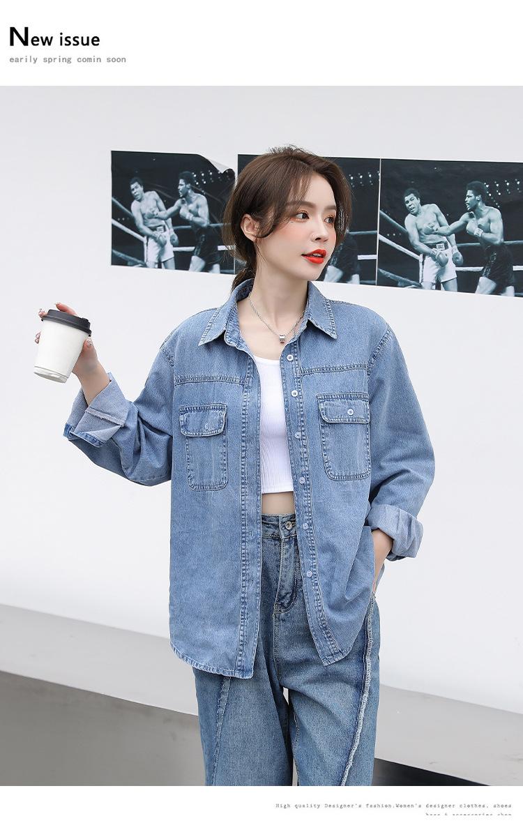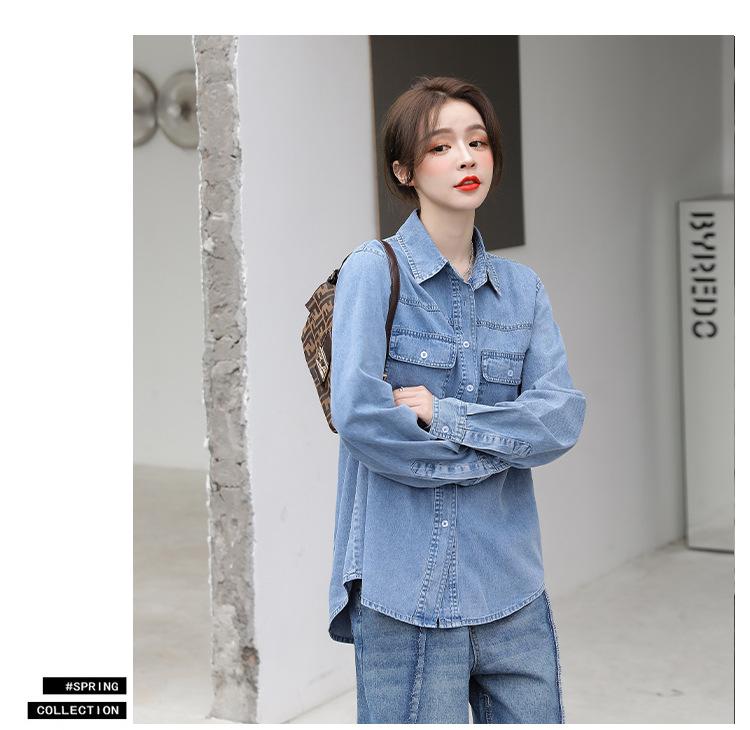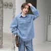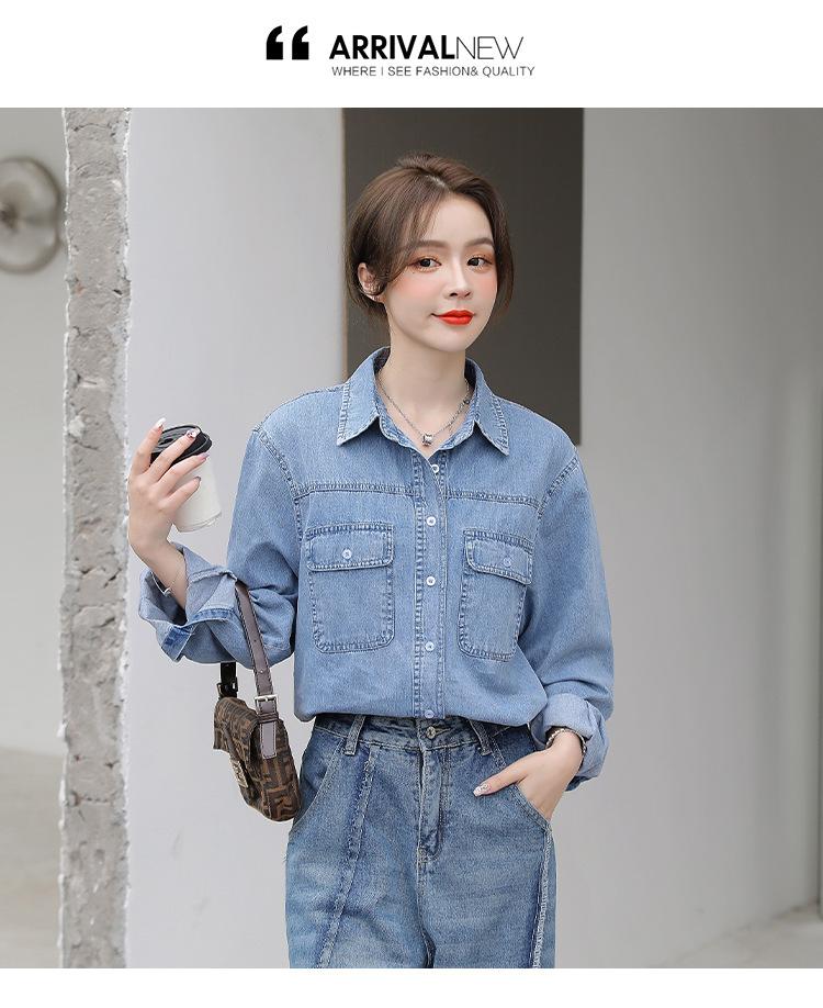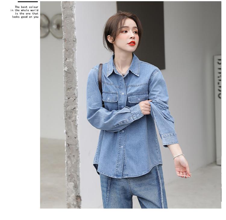 Camisa de mezclilla lavada para mujer, Nueva camisa holgada de manga larga estilo coreano de otoño, Top adelgazante