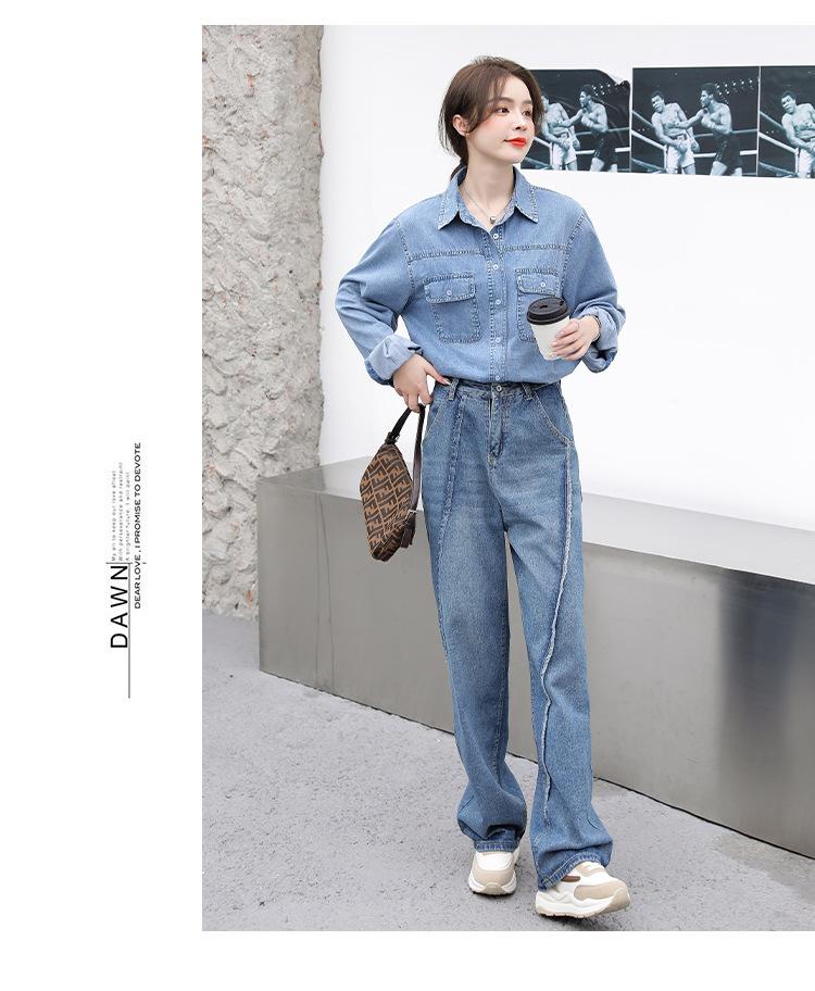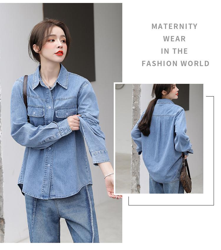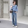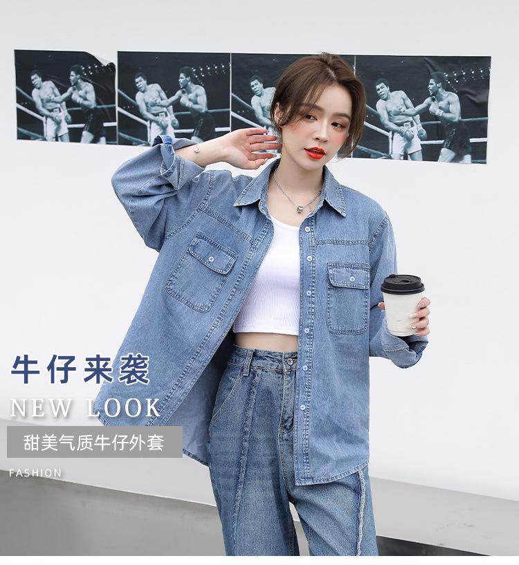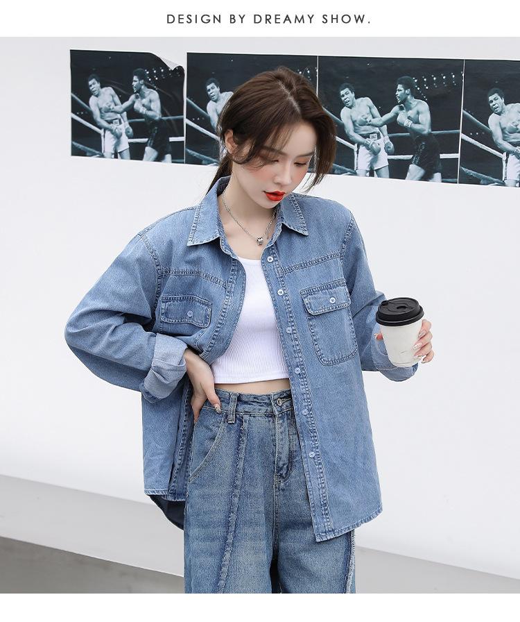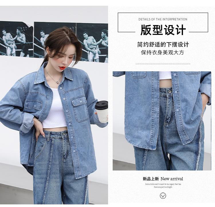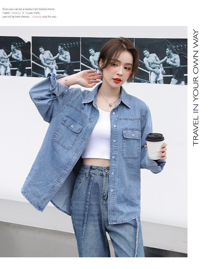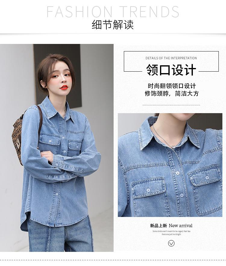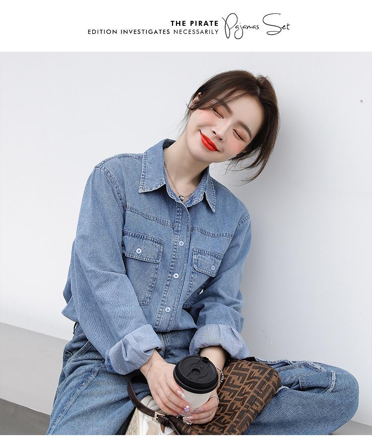 Camisa de mezclilla lavada para mujer, Nueva camisa holgada de manga larga estilo coreano de otoño, Top adelgazante