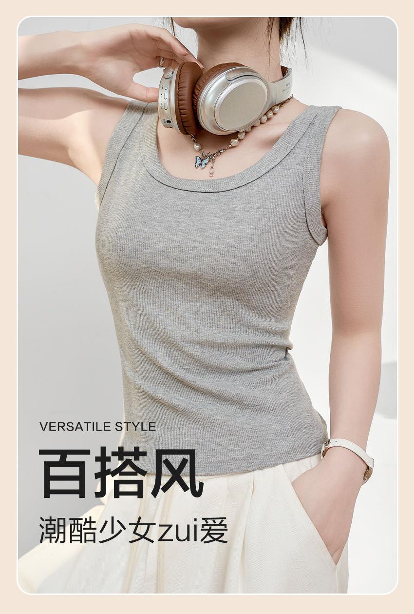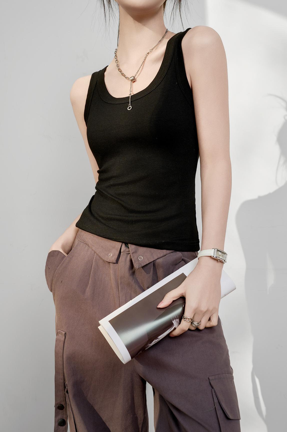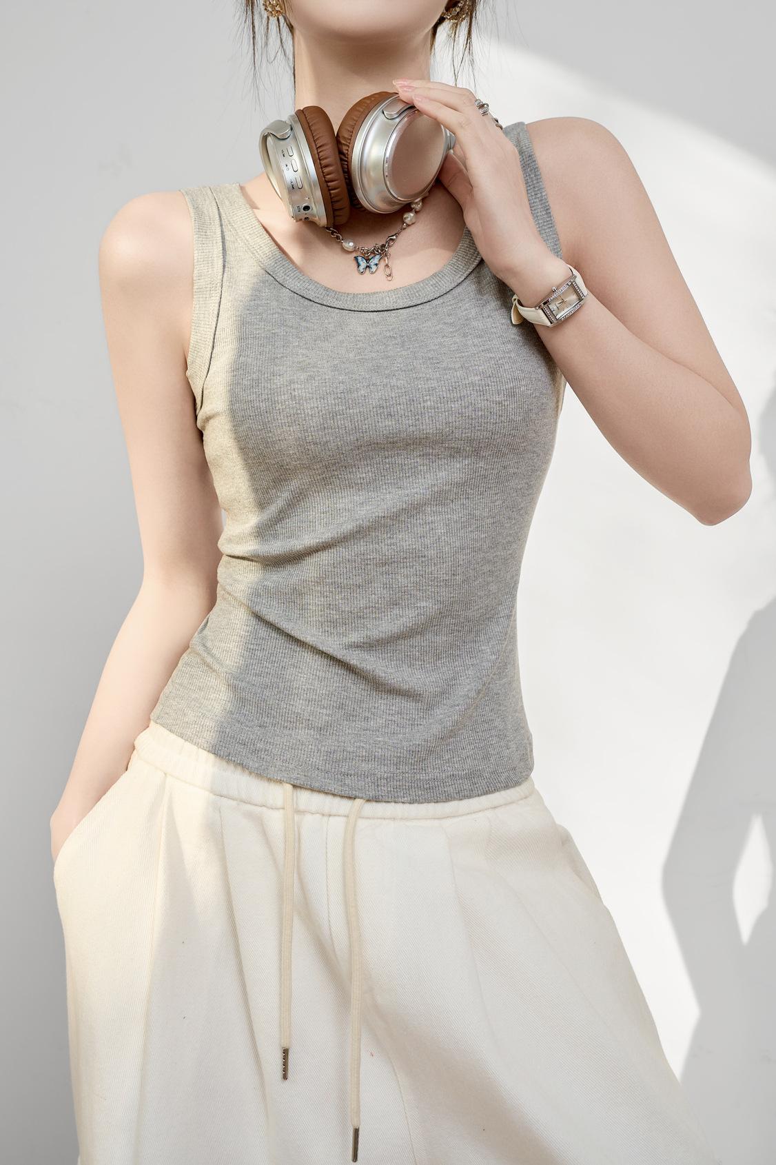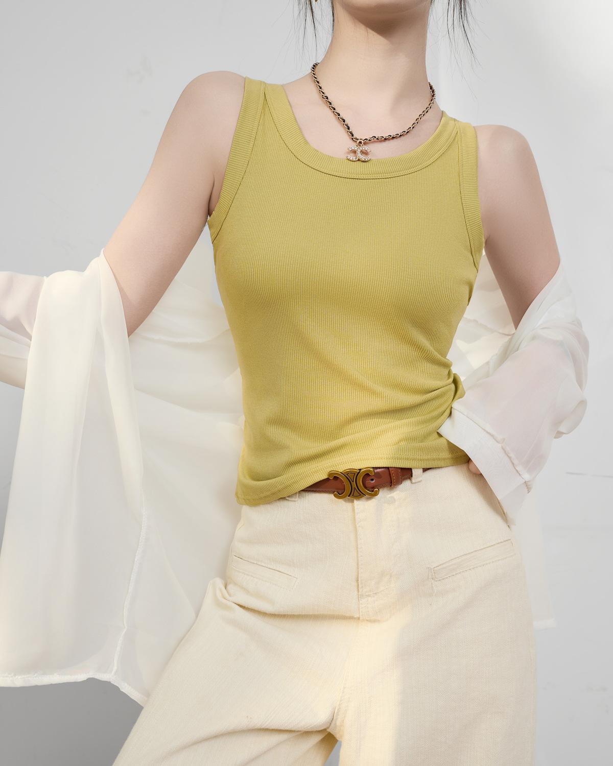 Chaleco de punto acanalado popular personalizado para mujer con camisa básica ajustada de primavera y verano y top sin mangas