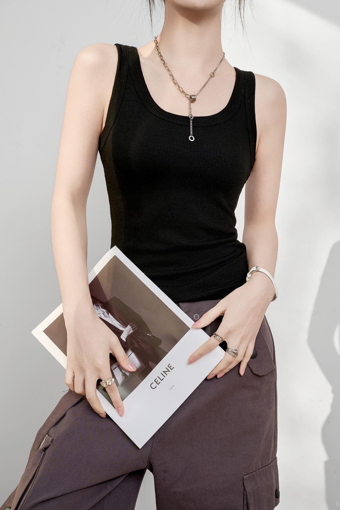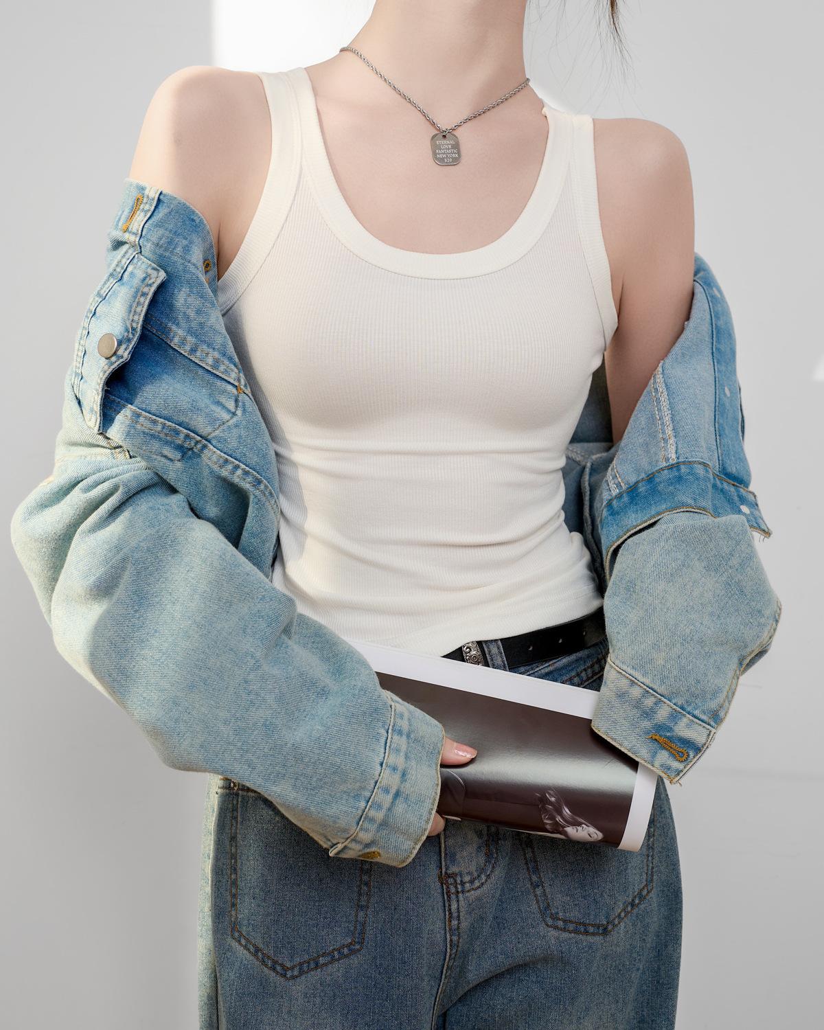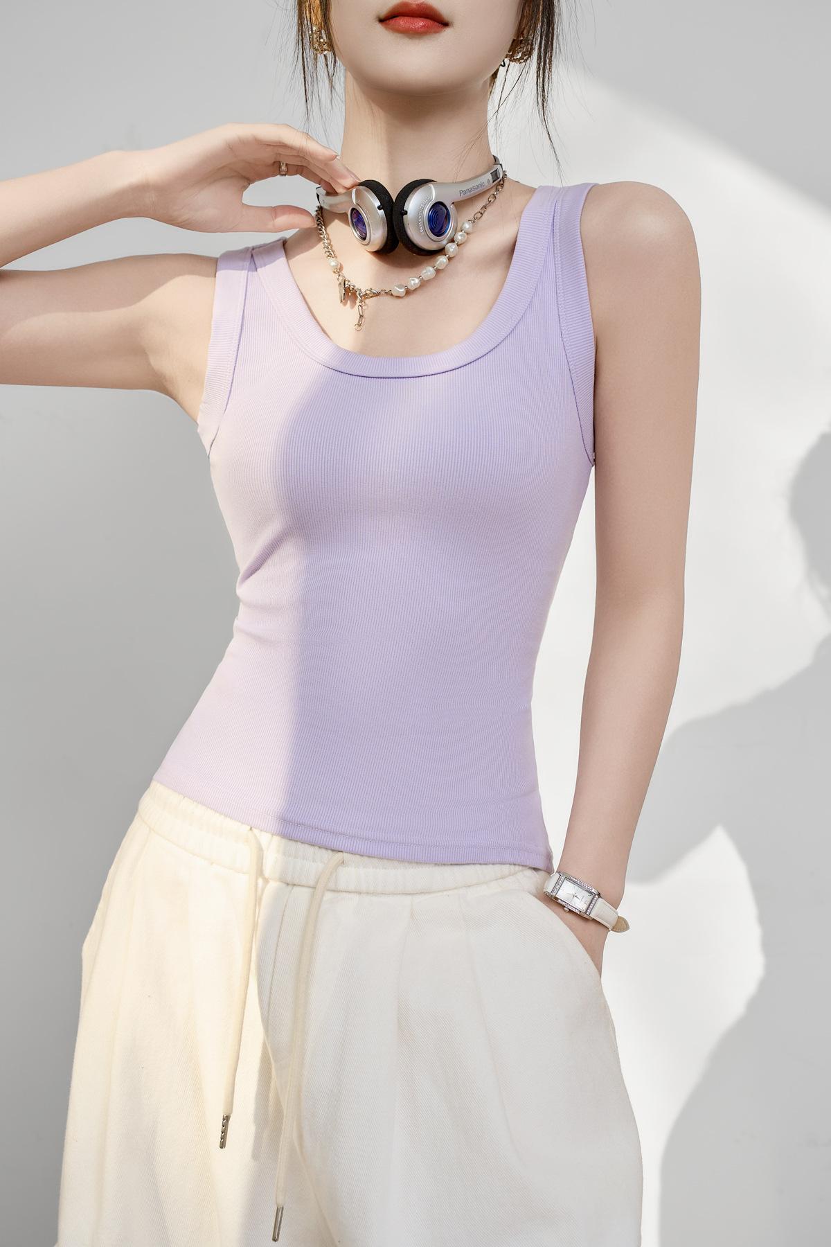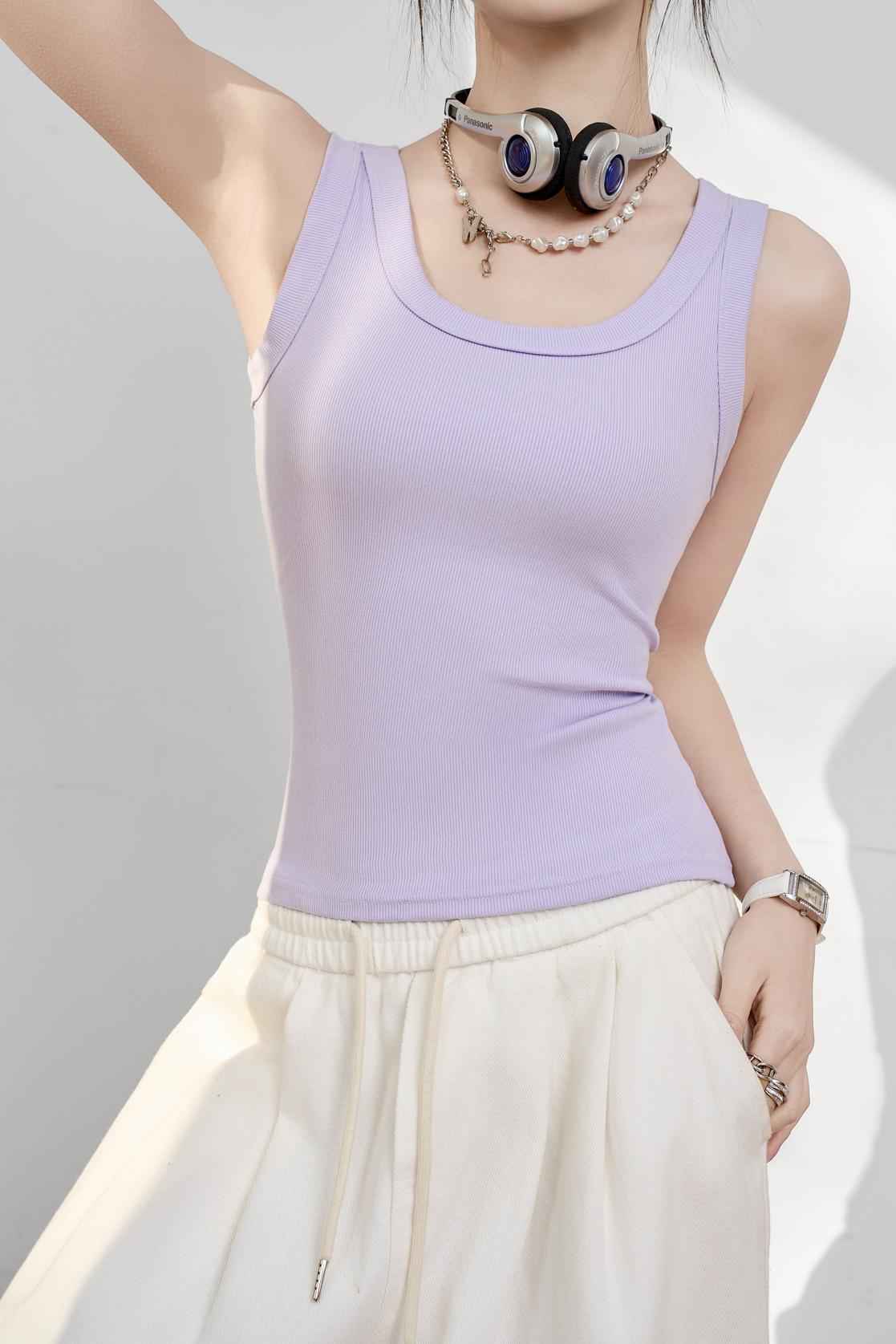 Chaleco de punto acanalado popular personalizado para mujer con camisa básica ajustada de primavera y verano y top sin mangas