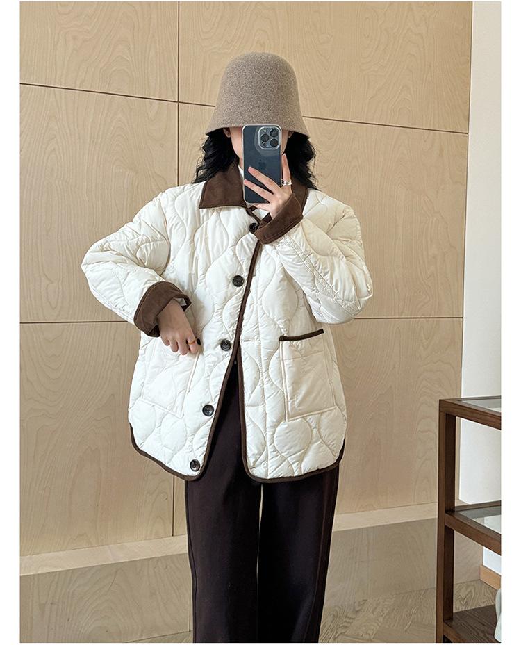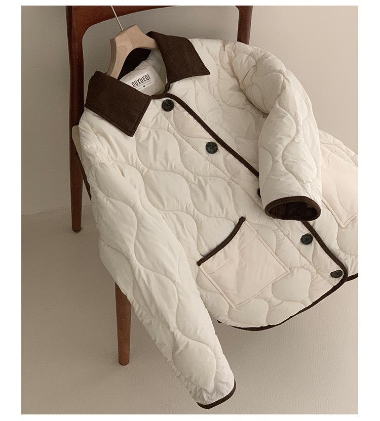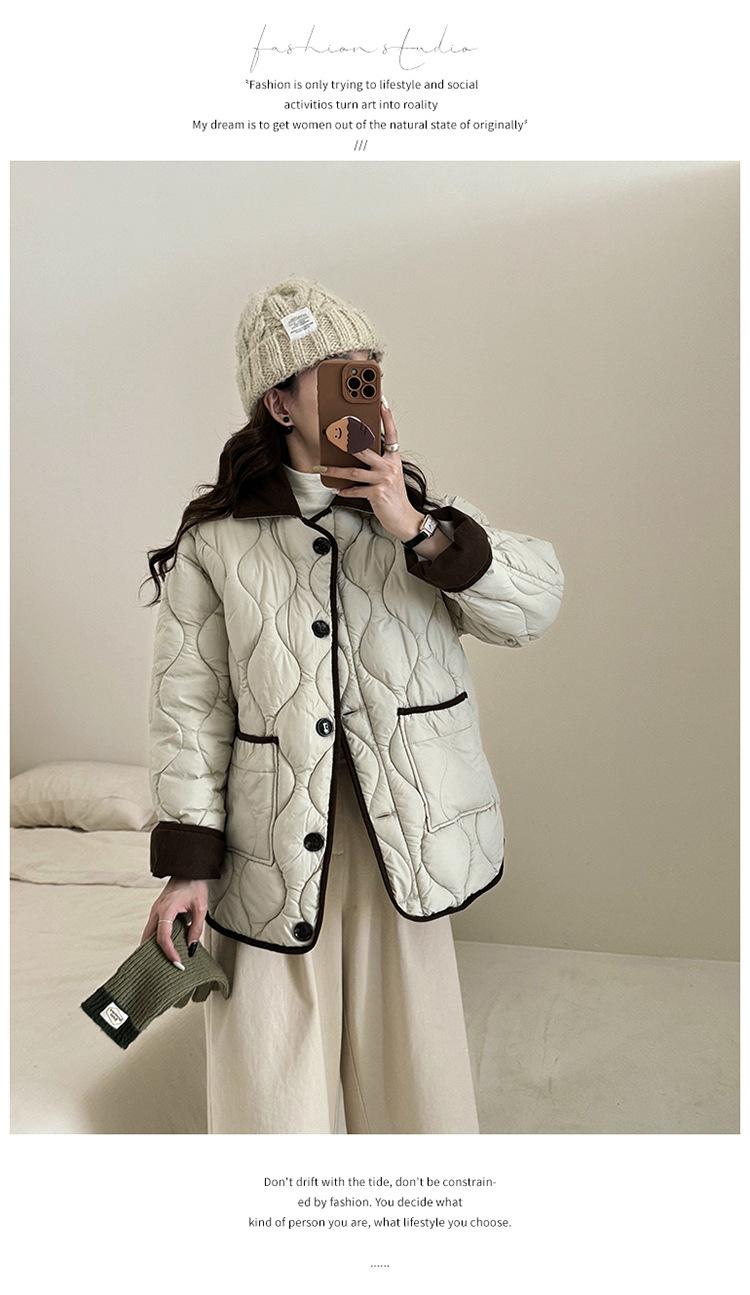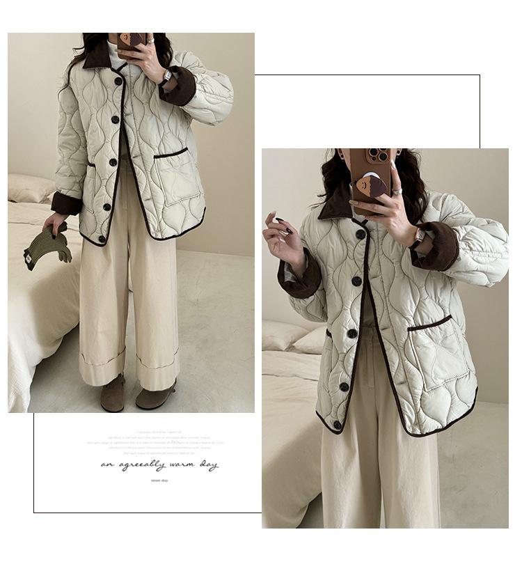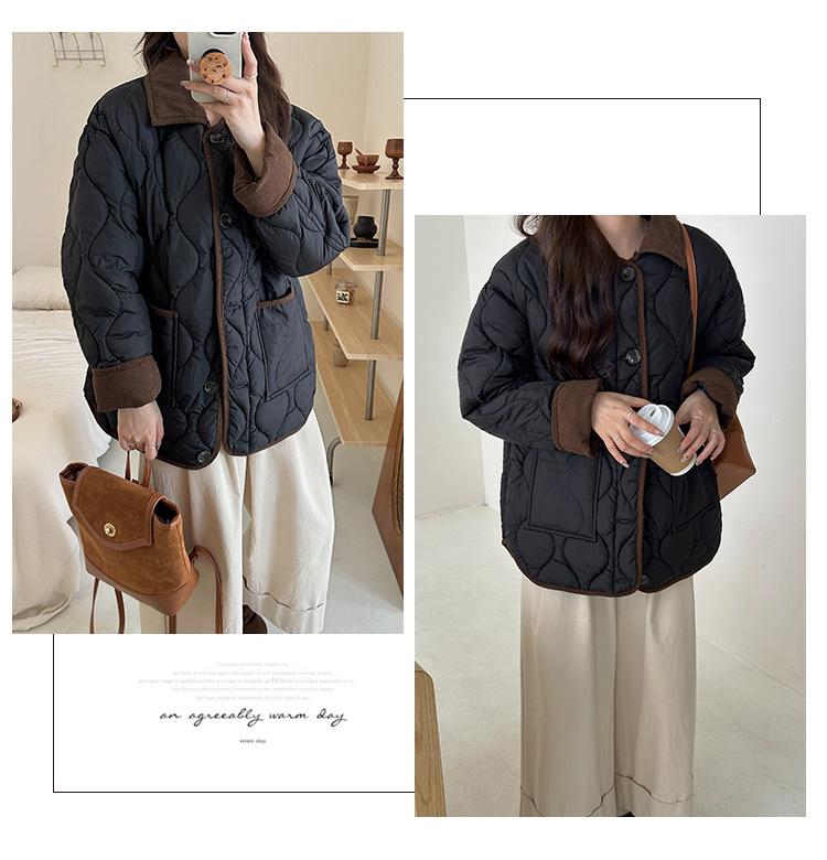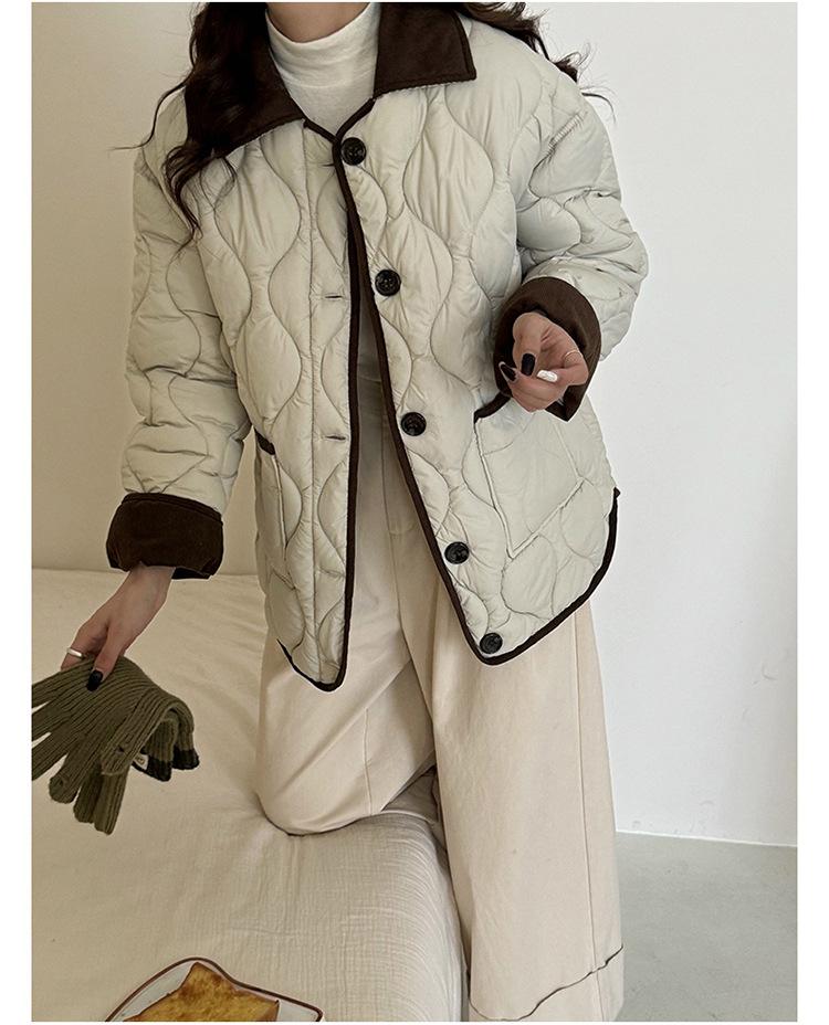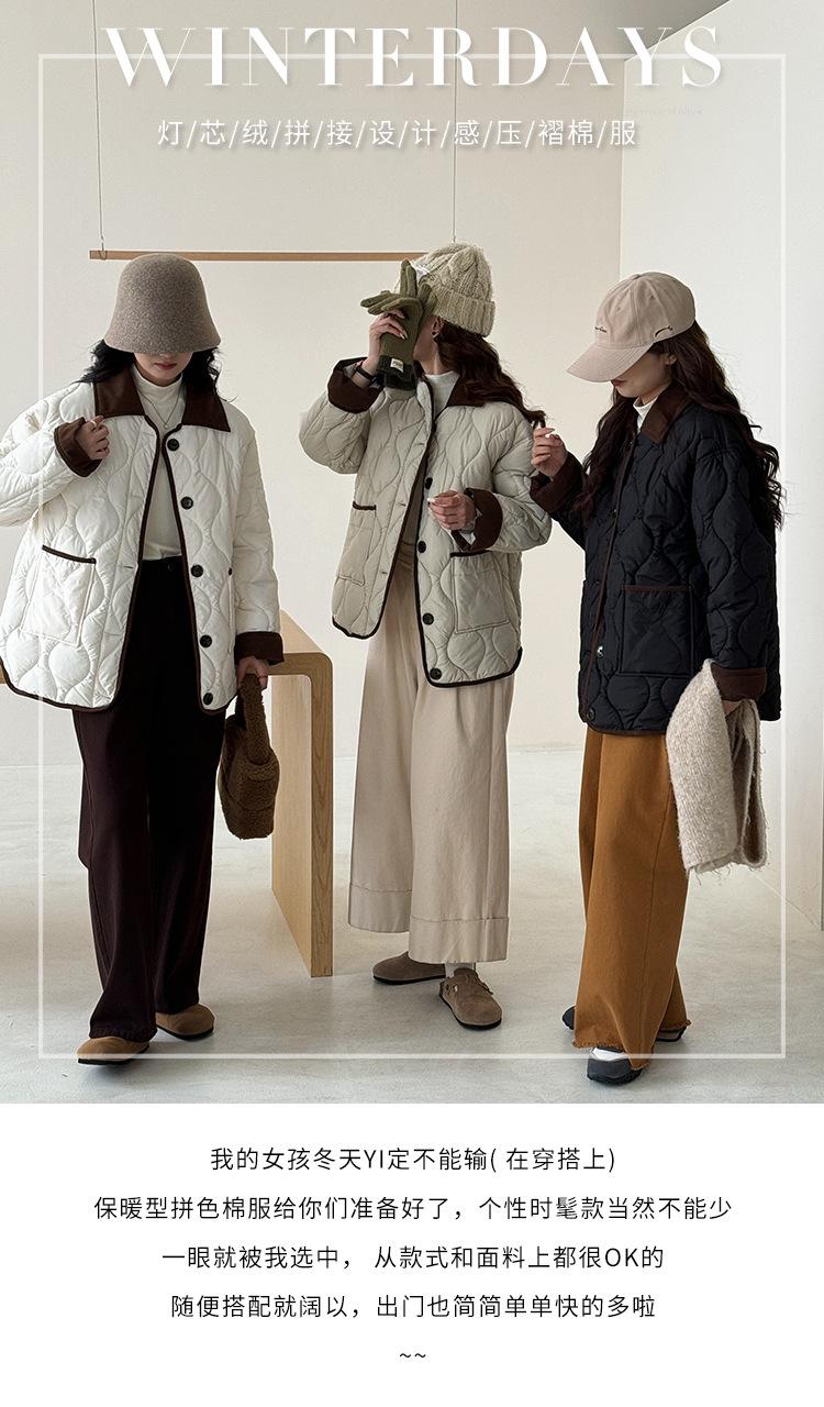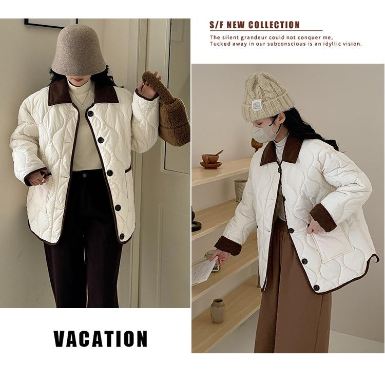 2025 Nuevo Estilo Pequeño Estilo Chanel Corto Coreano Suave Plumón Algodón Chaqueta Mujer Bloque de Color Solapa Acolchado Diamante Suelto Algodón Acolchado Chaqueta
