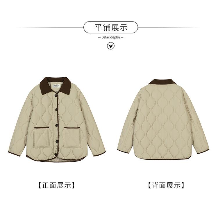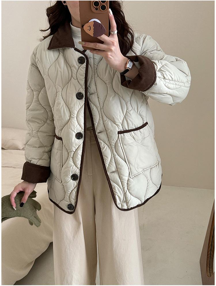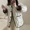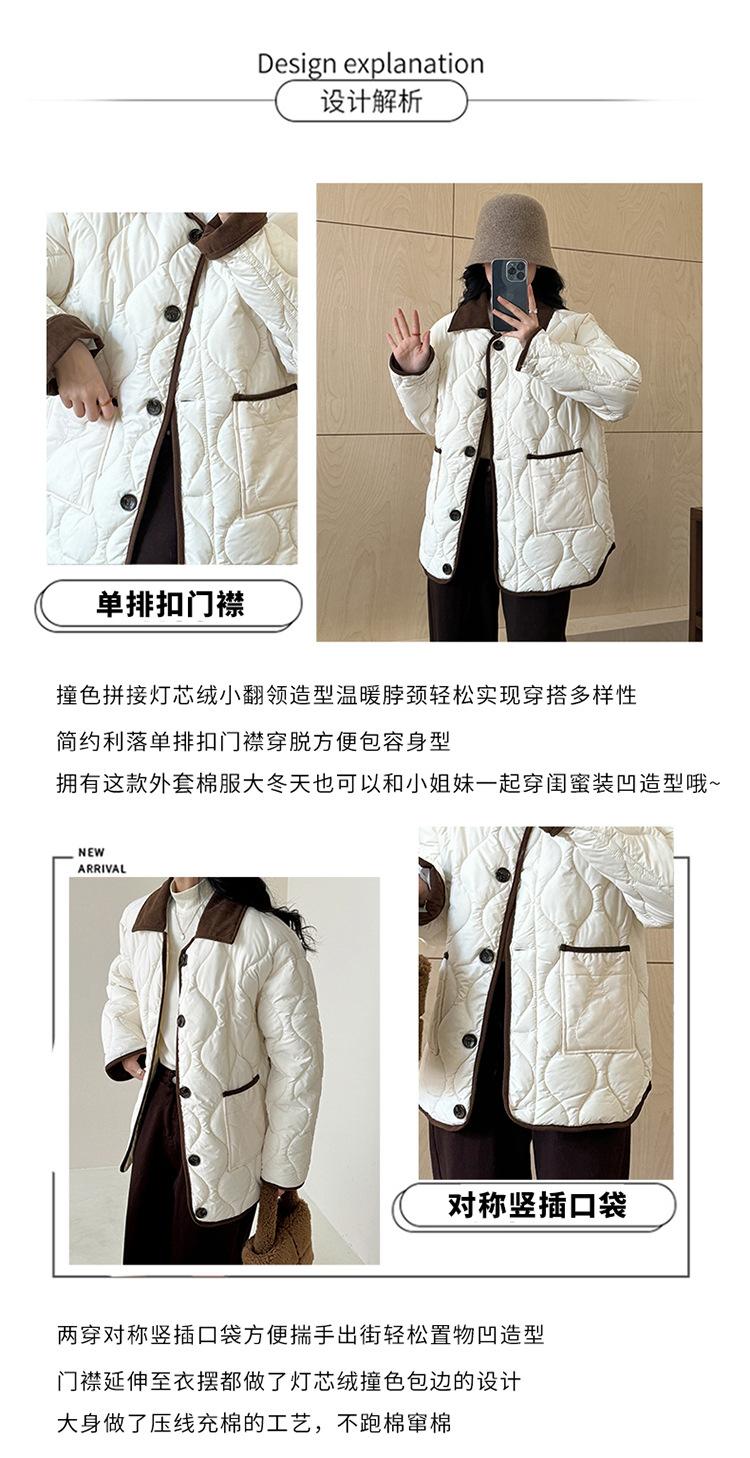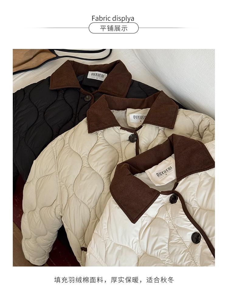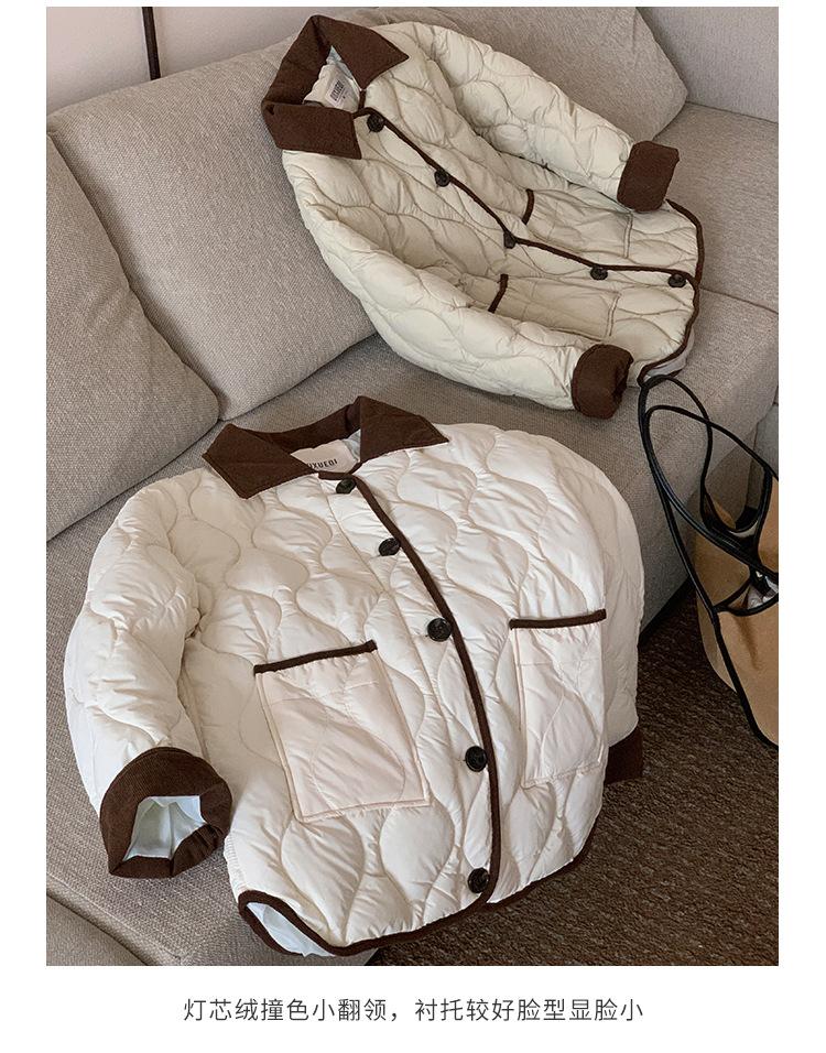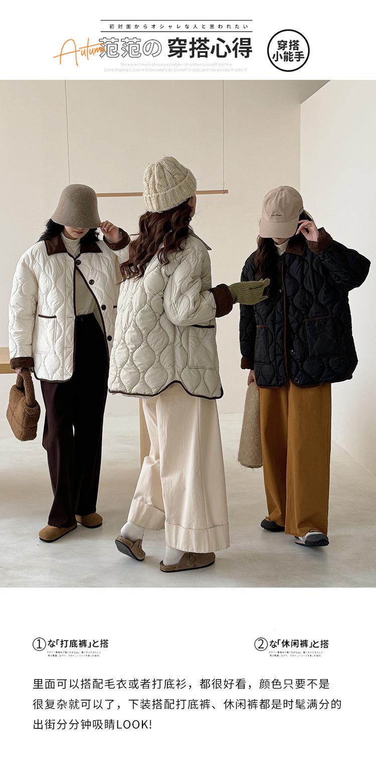 2025 Nuevo Estilo Pequeño Estilo Chanel Corto Coreano Suave Plumón Algodón Chaqueta Mujer Bloque de Color Solapa Acolchado Diamante Suelto Algodón Acolchado Chaqueta