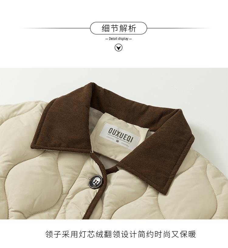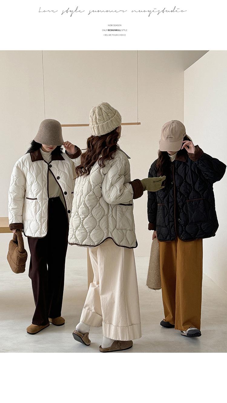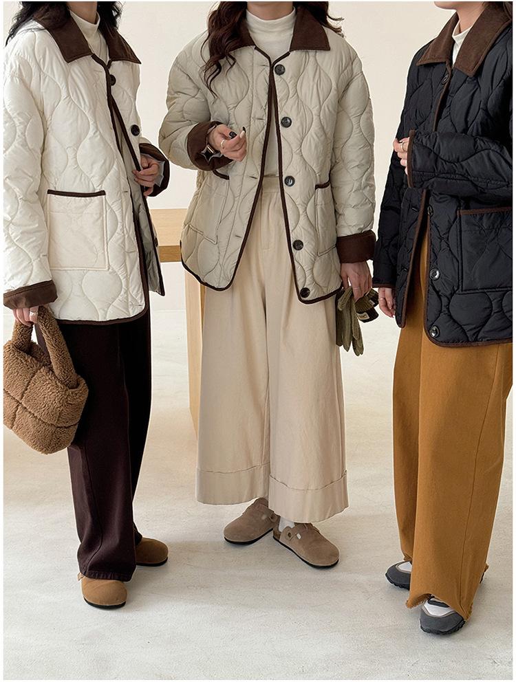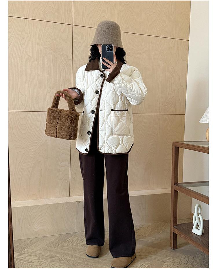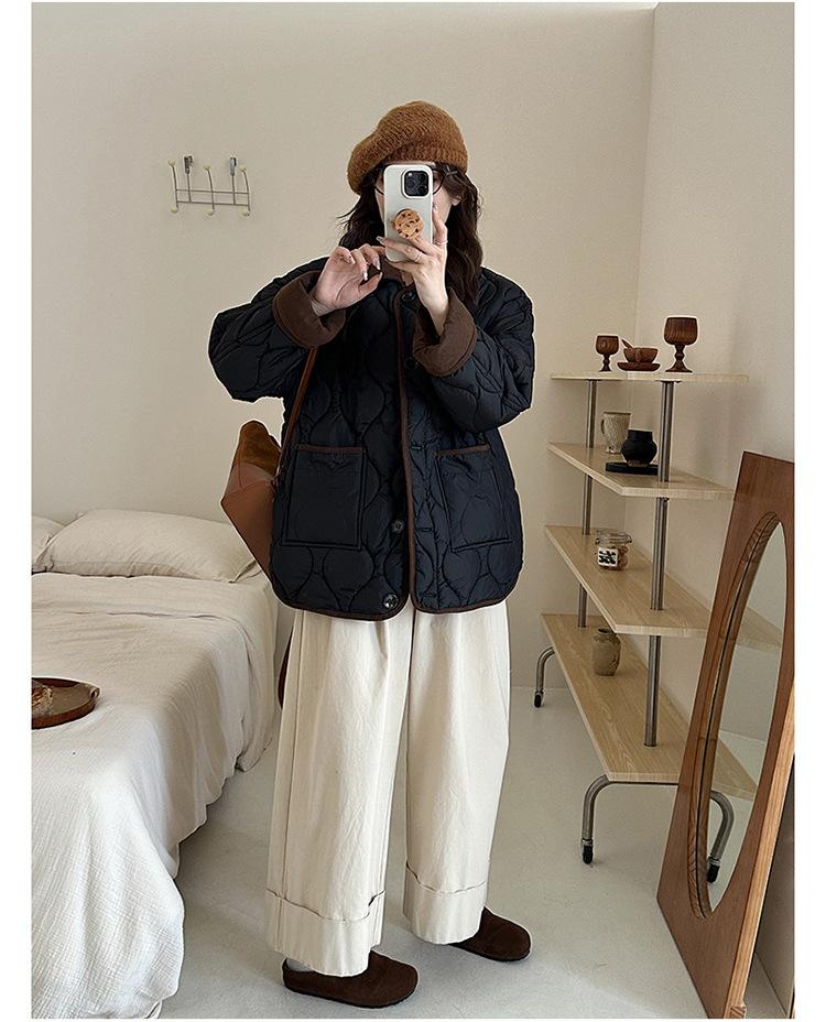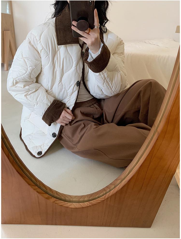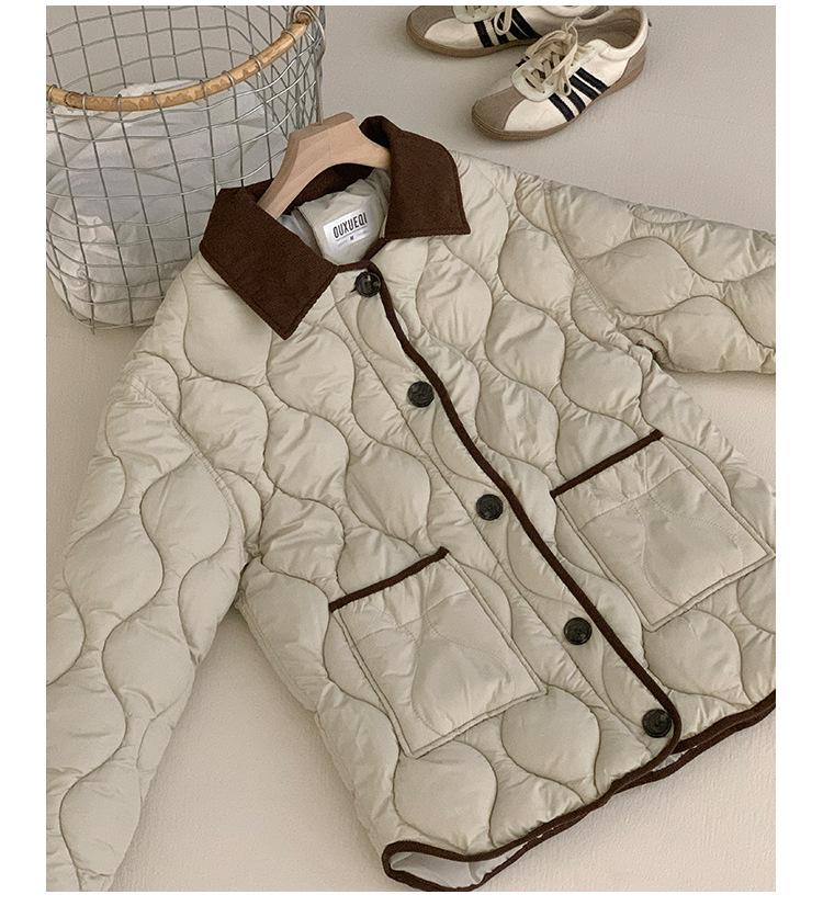 2025 Nuevo Estilo Pequeño Estilo Chanel Corto Coreano Suave Plumón Algodón Chaqueta Mujer Bloque de Color Solapa Acolchado Diamante Suelto Algodón Acolchado Chaqueta