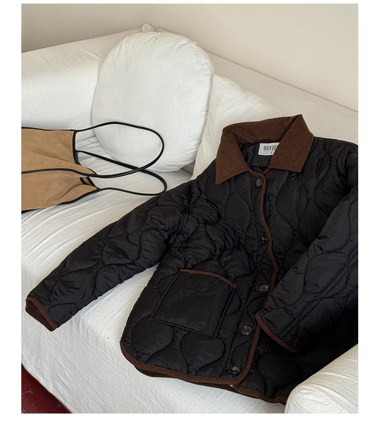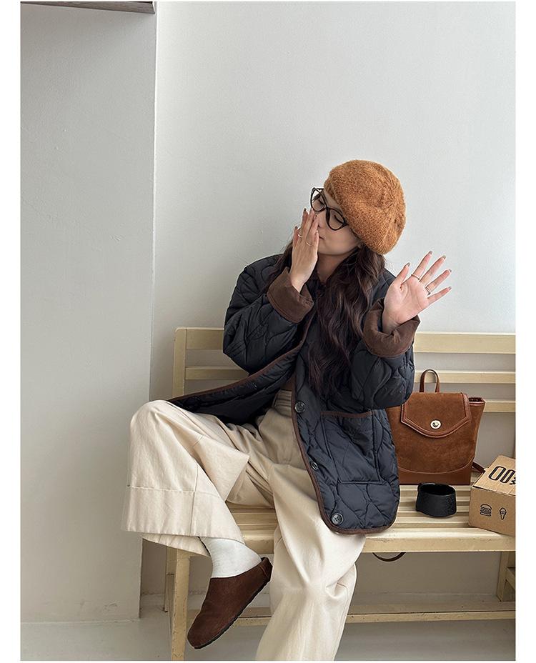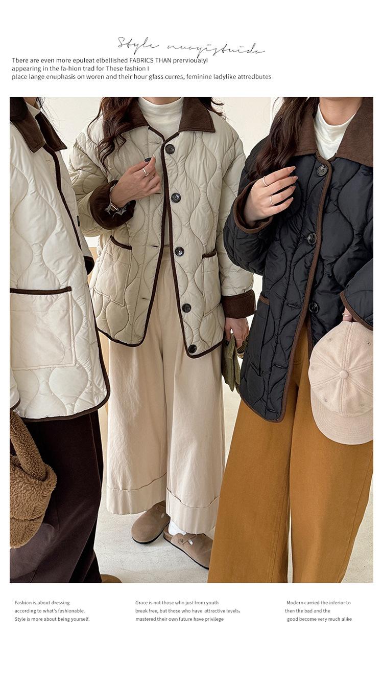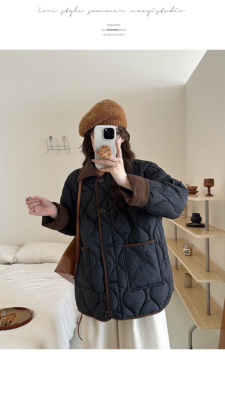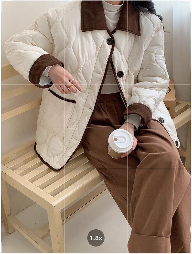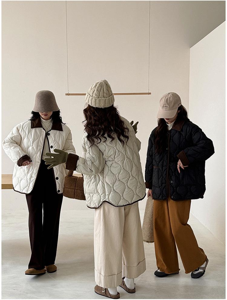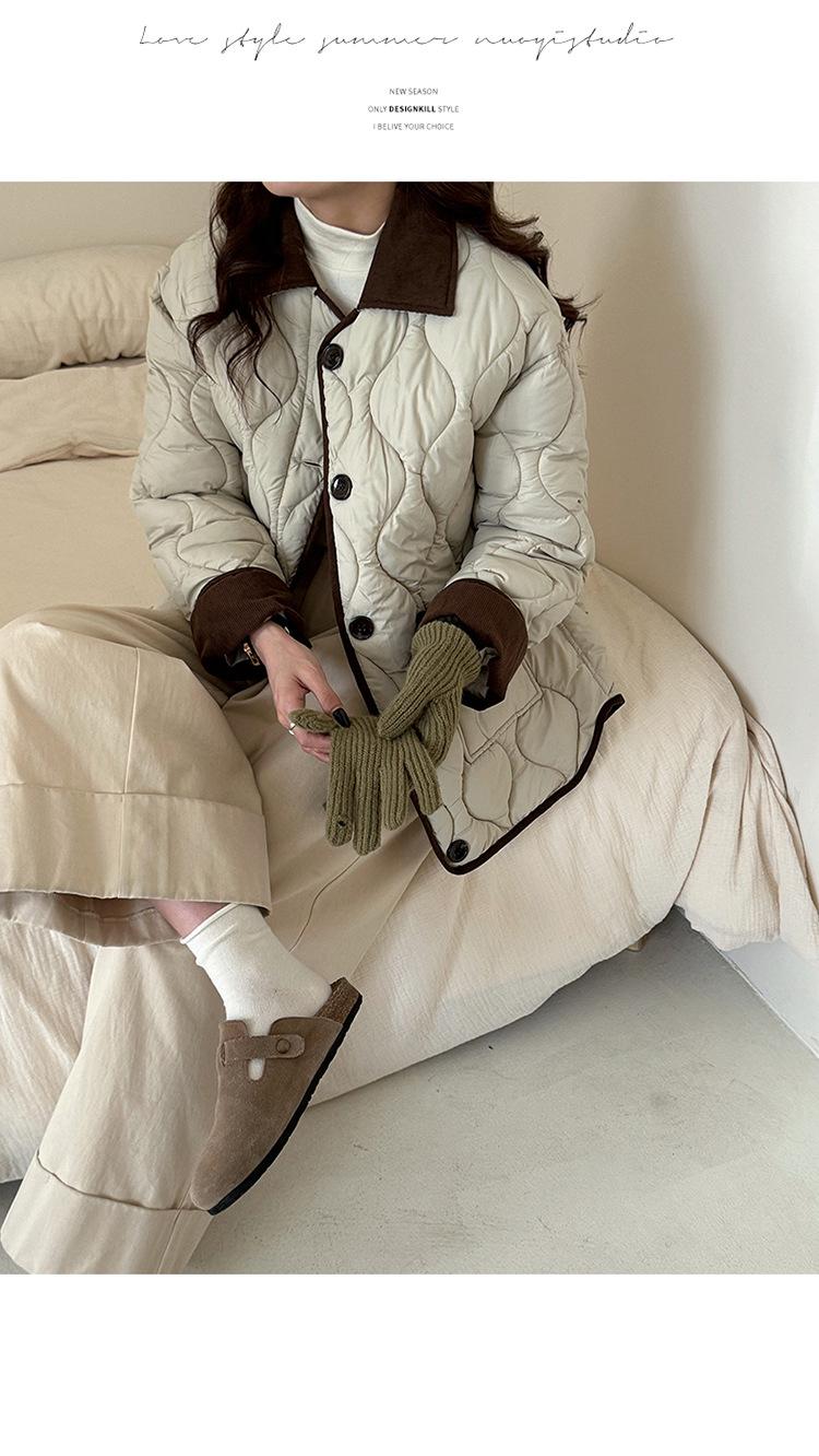 2025 Nuevo Estilo Pequeño Estilo Chanel Corto Coreano Suave Plumón Algodón Chaqueta Mujer Bloque de Color Solapa Acolchado Diamante Suelto Algodón Acolchado Chaqueta