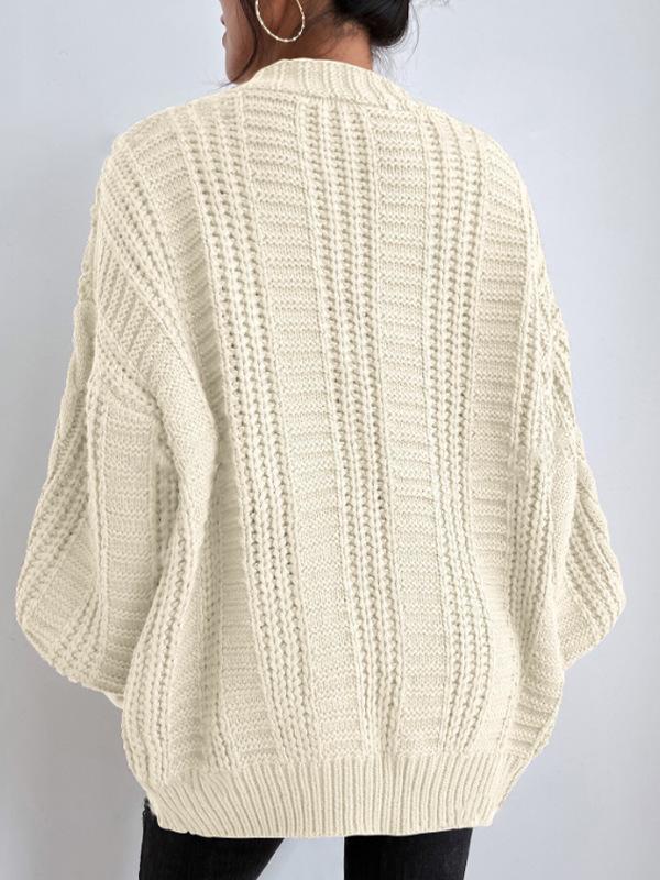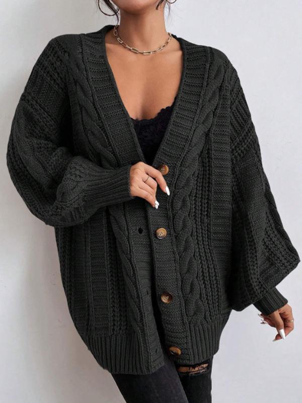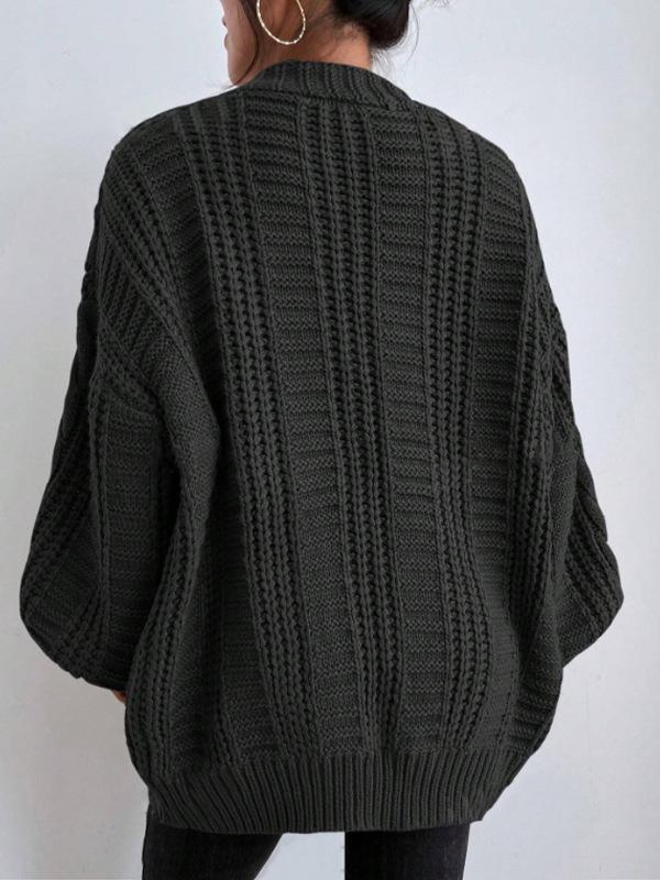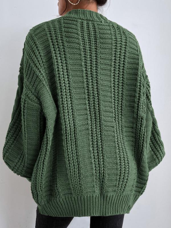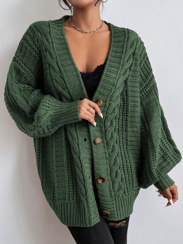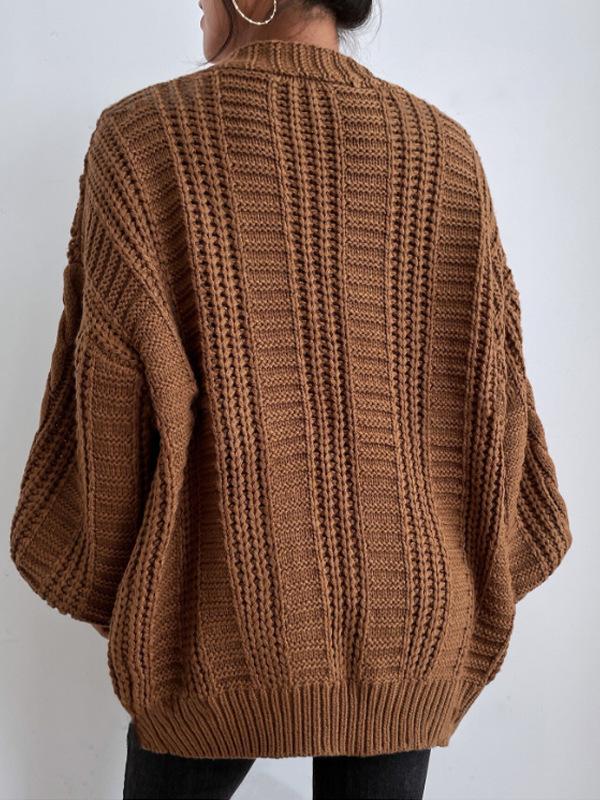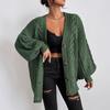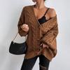 Suéter de punto trenzado de manga farol de estilo vintage europeo y americano para mujer, de punto de cable suelto, con cuello en V, para comercio exterior transfronterizo