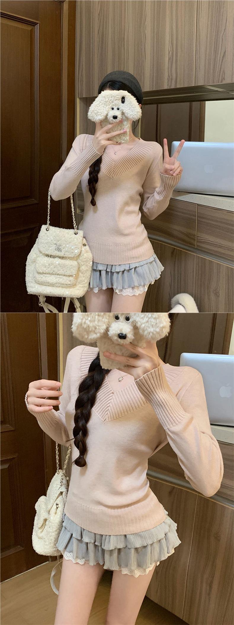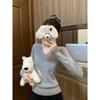 Estilo perezoso simple versátil nuevo sentido suéter de punto mujer otoño e invierno usar ajuste ceñido adelgazante reducción de cintura edad top marea