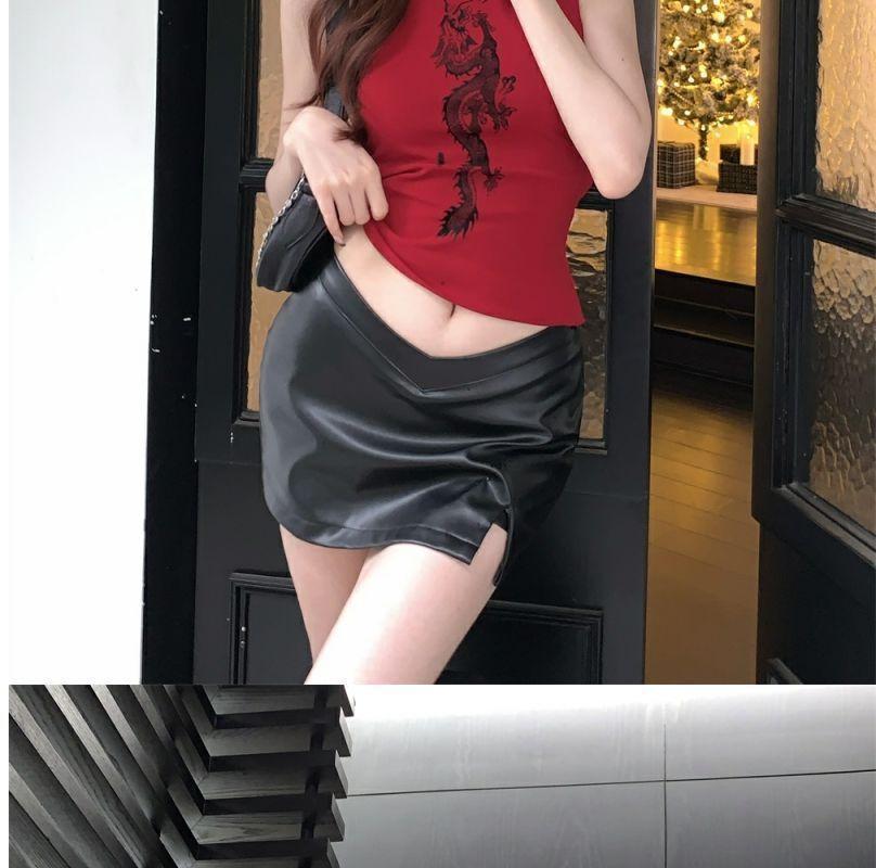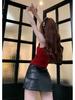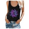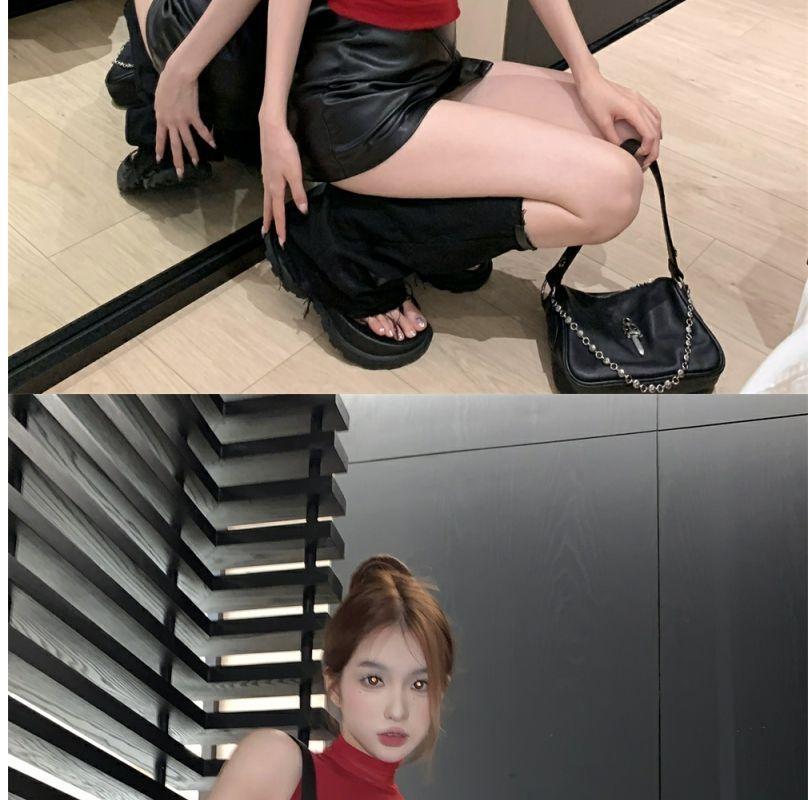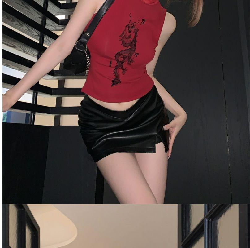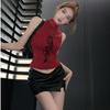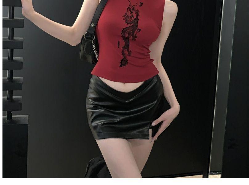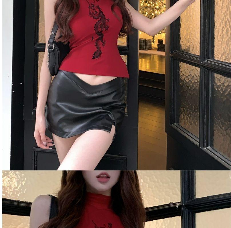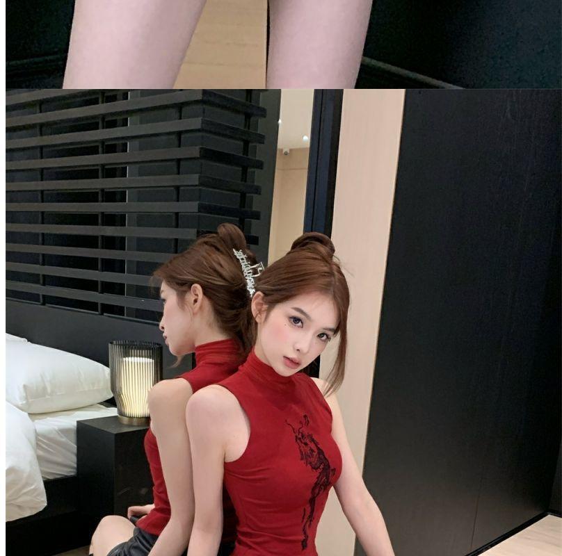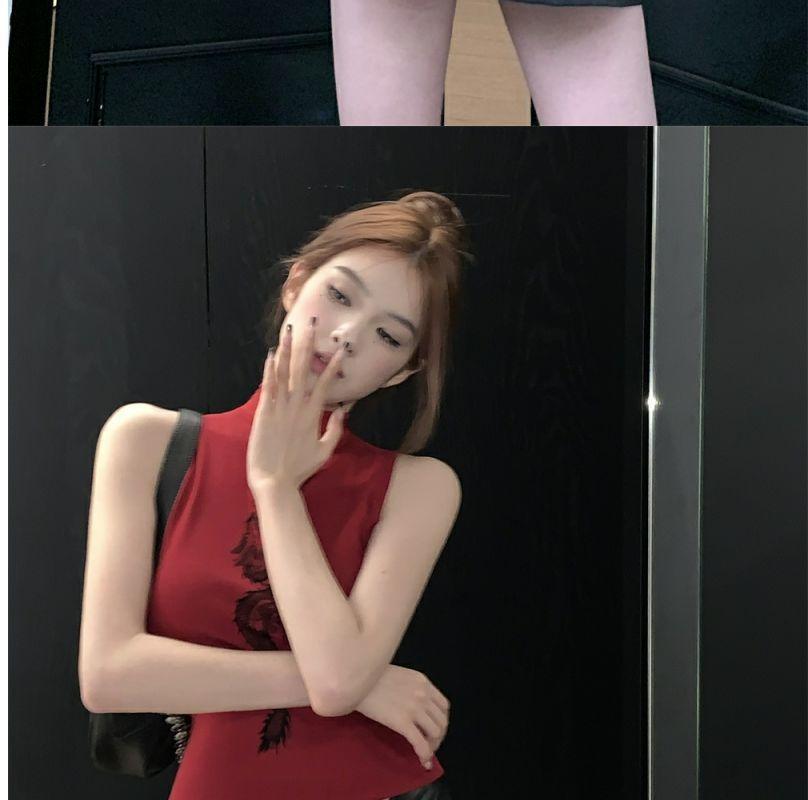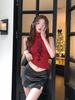 Playera Roja Estampada Sin Mangas de Cuello Alto para Mujer, Estilo Retro de Verano, Top de Capa Base de Corte Ajustado
