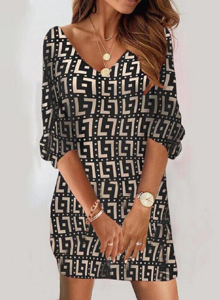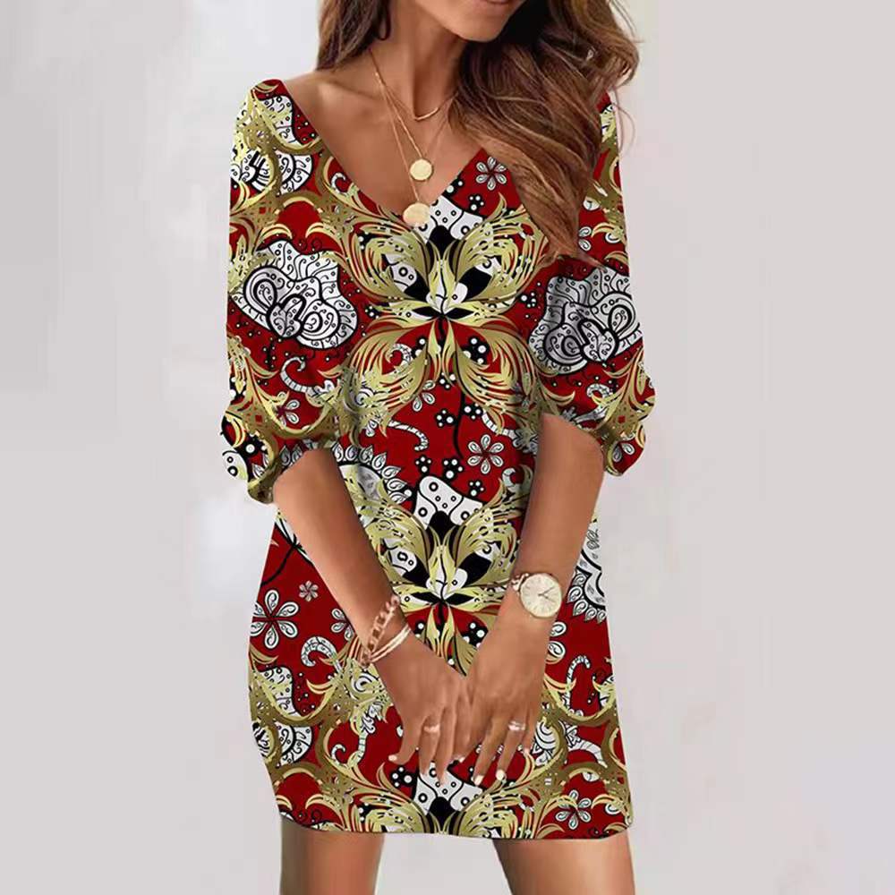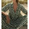 2022 Europa y Estados Unidos transfronterizo primavera nueva moda casual holgado cuello en V manga estampada manga corta manga larga vestido