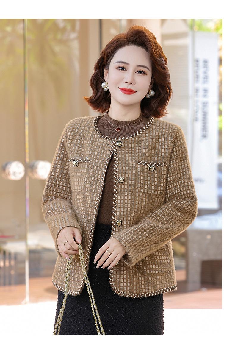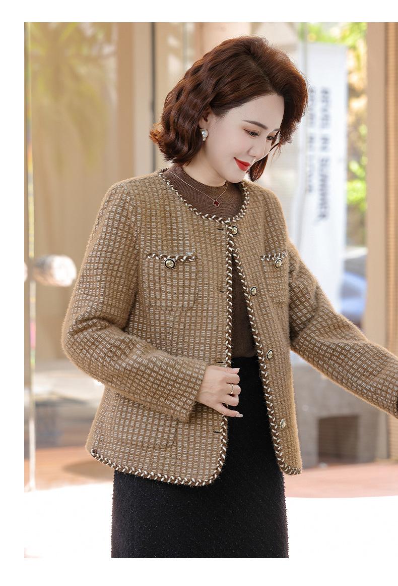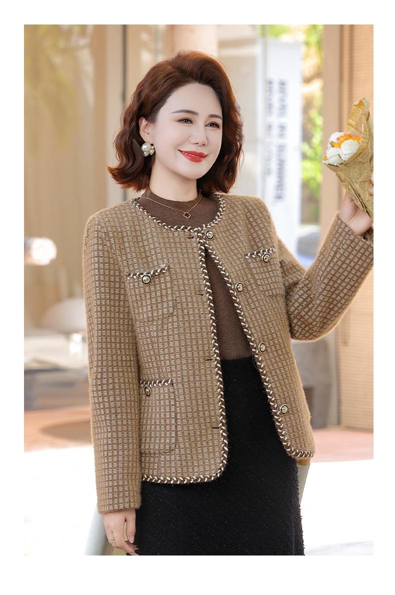 Moda Otoñal para Mamá 2025 Estilo Pequeño Fragante Chaqueta Corta Moda Otoño Primavera Estilo Extranjero Top Chaqueta Cárdigan Petite