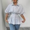 Primavera y Otoño 2025 Transfronterizo Europeo y Americano Amazon Nueva Moda Casual Versátil Cuello en V Rayado Manga Larga Camisa Top