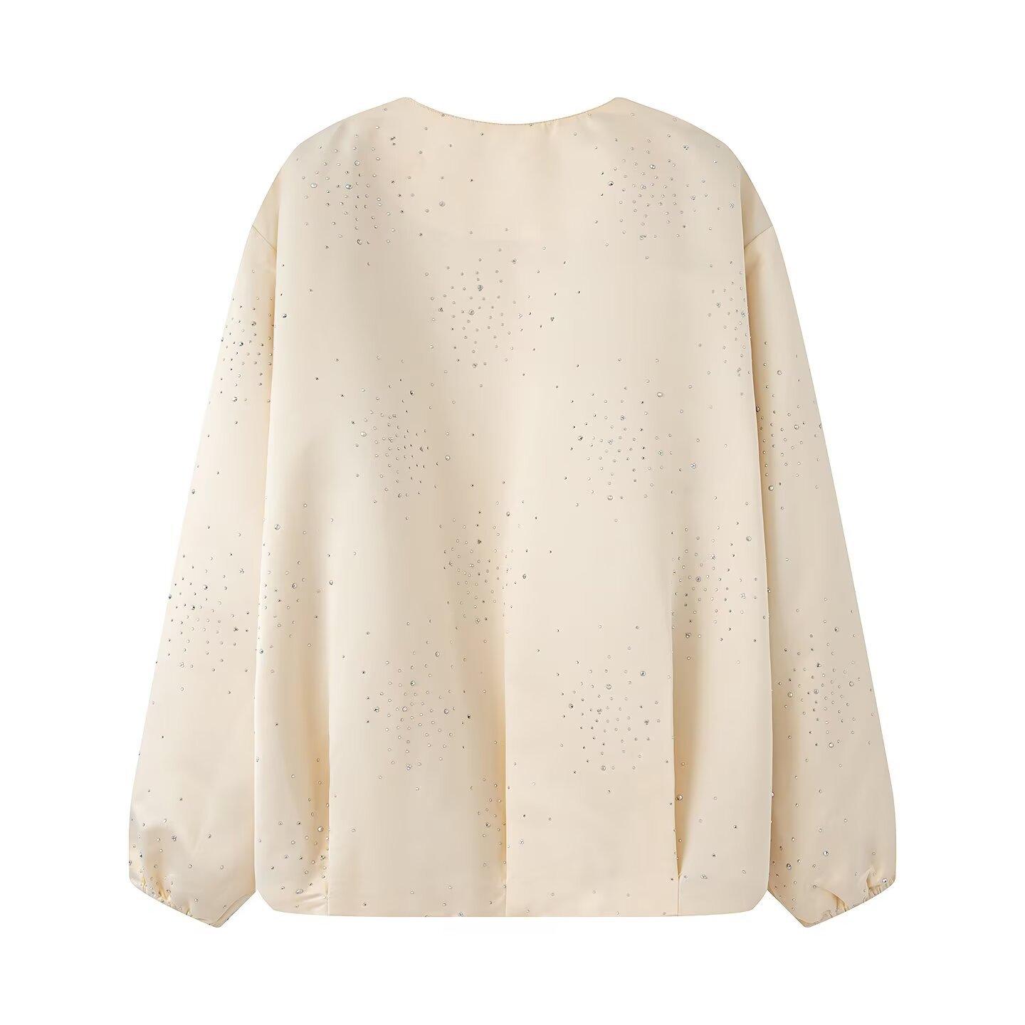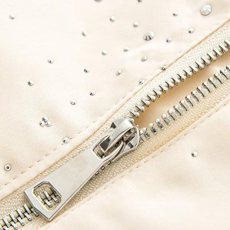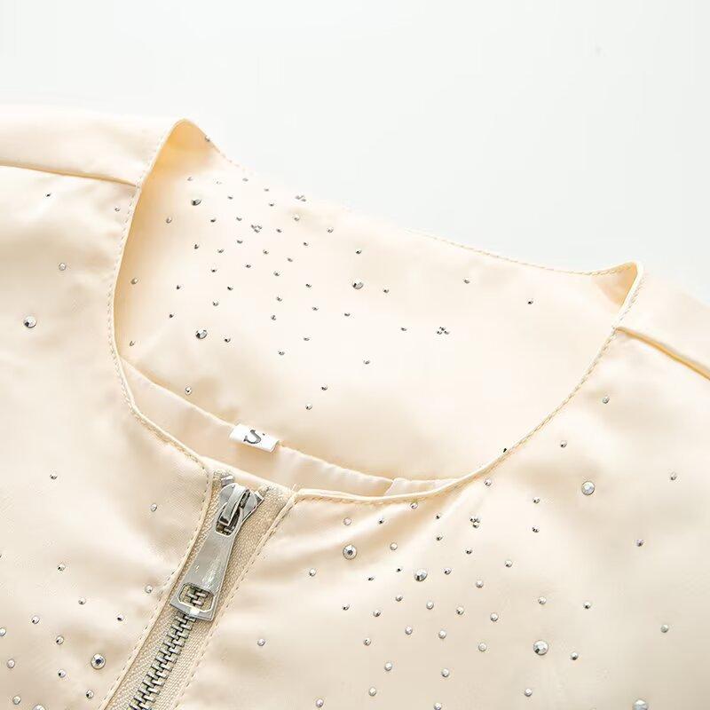 Ropa de mujer de comercio exterior transfronterizo 2025 otoño estilo europeo y americano chaqueta con decoración de pedrería abrigo uniforme de béisbol mujer F825135F