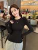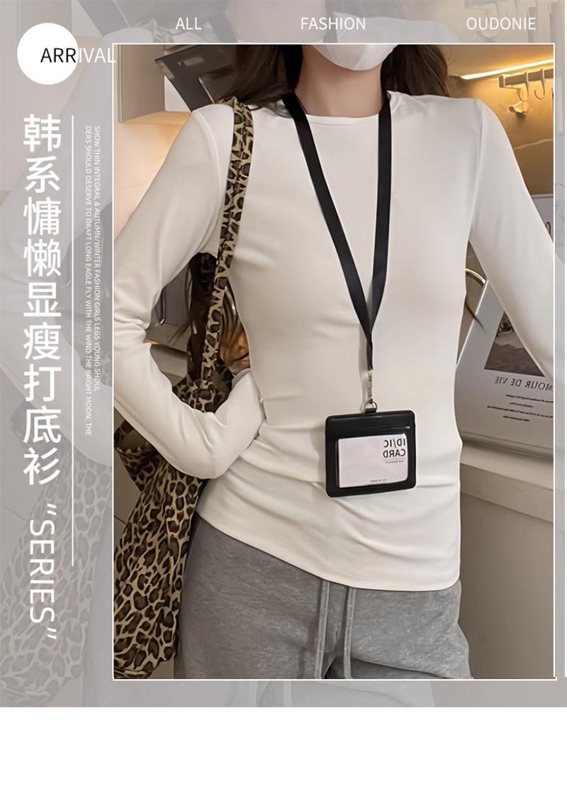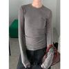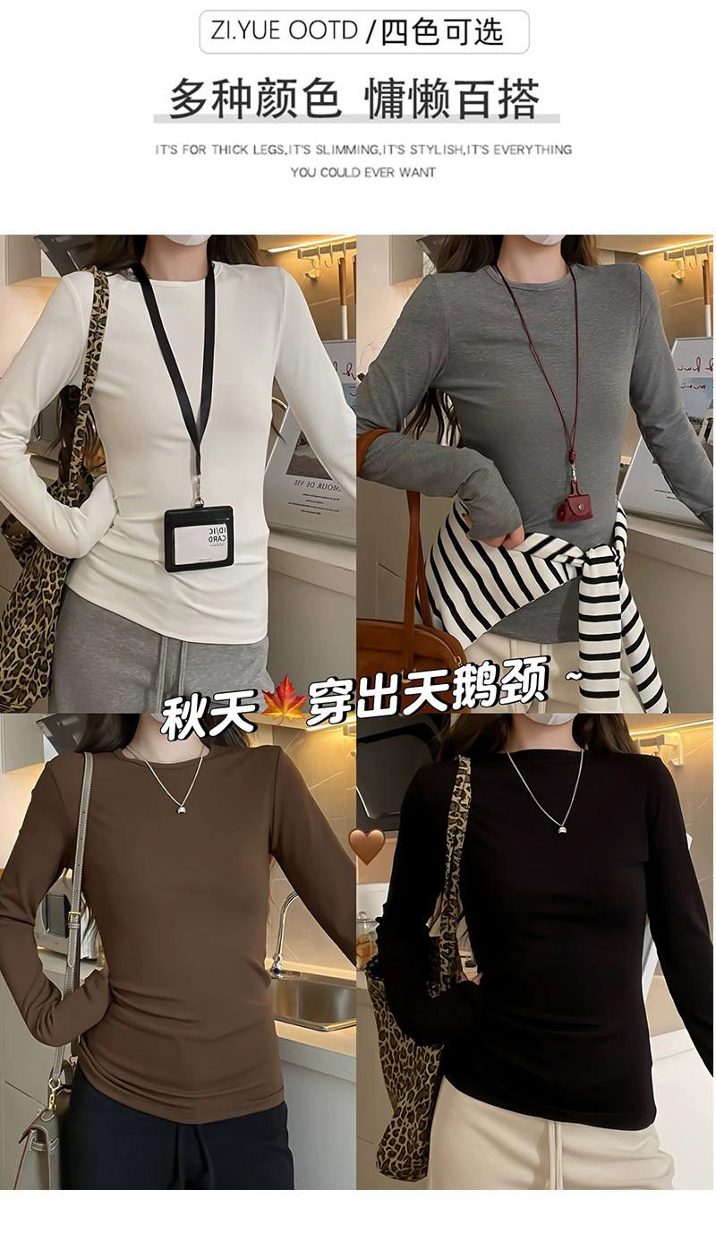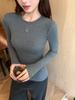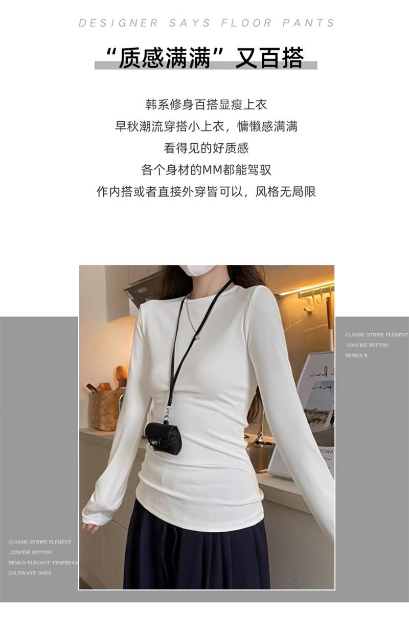 Camiseta básica blanca de manga larga y cuello redondo para mujer otoño 2025 nueva, corte ajustado simple, prenda exterior versátil, camiseta top