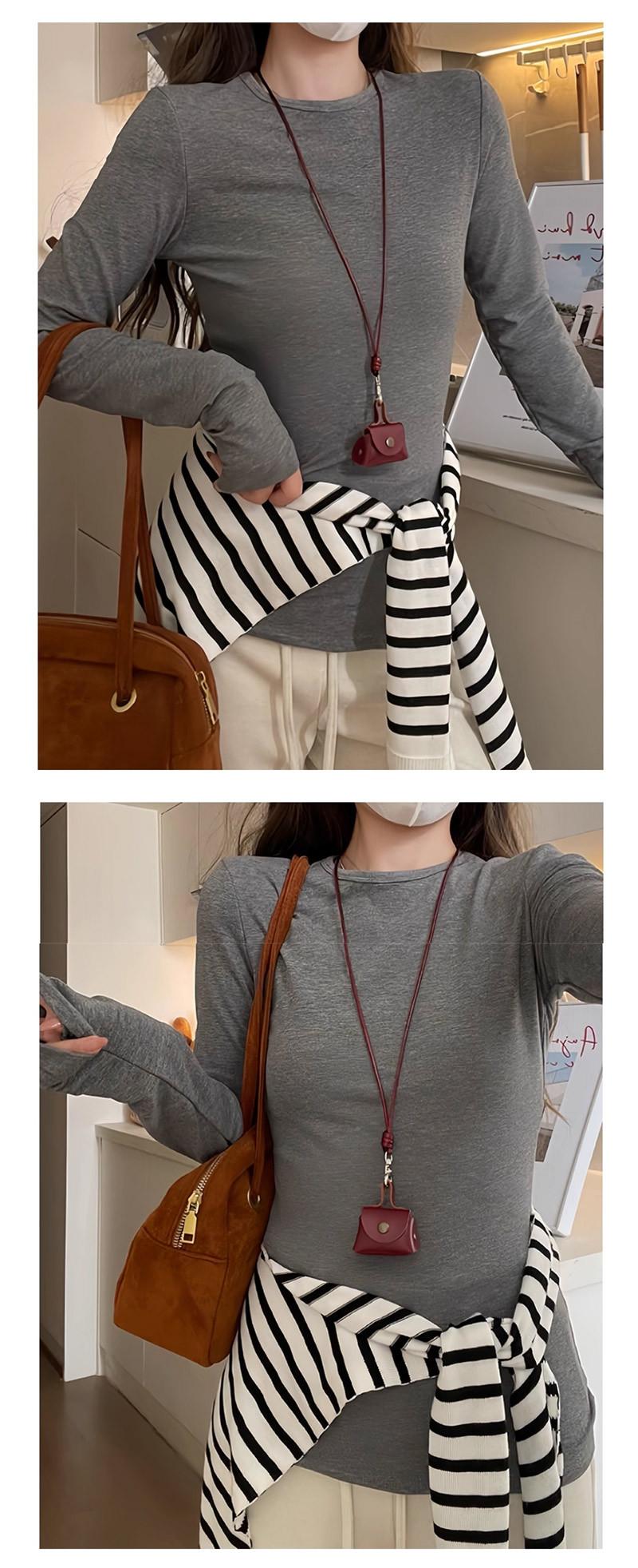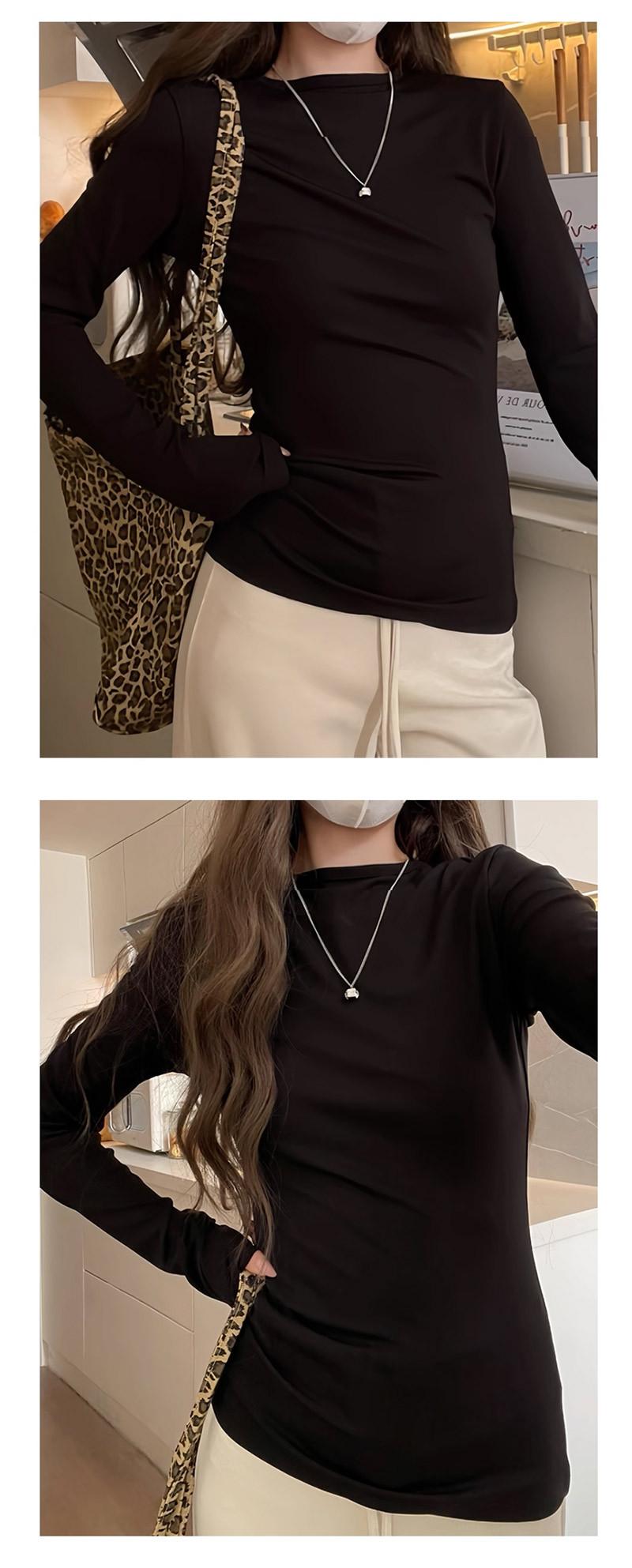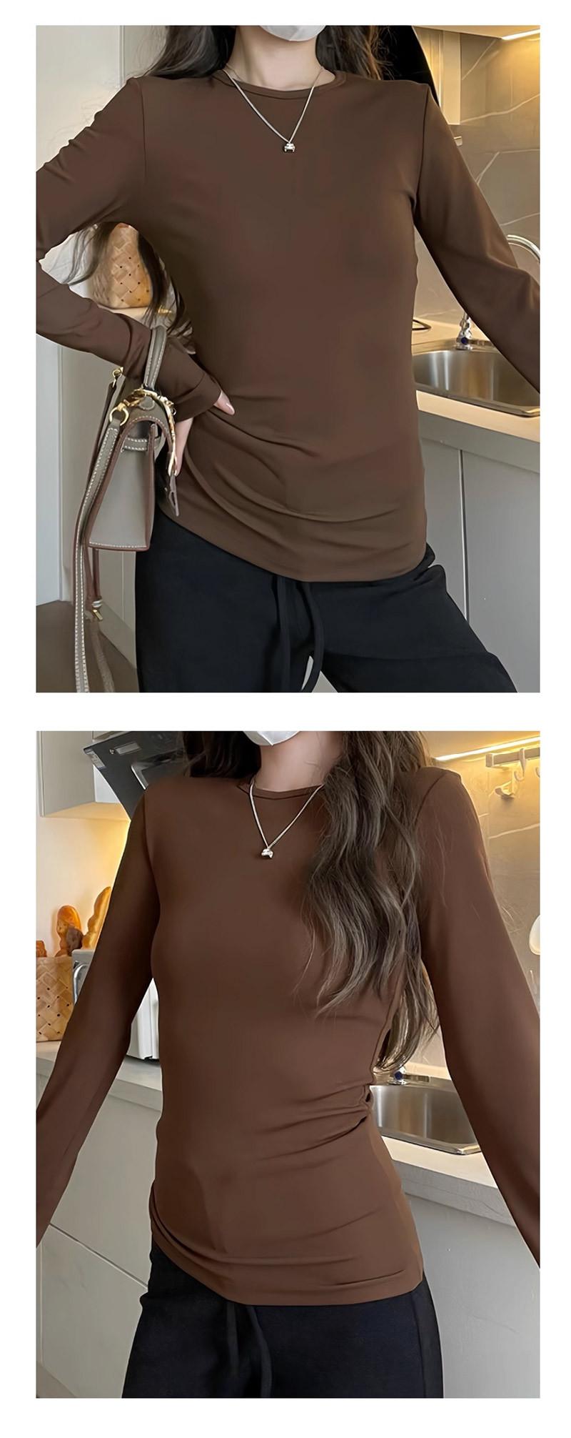 Camiseta básica blanca de manga larga y cuello redondo para mujer otoño 2025 nueva, corte ajustado simple, prenda exterior versátil, camiseta top