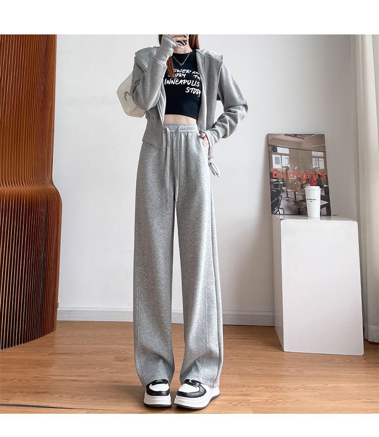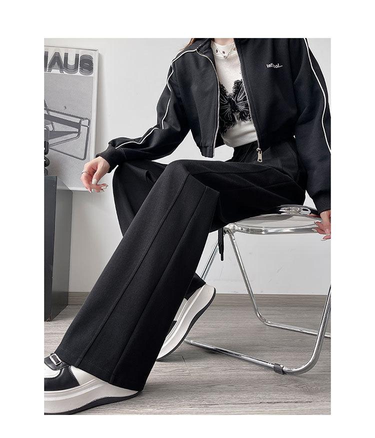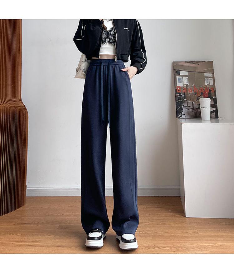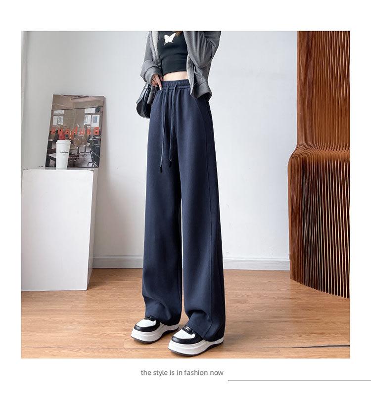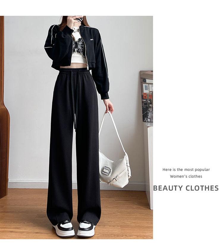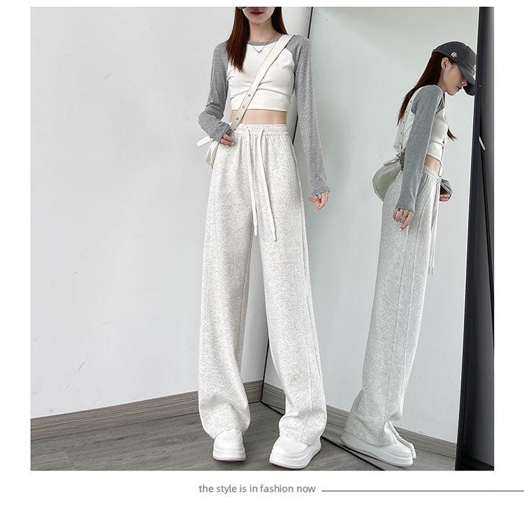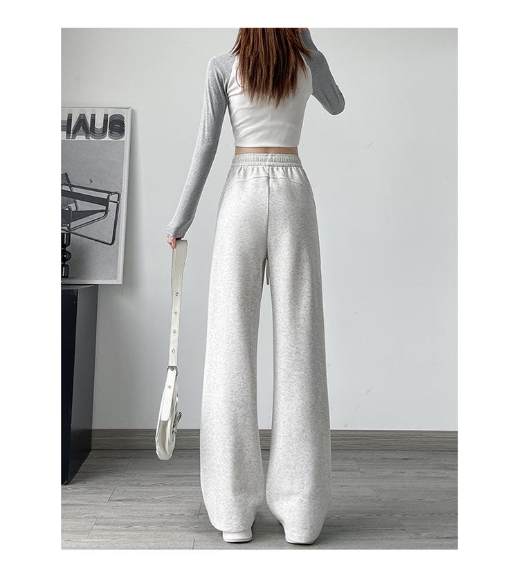 Pantalones de pierna ancha mujer 2025 nuevo otoño sueltos de pierna recta pantalones deportivos blancos petite versión estrecha plátano pantalones deportivos pantalones largos