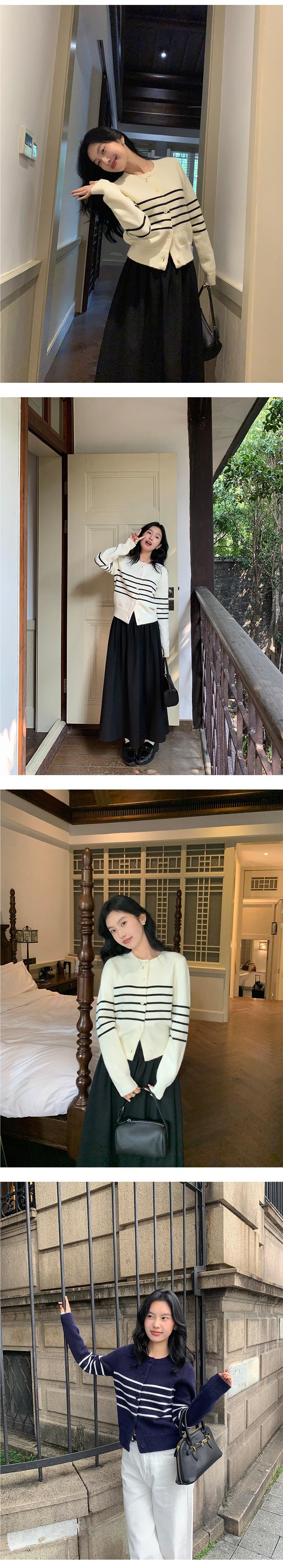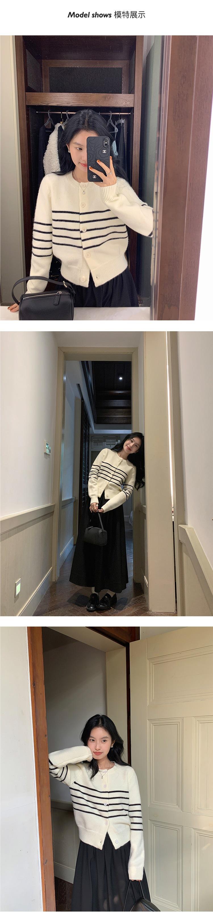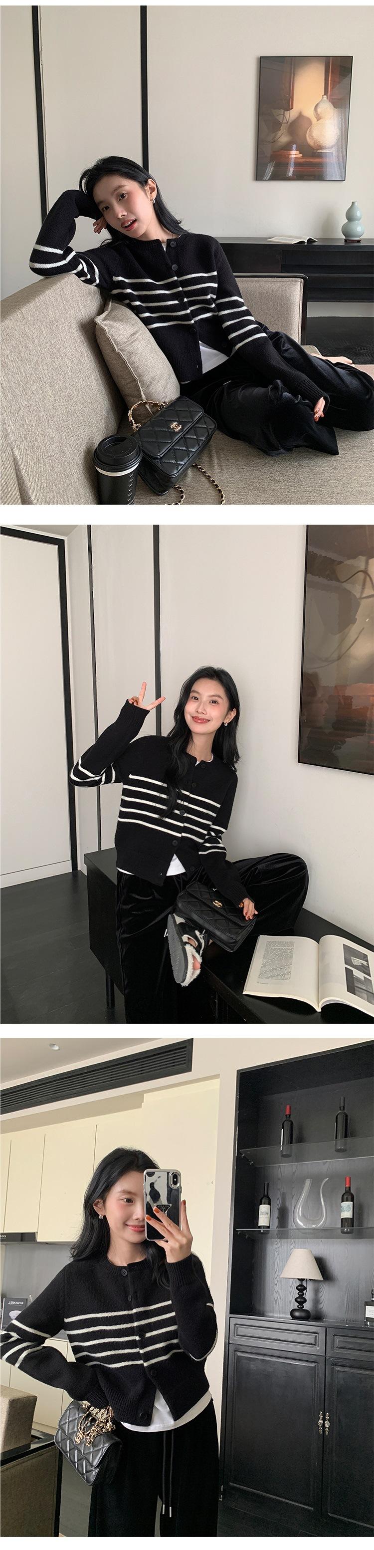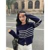Suéter de Punto de Manga Larga a Rayas Mujer 2025 Otoño/Invierno Nuevo Holgado Adelgazante Casual Cárdigan Top