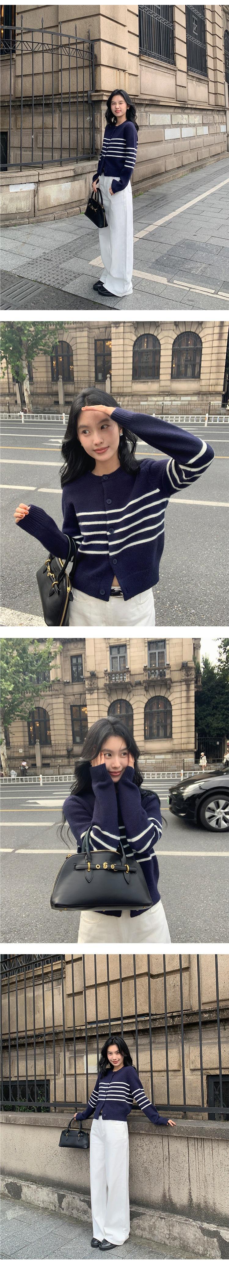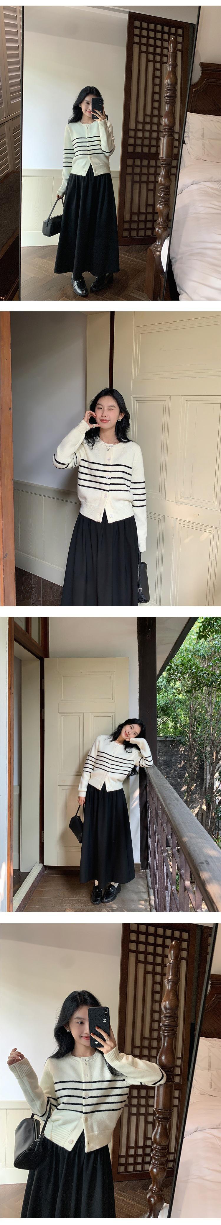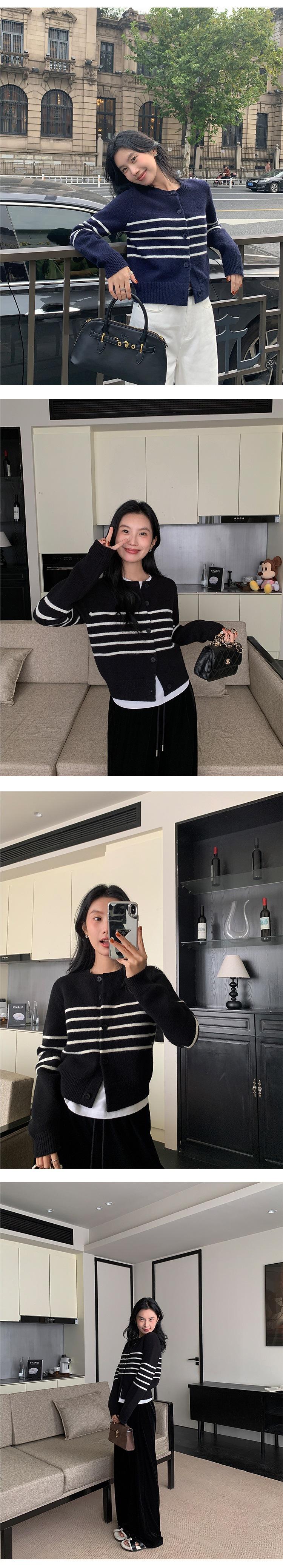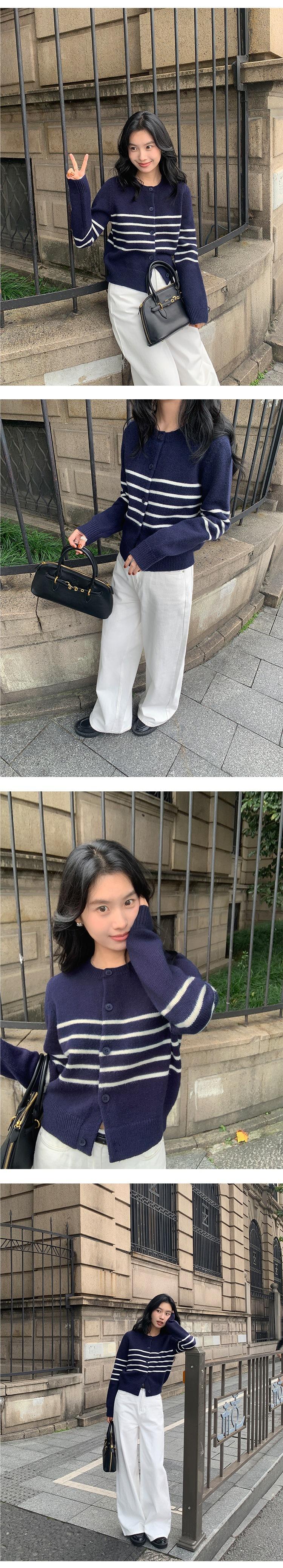 Suéter de Punto de Manga Larga a Rayas Mujer 2025 Otoño/Invierno Nuevo Holgado Adelgazante Casual Cárdigan Top