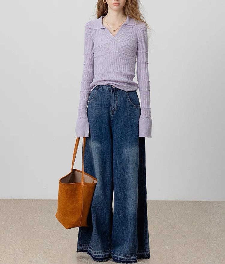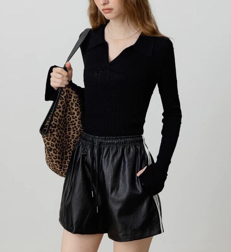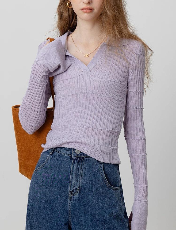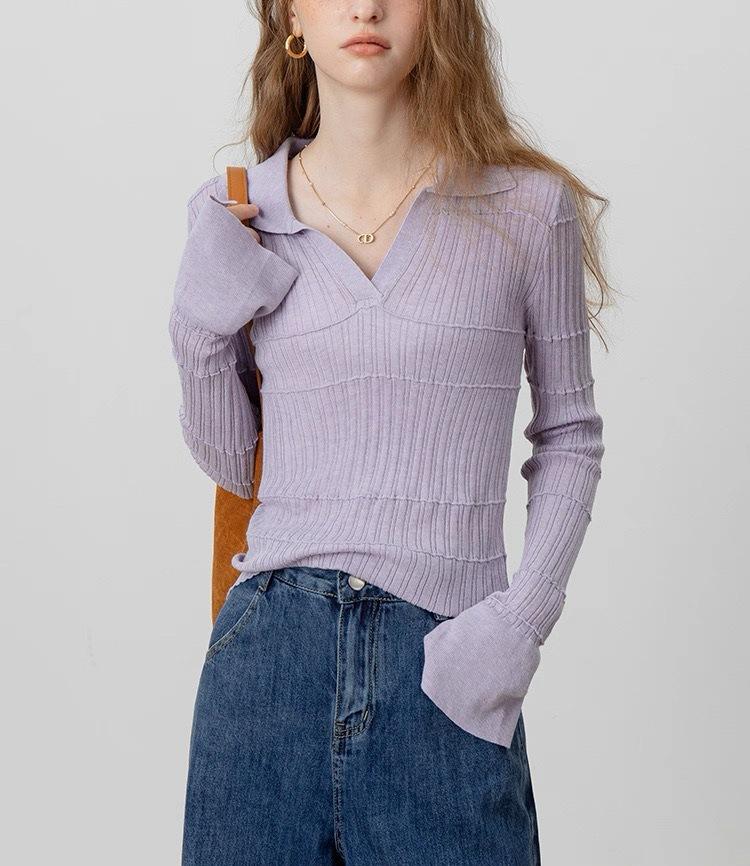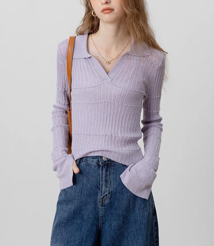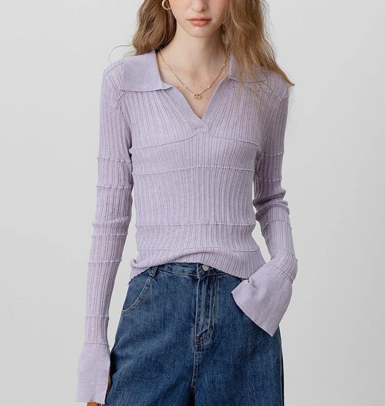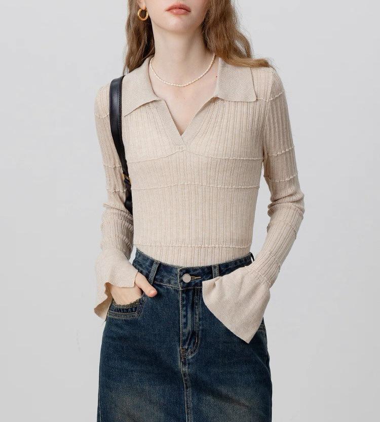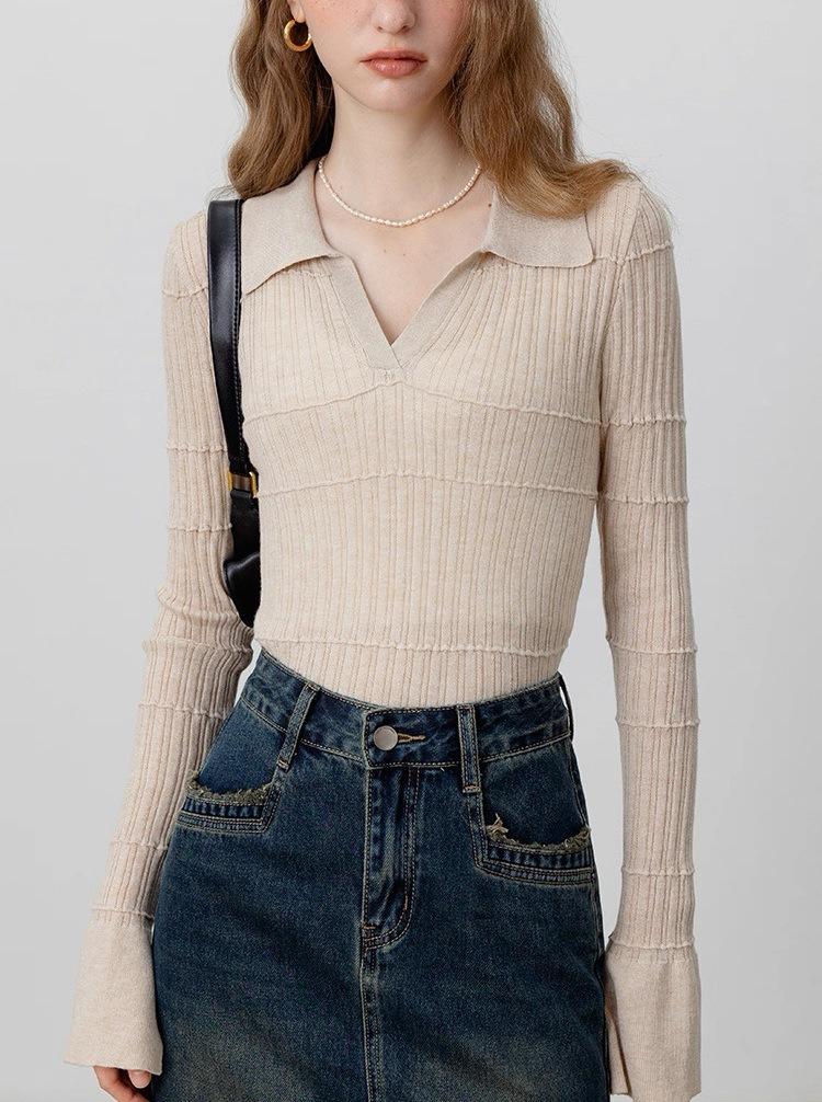 Temperamento a la moda estilo francés temperamento suéter de punto mujeres otoño nuevo sentido del diseño ajustado manga larga top base