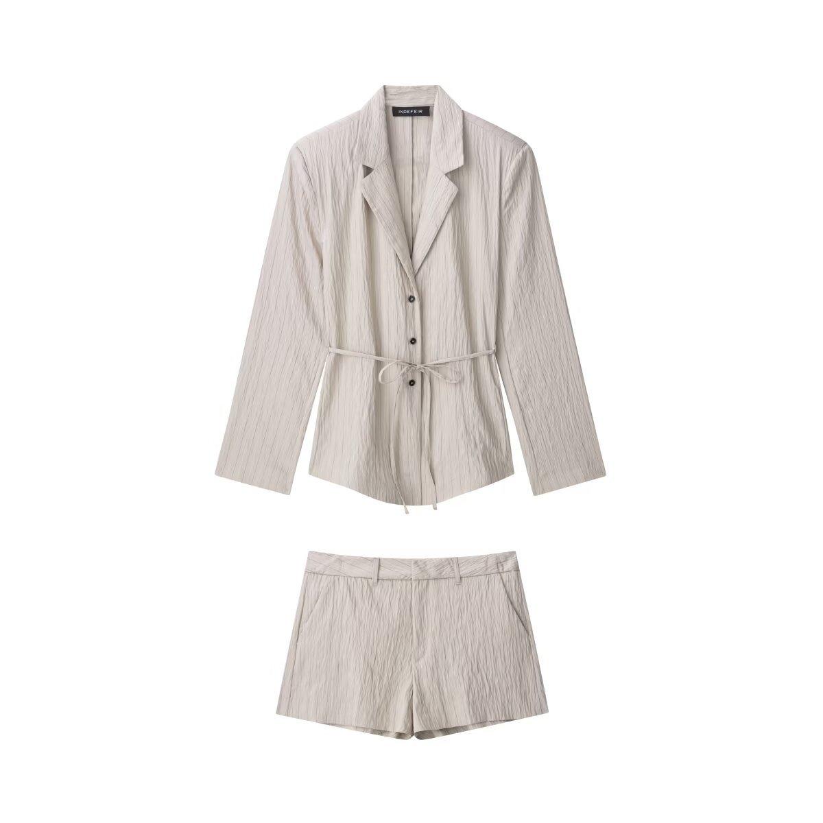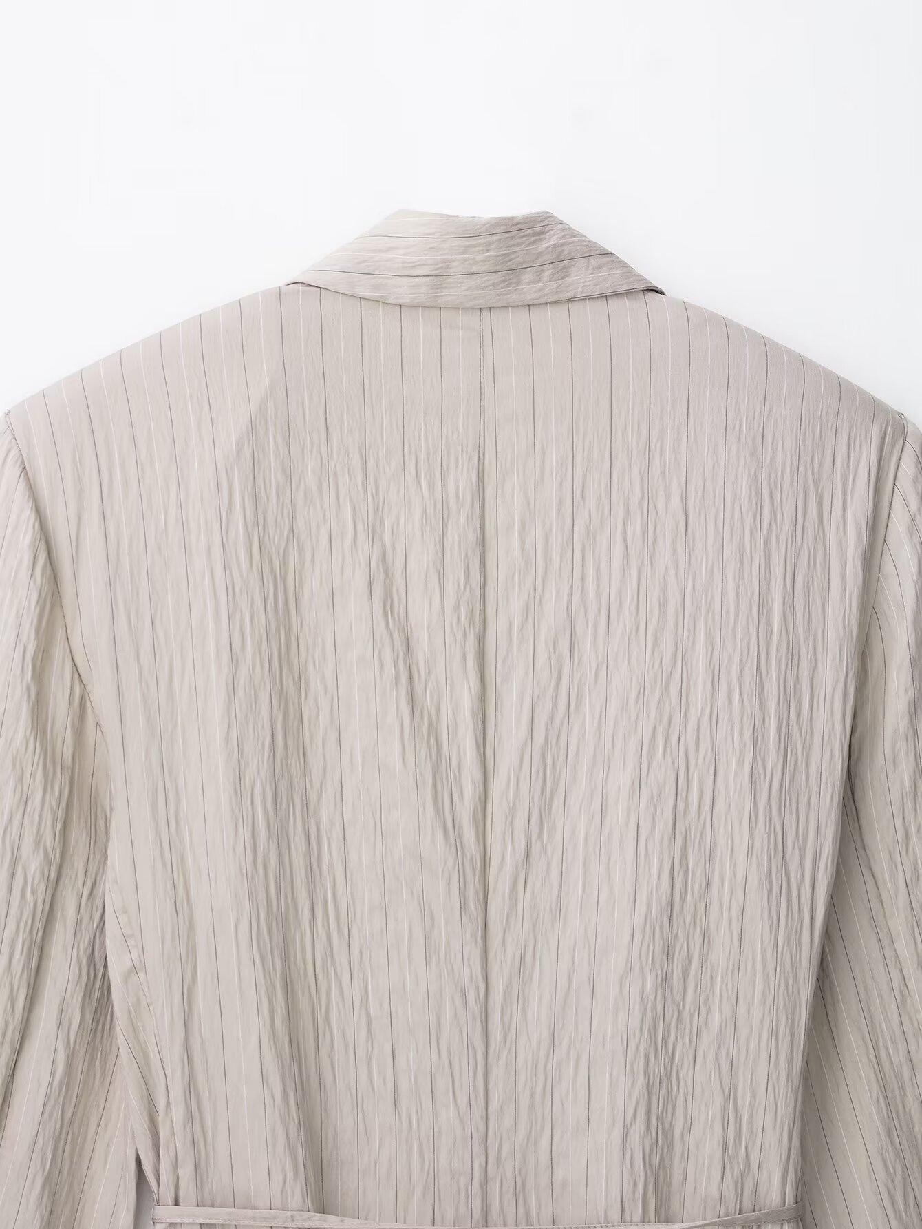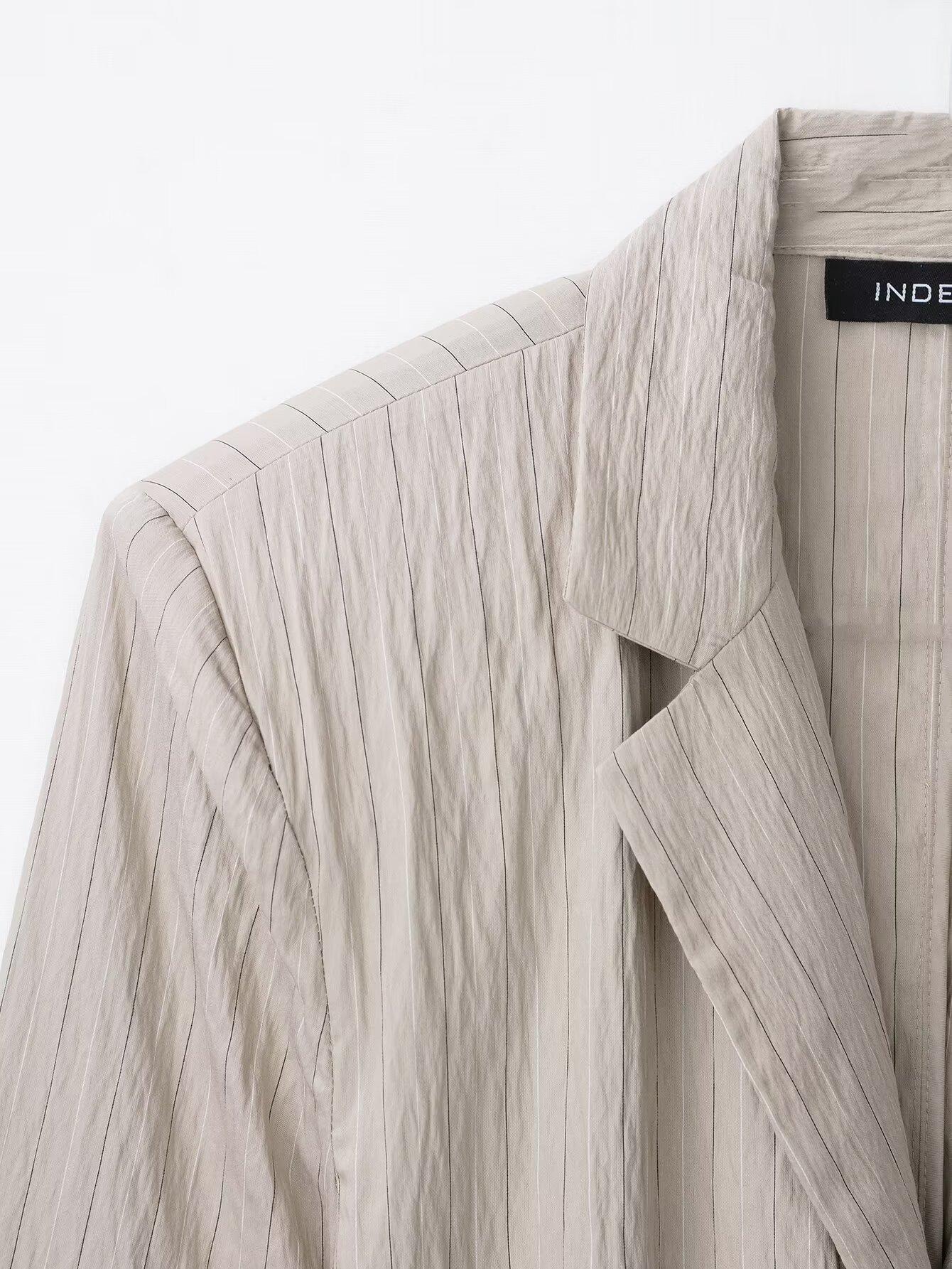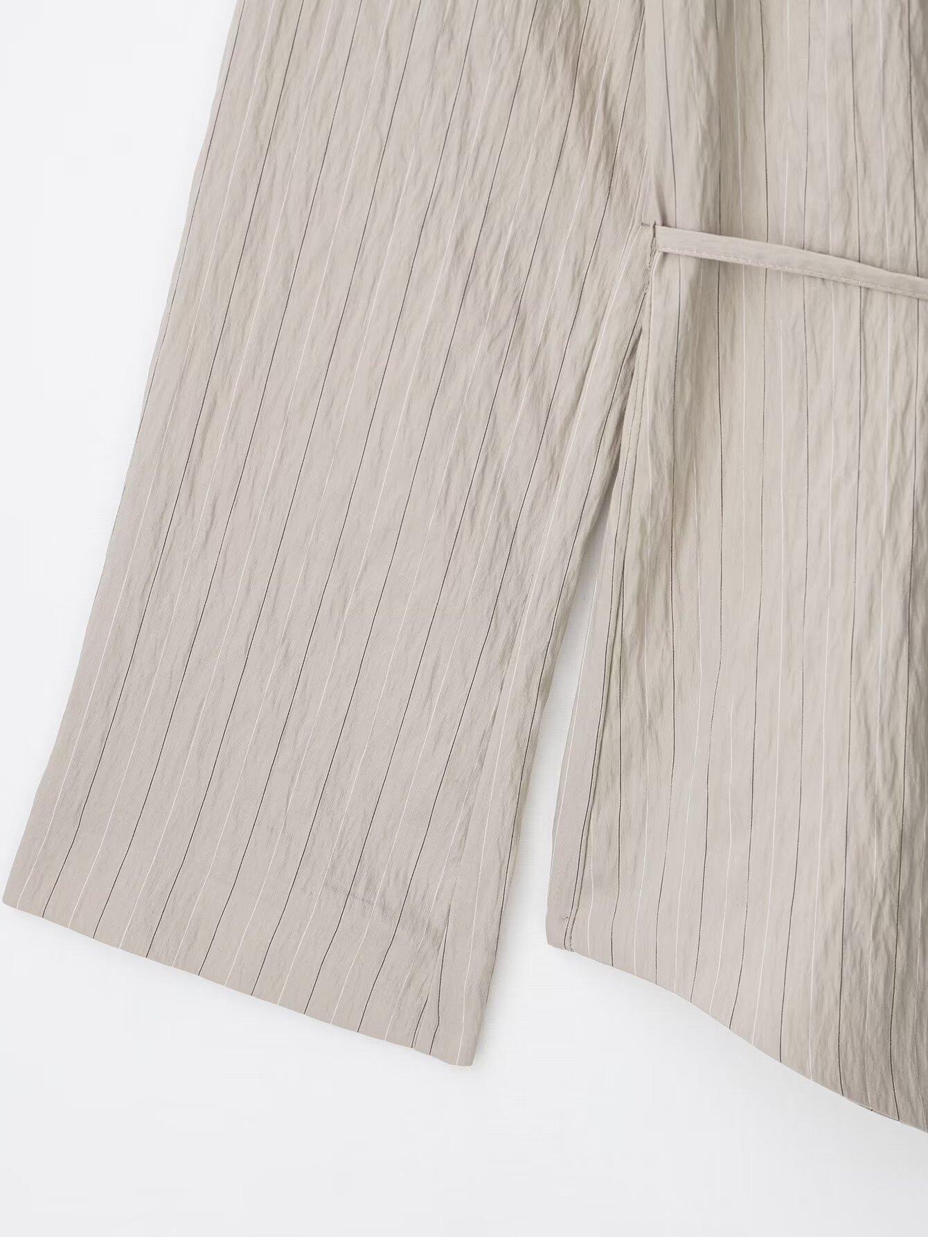2025 Nuevo Verano Moda Commuter para Mujer Chaqueta Rayada con Cinturón Delgado + Pantalones Casuales