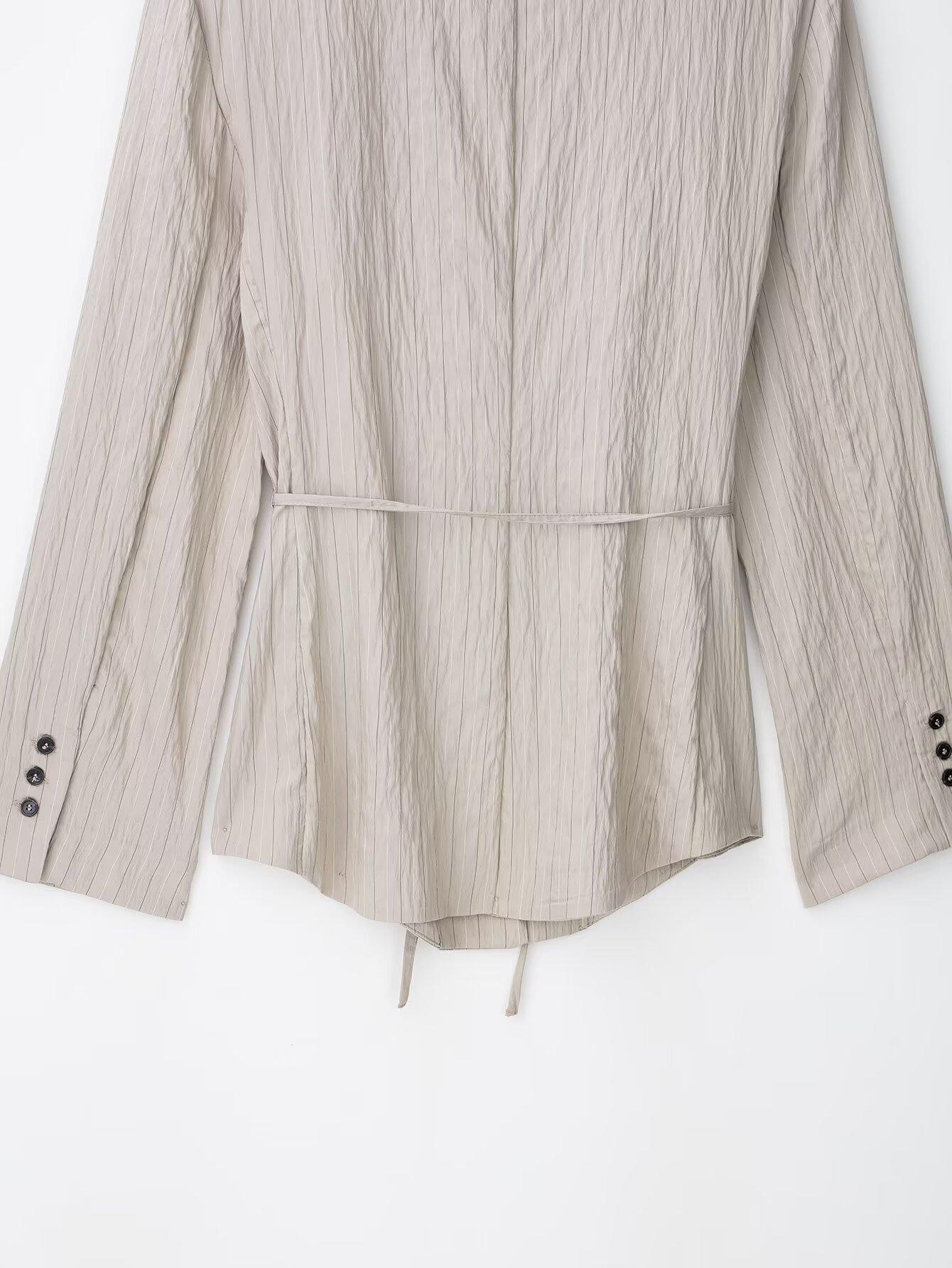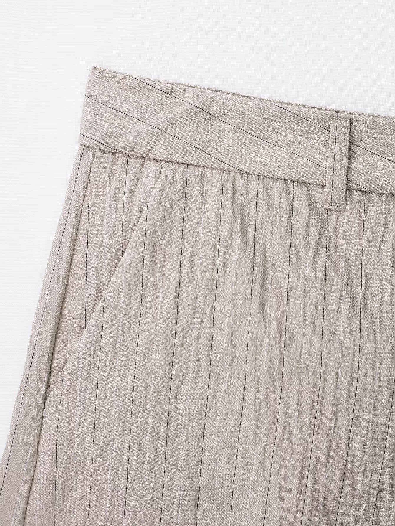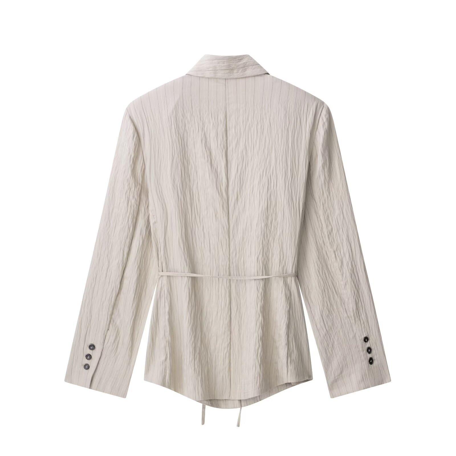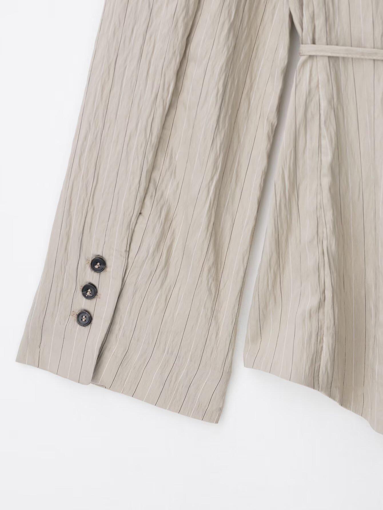 2025 Nuevo Verano Moda Commuter para Mujer Chaqueta Rayada con Cinturón Delgado + Pantalones Casuales