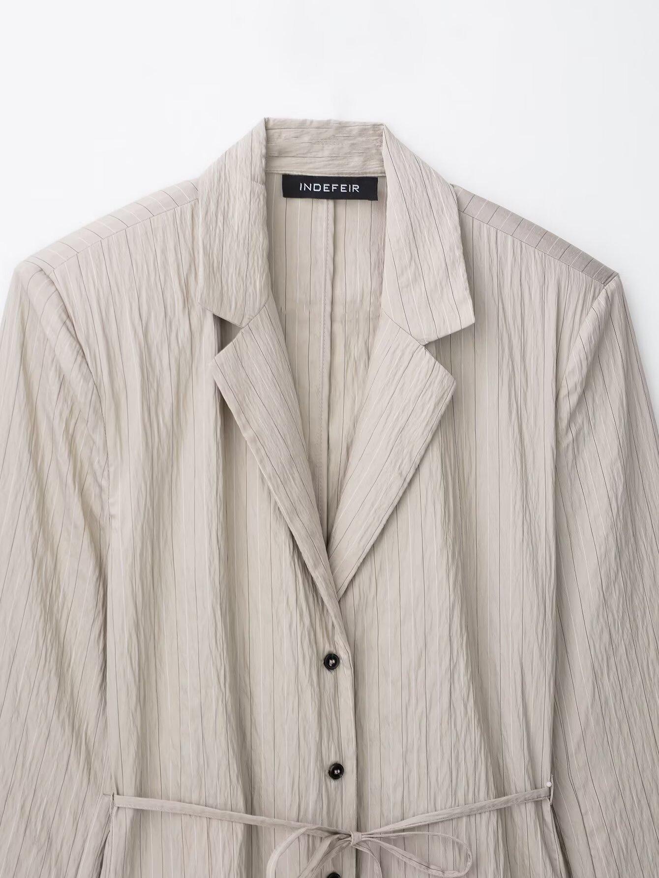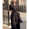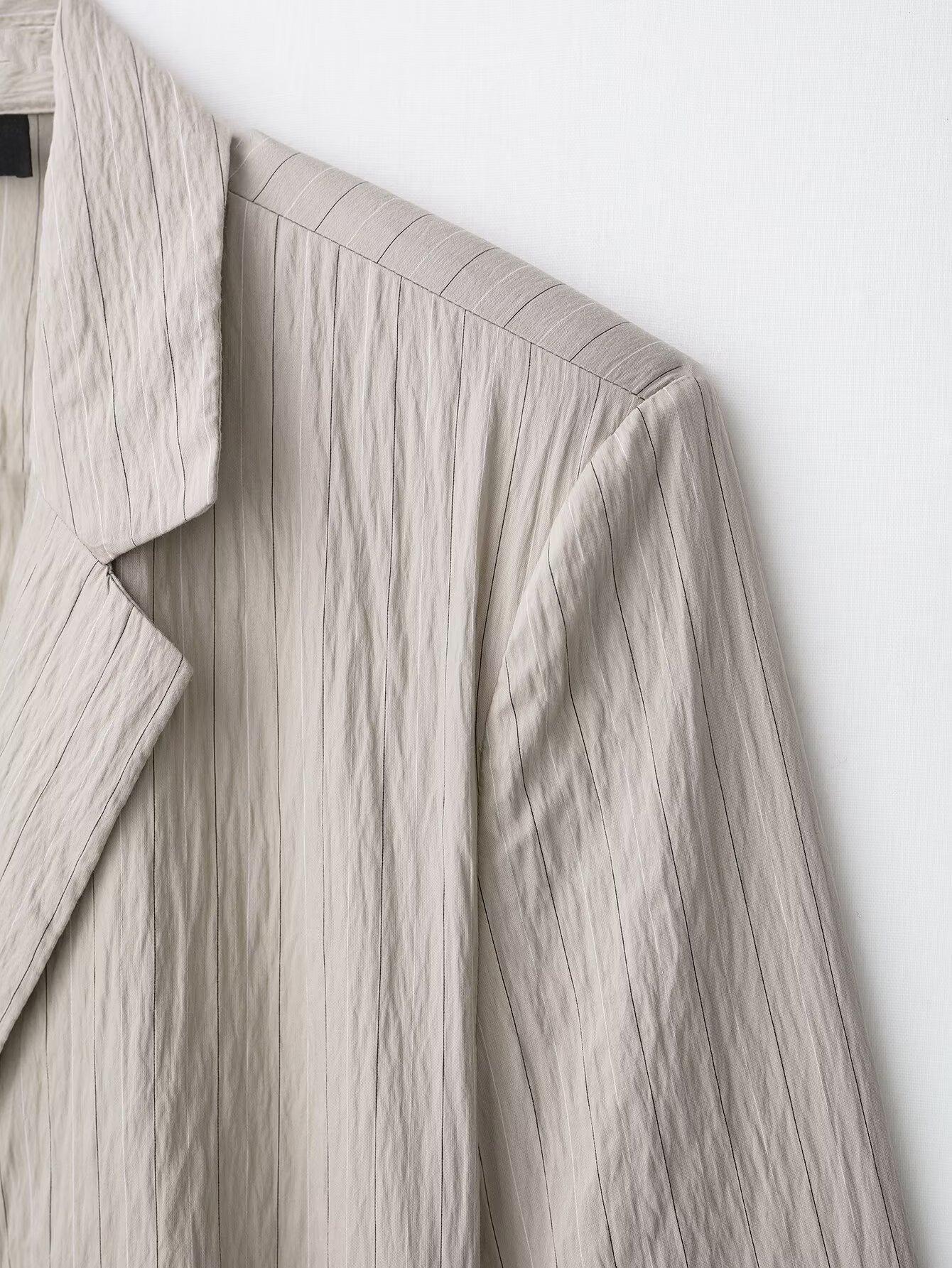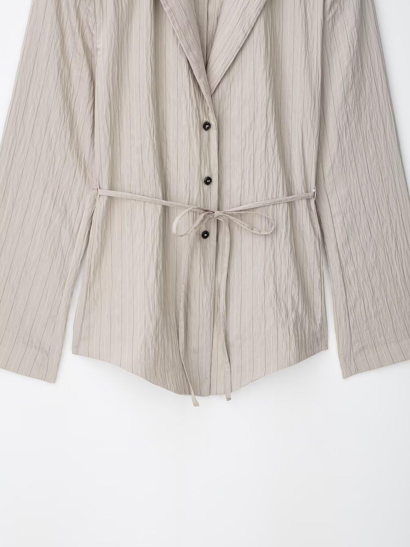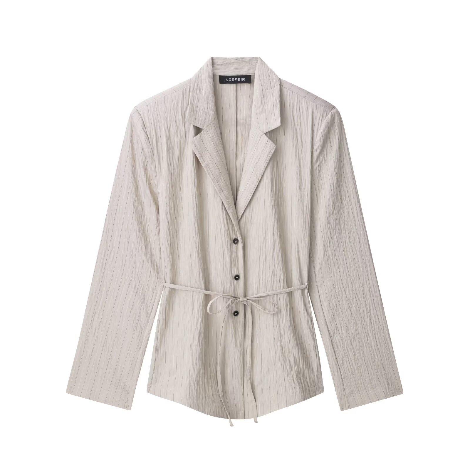 2025 Nuevo Verano Moda Commuter para Mujer Chaqueta Rayada con Cinturón Delgado + Pantalones Casuales