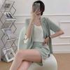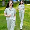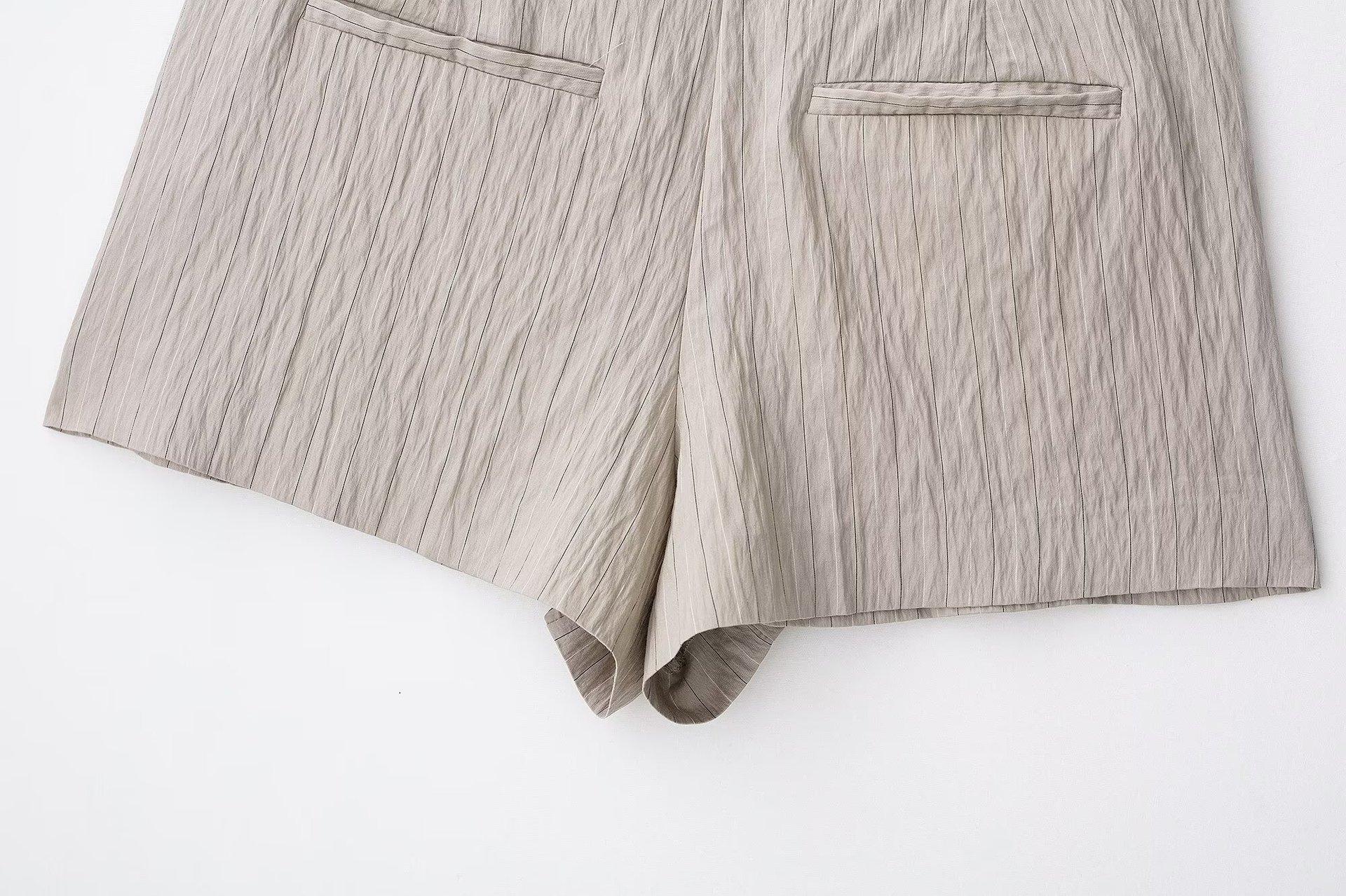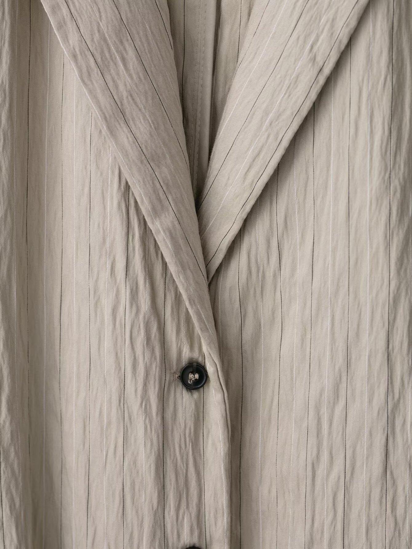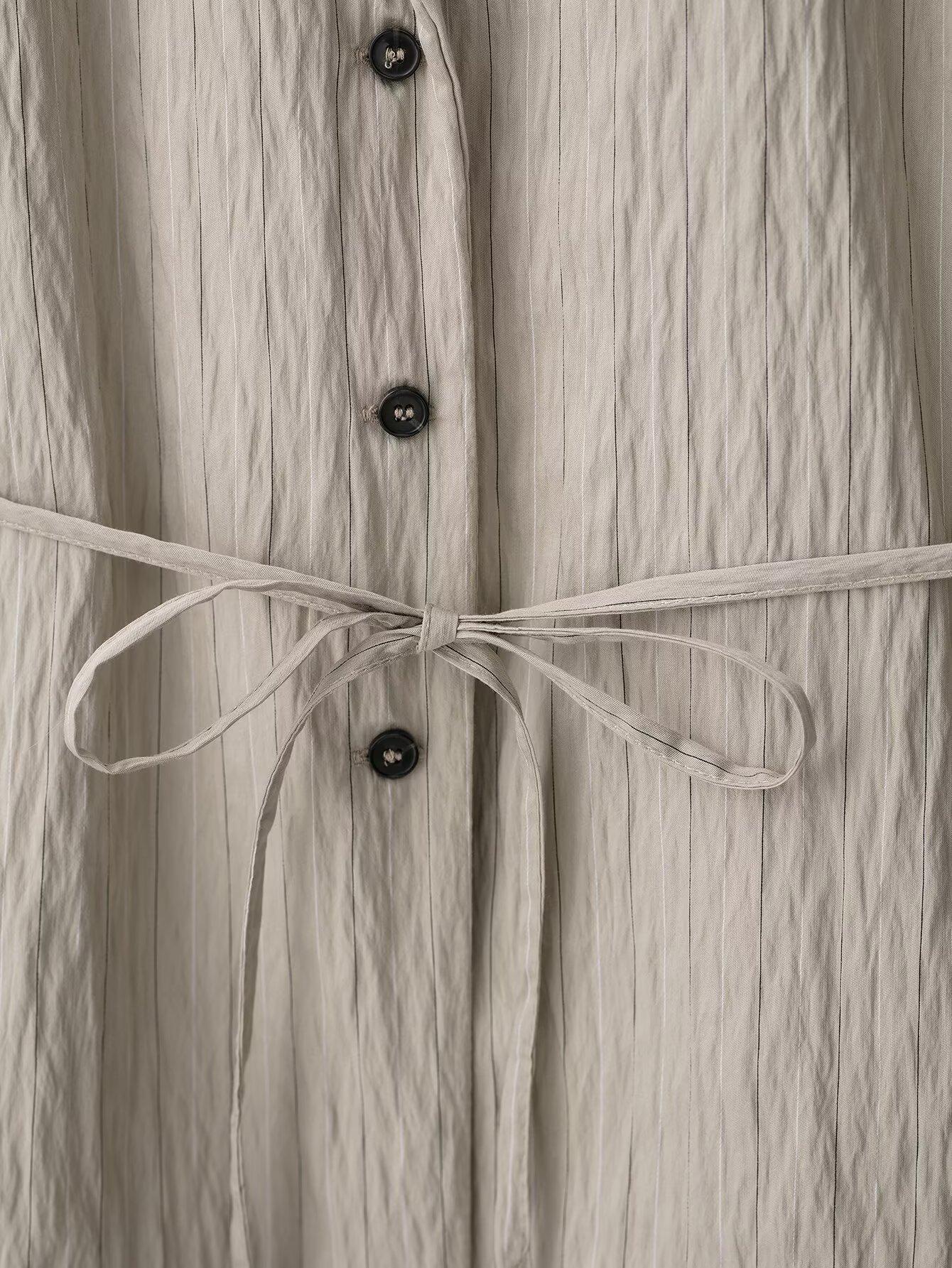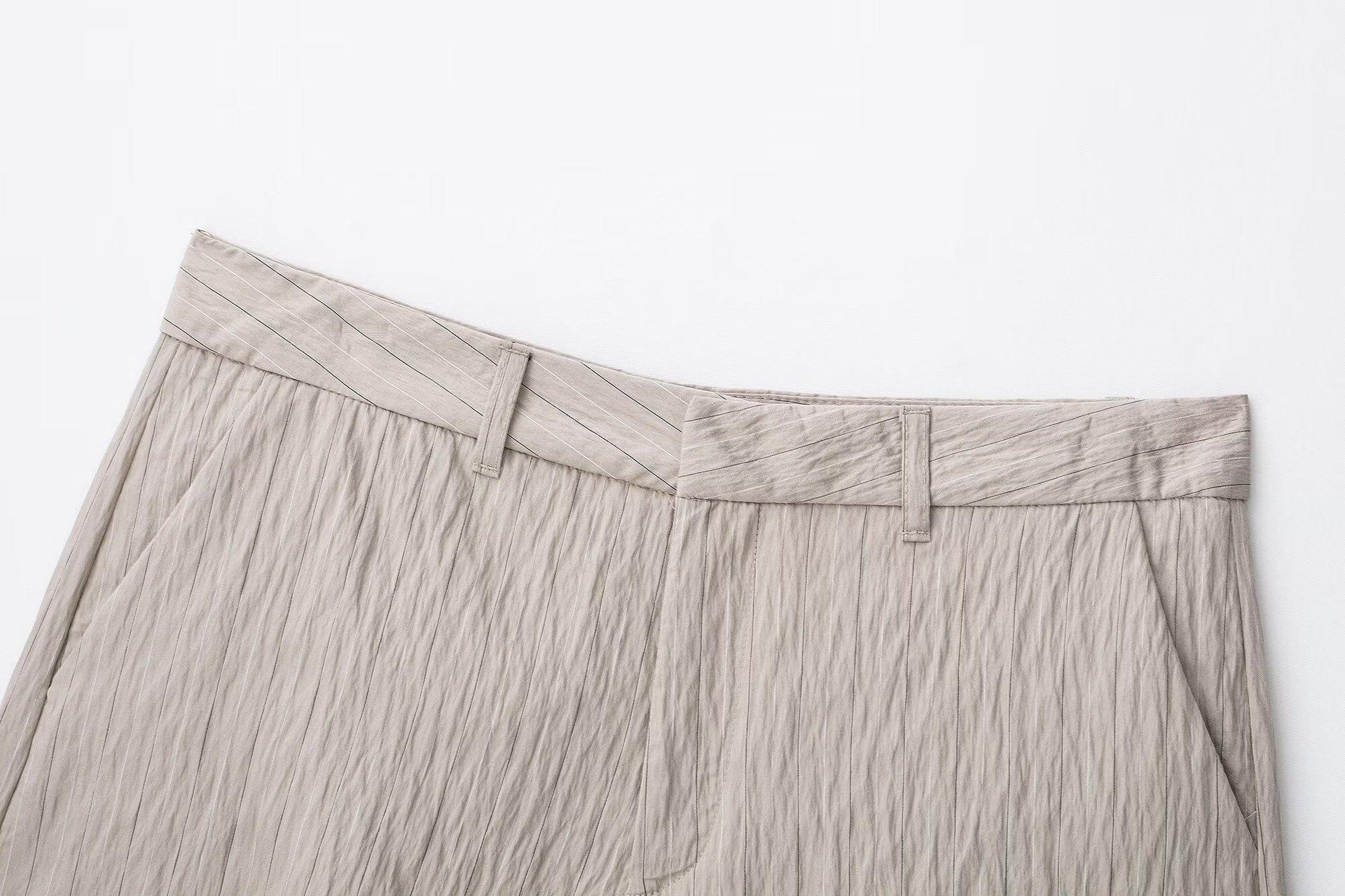 2025 Nuevo Verano Moda Commuter para Mujer Chaqueta Rayada con Cinturón Delgado + Pantalones Casuales