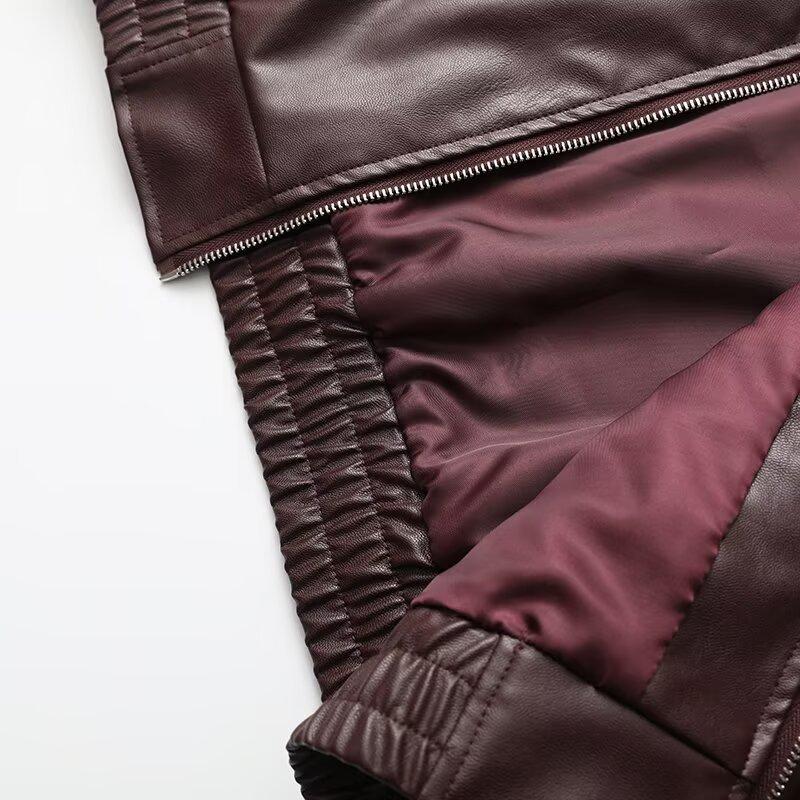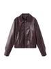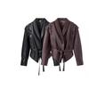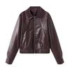 Ropa de mujer de estilo europeo y americano transfronterizo 2025 otoño nuevo solapa cremallera chaqueta casual de mujer chaqueta de cuero abrigo de manga larga mujer