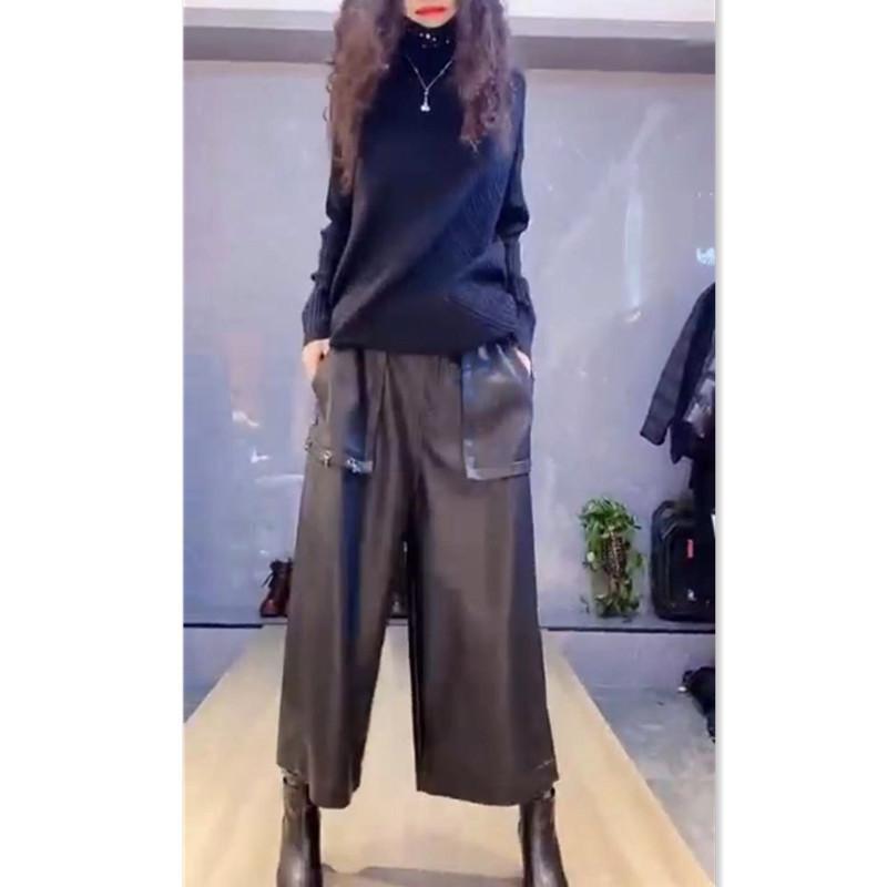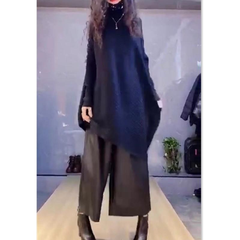 88192 Big Aimei Yiyuan 2021 Nueva Moda Top Medio Irregular Bajo Pantalones Rectos PU Modernos para Mujer
