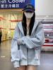 Chaqueta Sudadera Coreana Delgada Holgada con Capucha y Cierre de Cremallera para Mujer, Estilo Americano Chic, para Primavera y Otoño